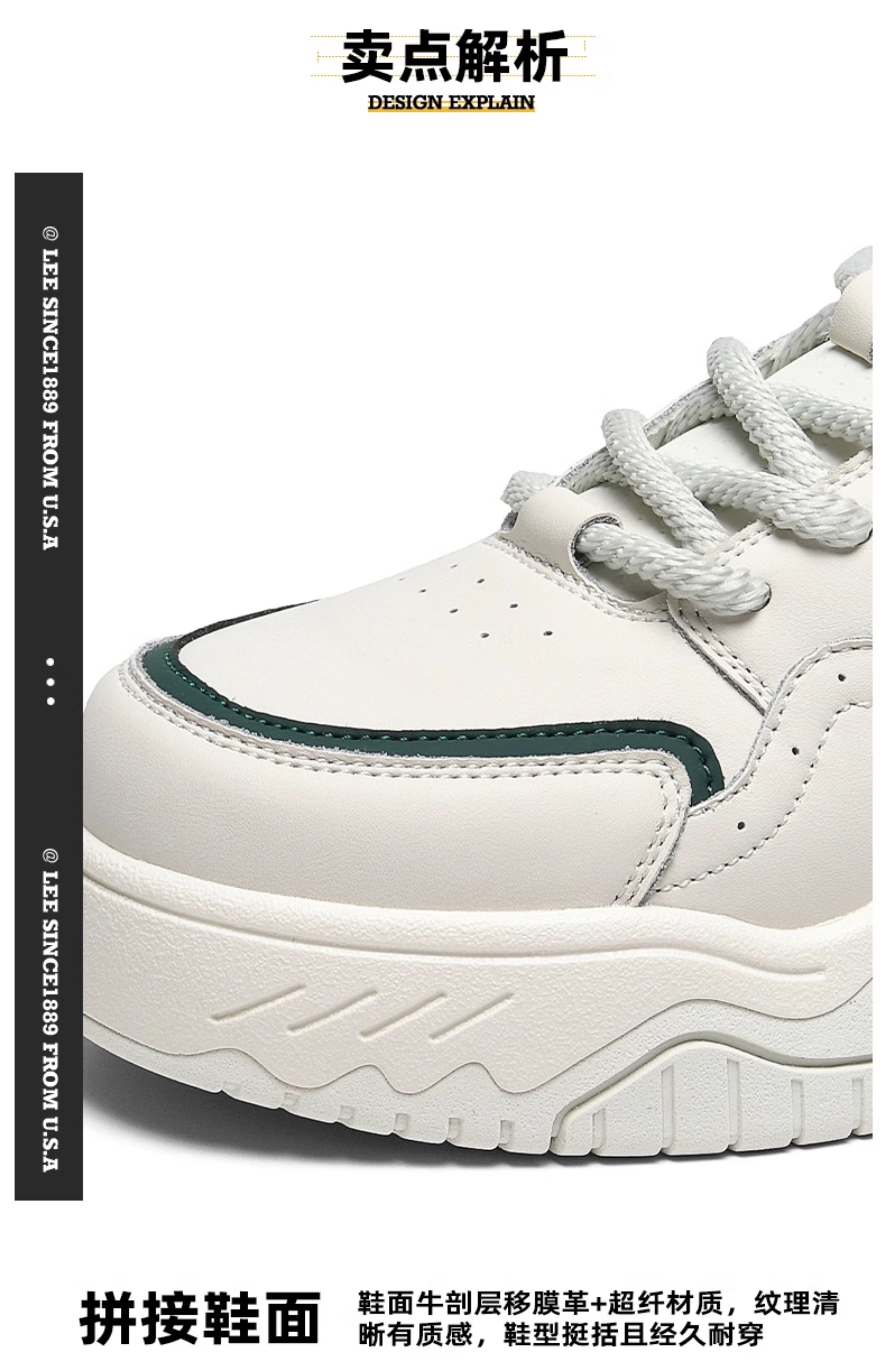 Lee Men's Shoes 2025 Autumn New Genuine Leather Sneakers Men's Height-Increasing Shoes High-End Trendy Thick-Soled Casual Shoes