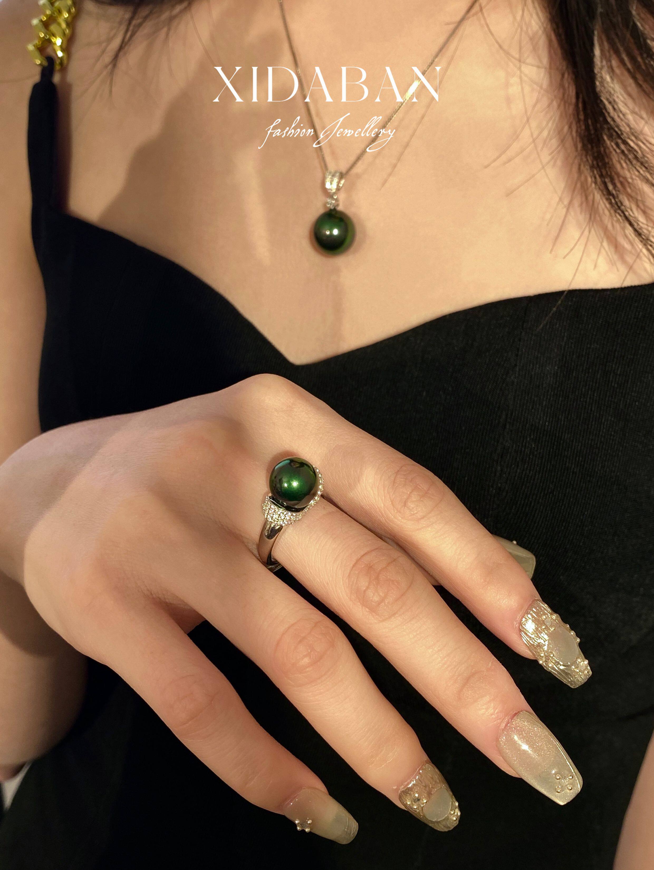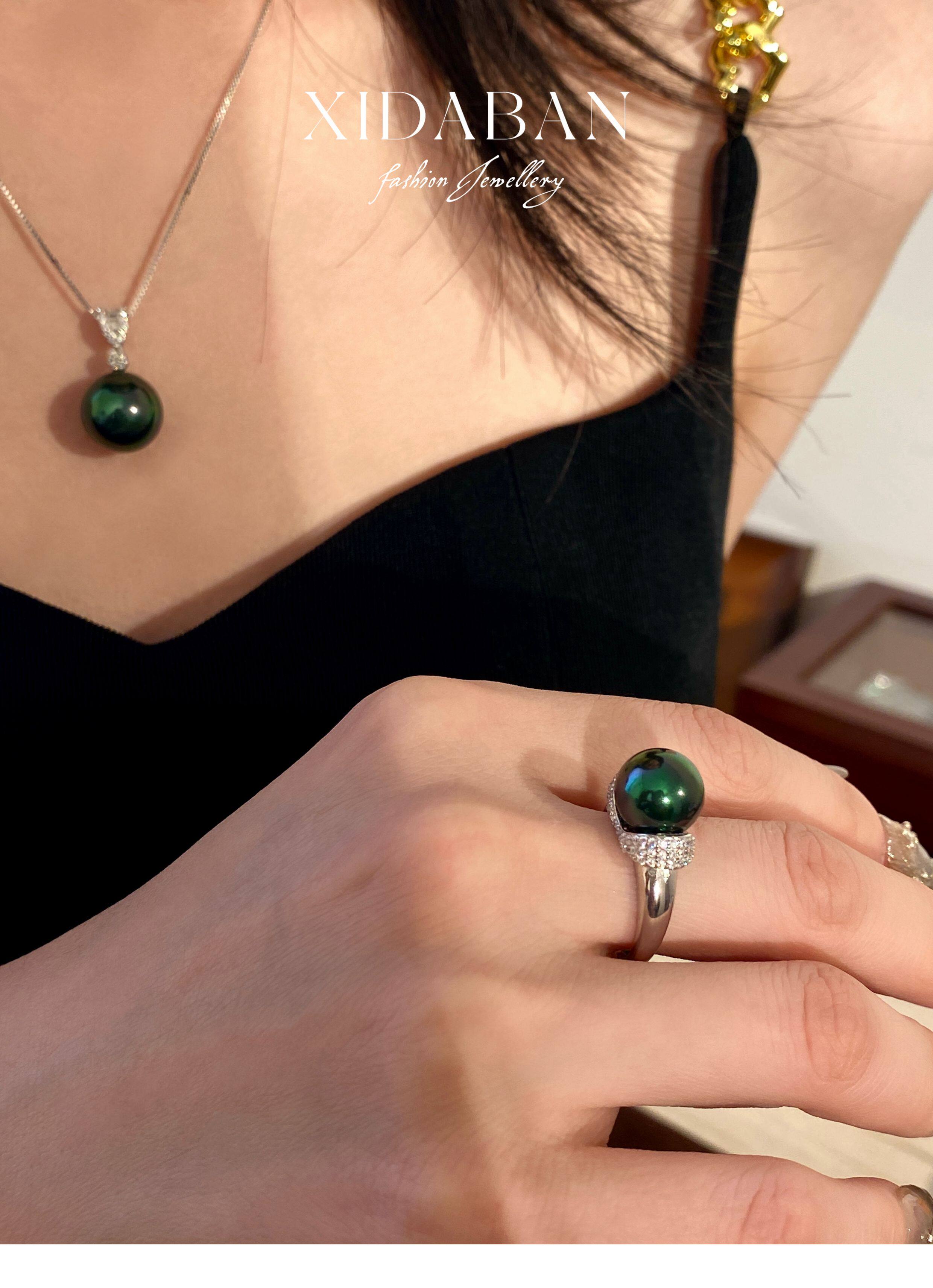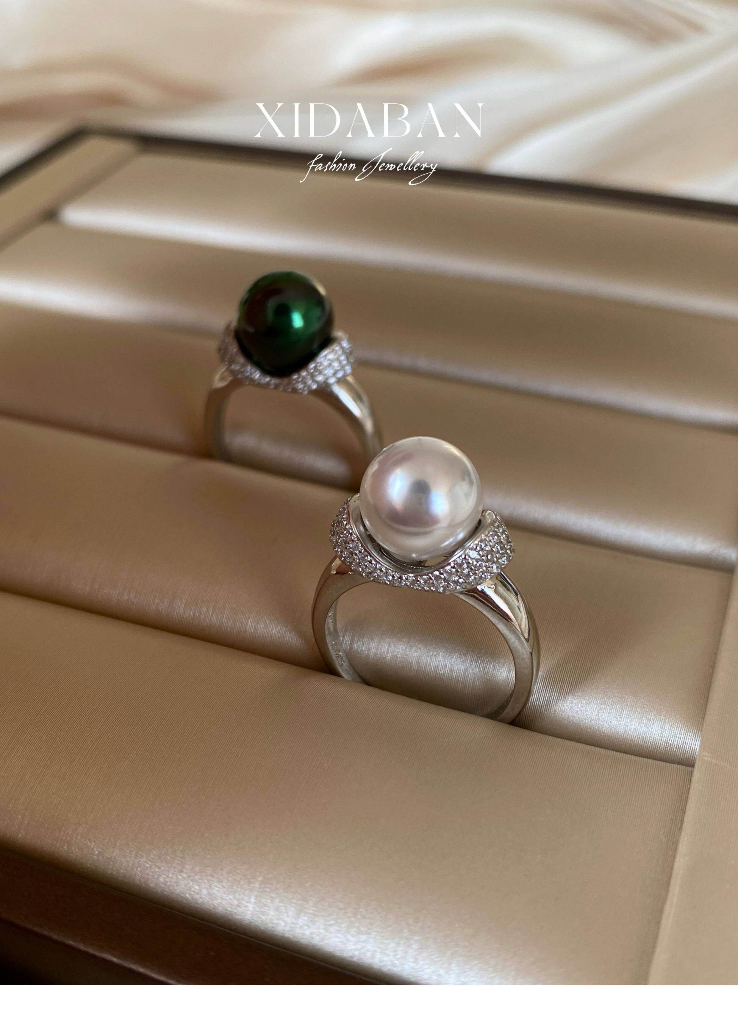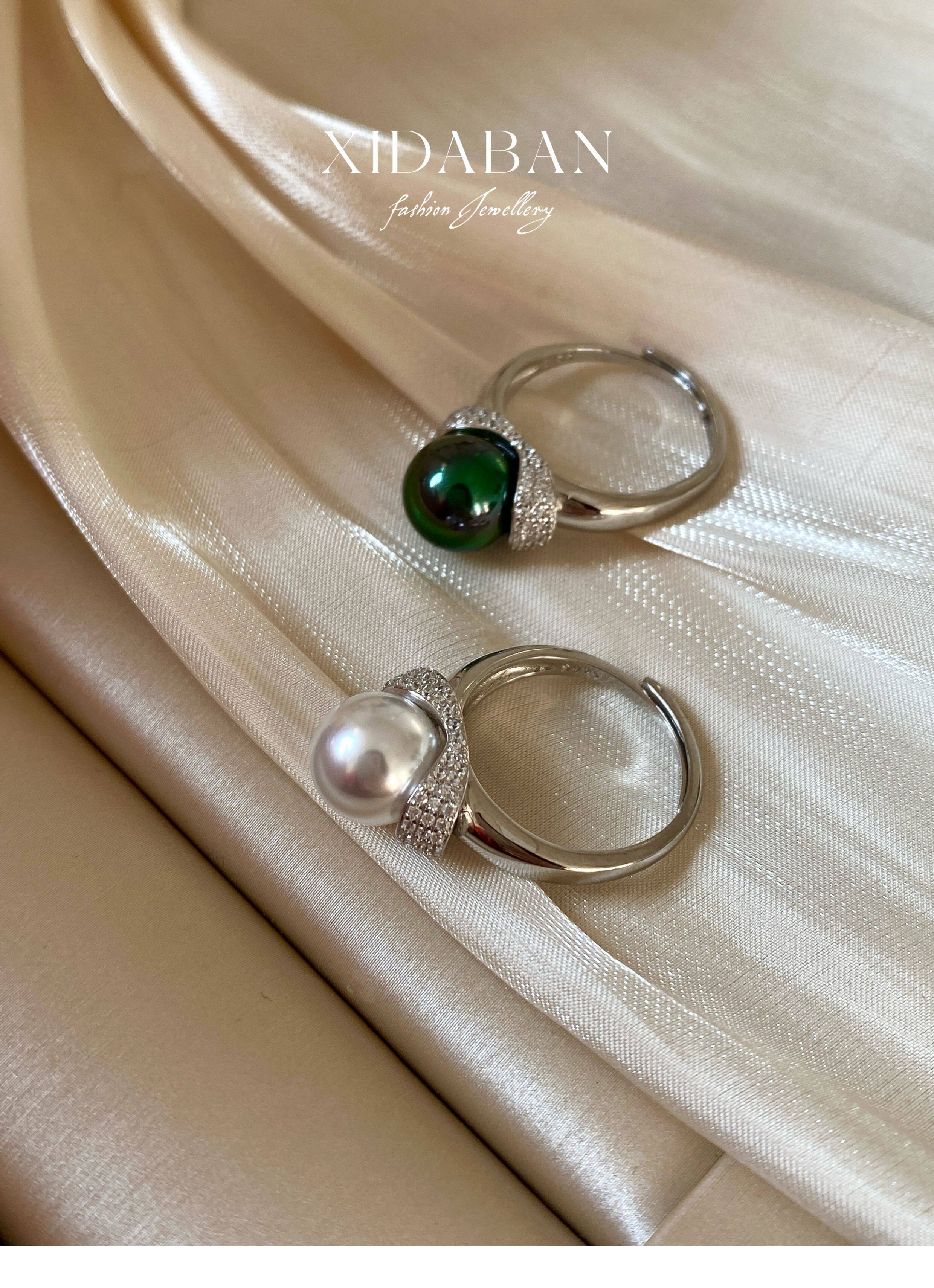 Artificial Australian White Pearl Ring for Women, Niche Design, S925 Silver, Zircon Diamond, Light Luxury, High-End Feel, Adjustable Open Ring