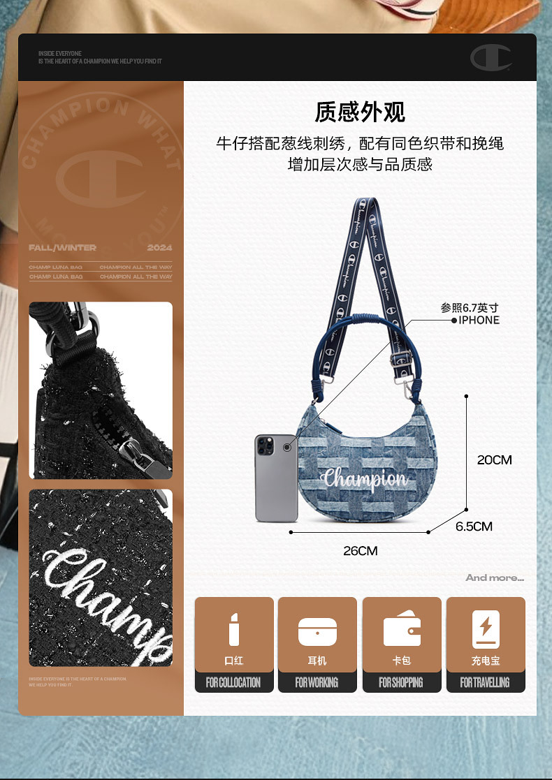 Champion Underarm Bag 25 Autumn/Winter New Shoulder Bag Crescent Bag Unisex Casual Commuter Crossbody Bag