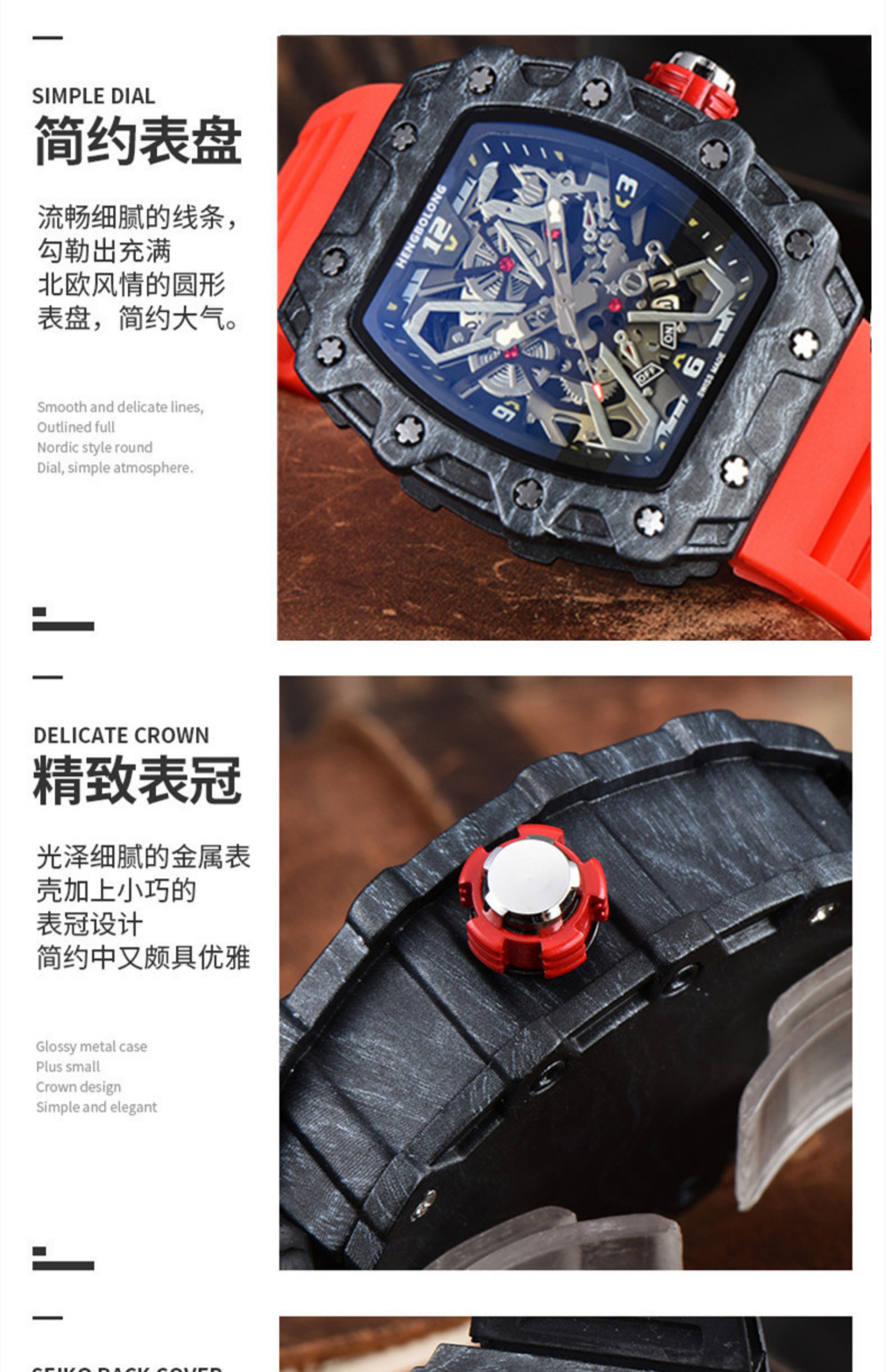 Richard Star's Same Style Royal Blue Personalized Trendy Watch Non-Mechanical Carbon Fiber Fashion Sports Watch Men's Watch