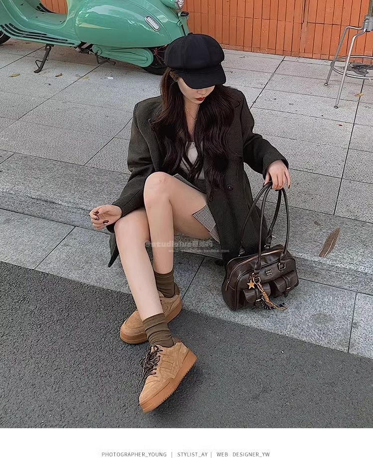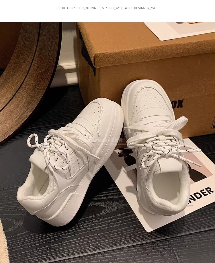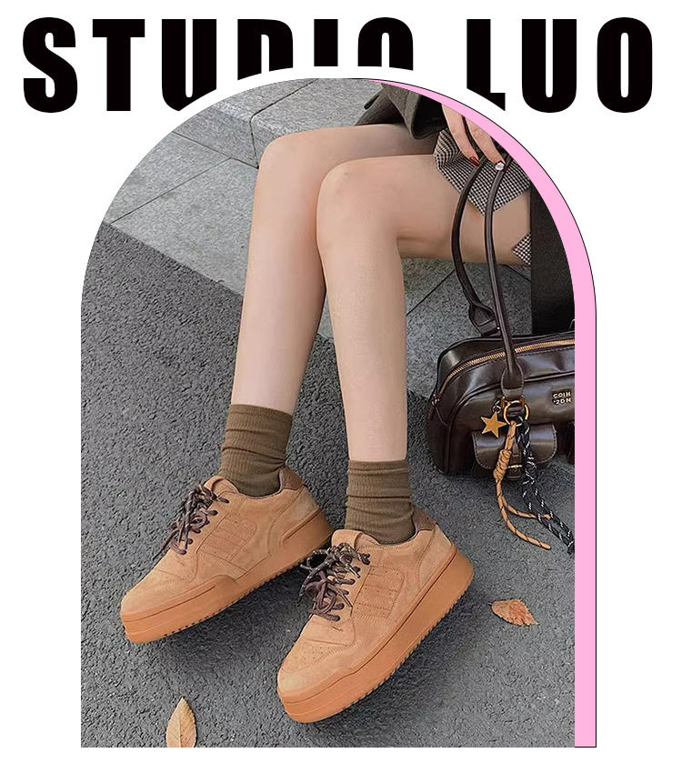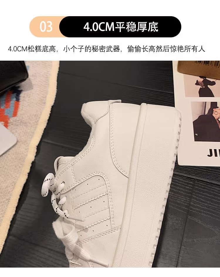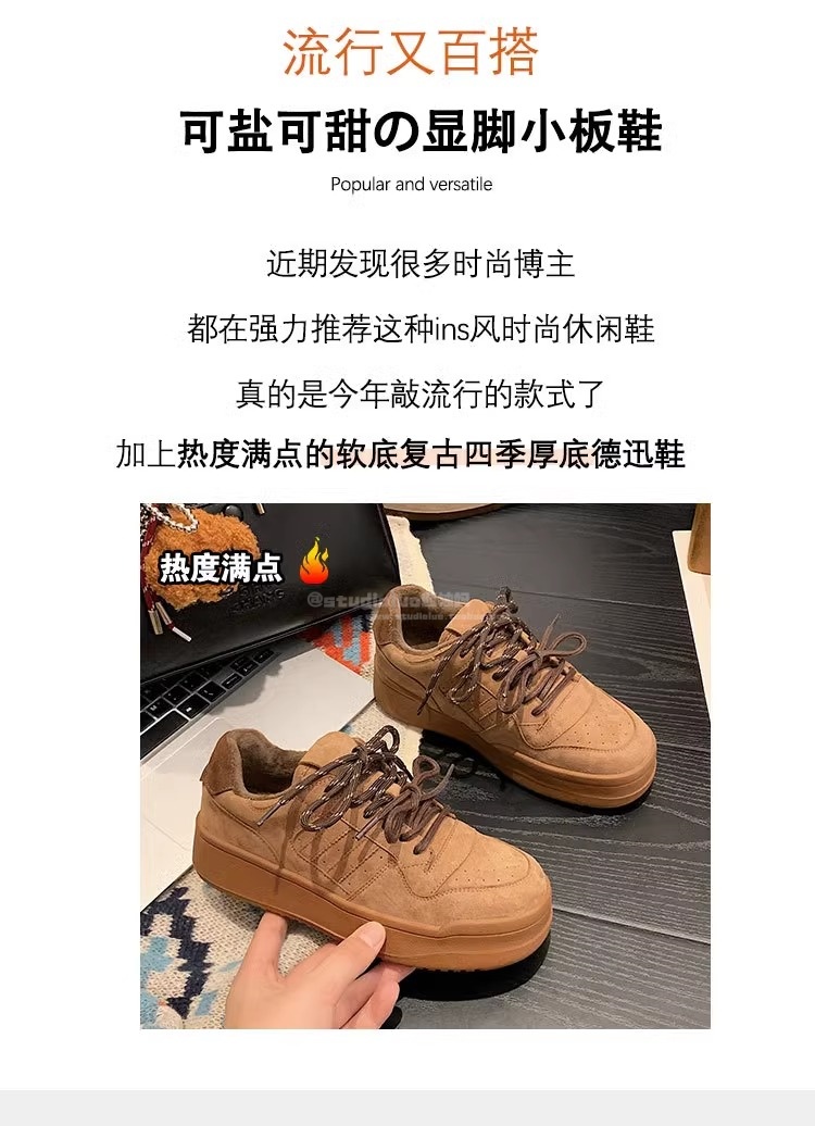 Hong Kong Genuine Leather Thick-Soled Double-Lace Casual Sneakers for Women 2025 Spring and Autumn Fleece-Lined Warm German Training Shoes Fashionable Running Shoes