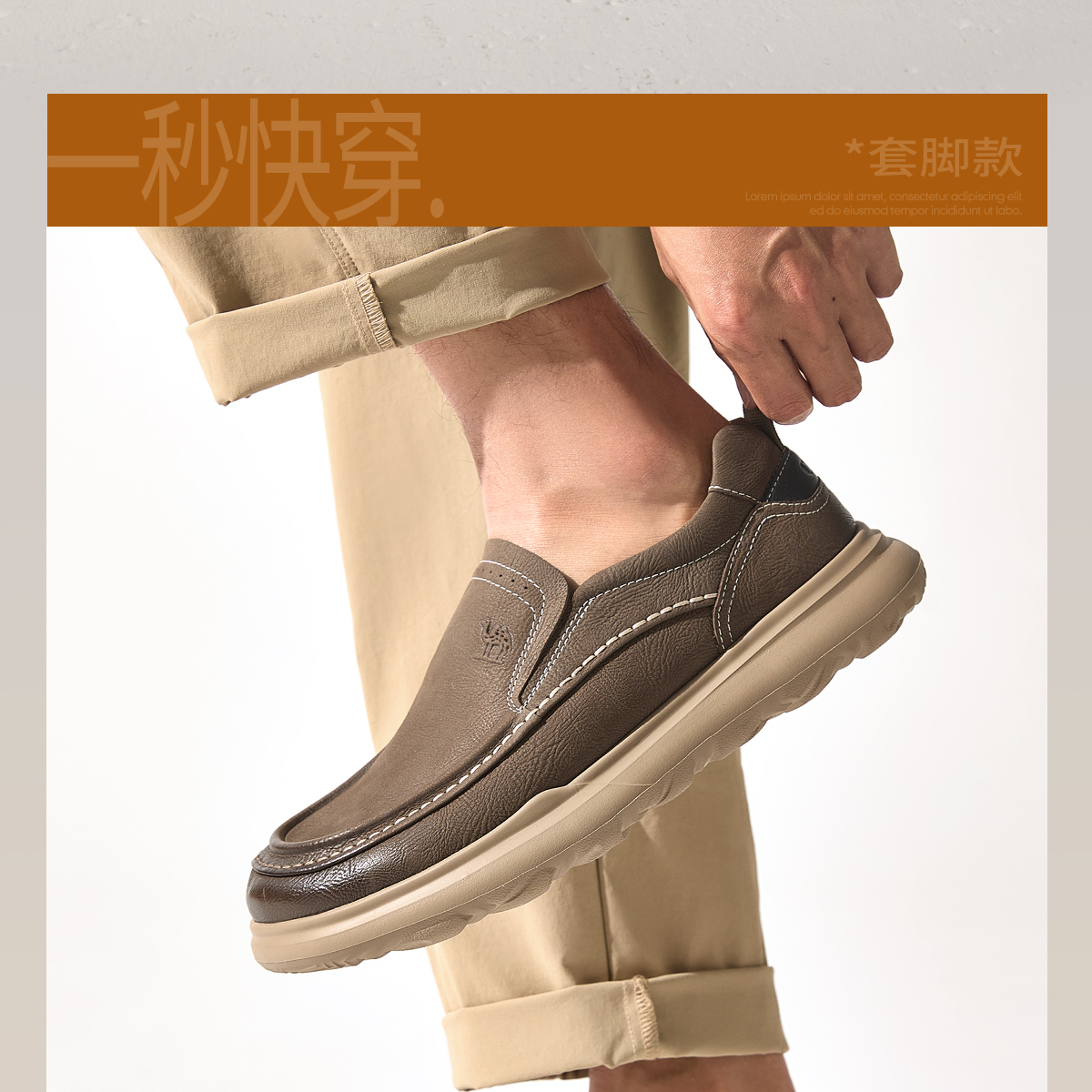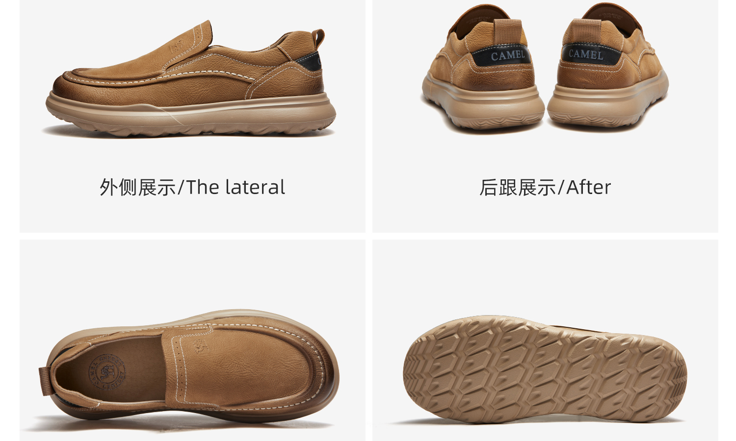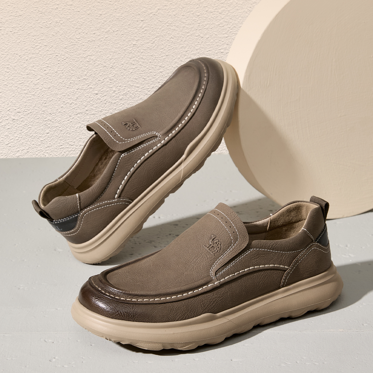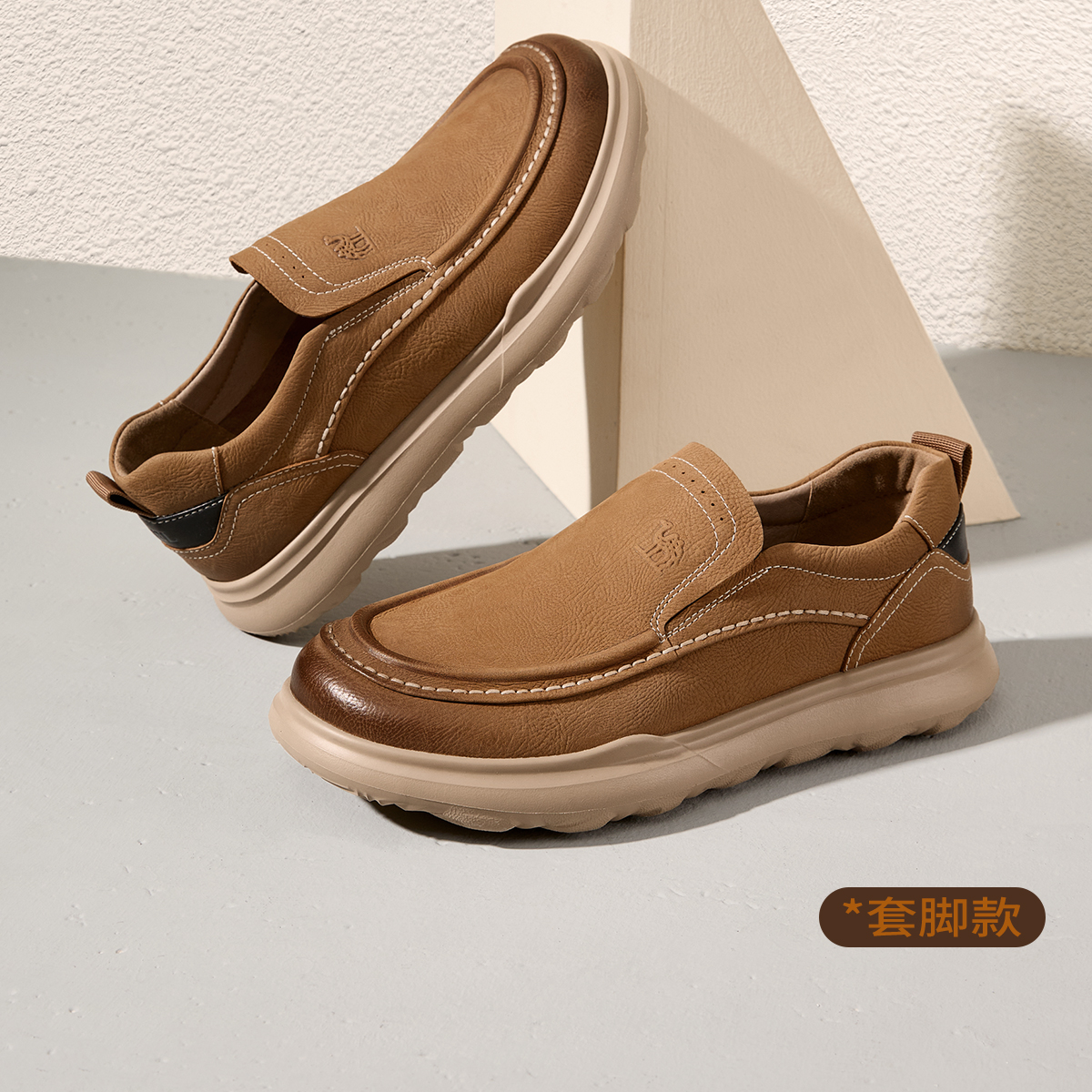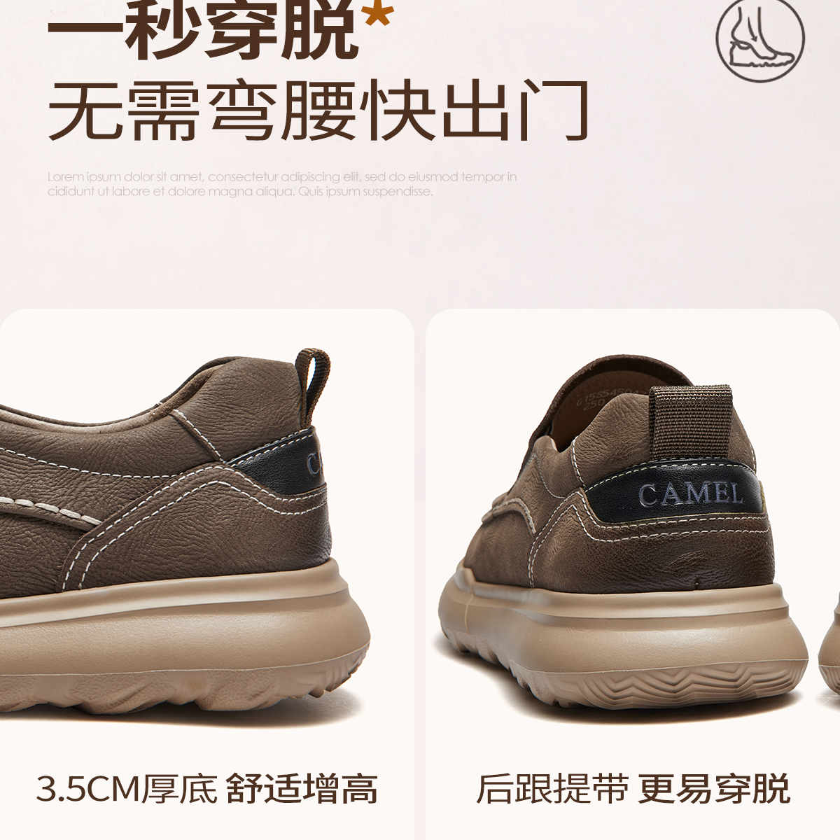 Camel Men's Shoes 2025 Winter New Thick-Soled Slip-On Soft Sole Comfortable Commuting Middle-Aged Dad Casual Leather Shoes for Men
