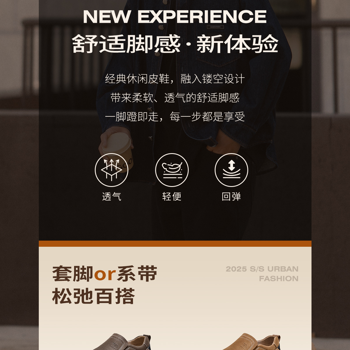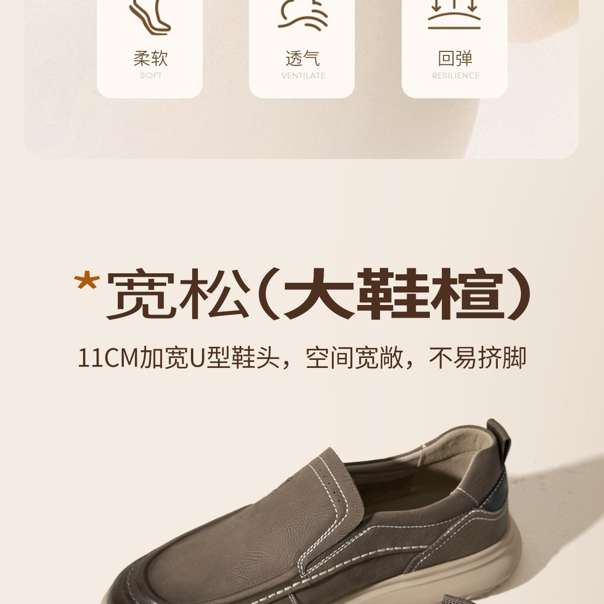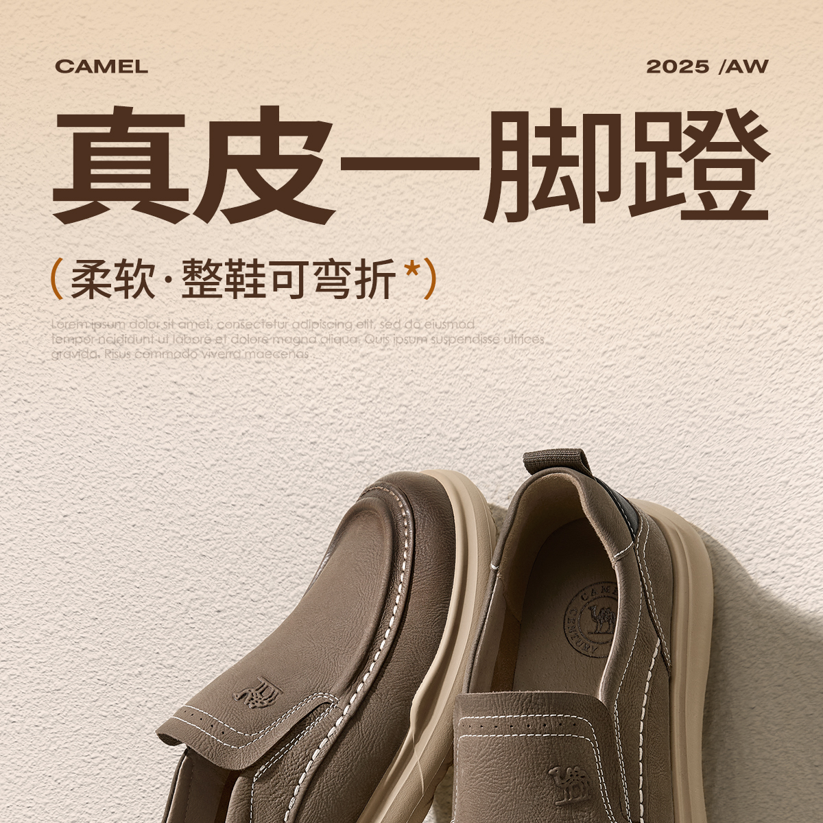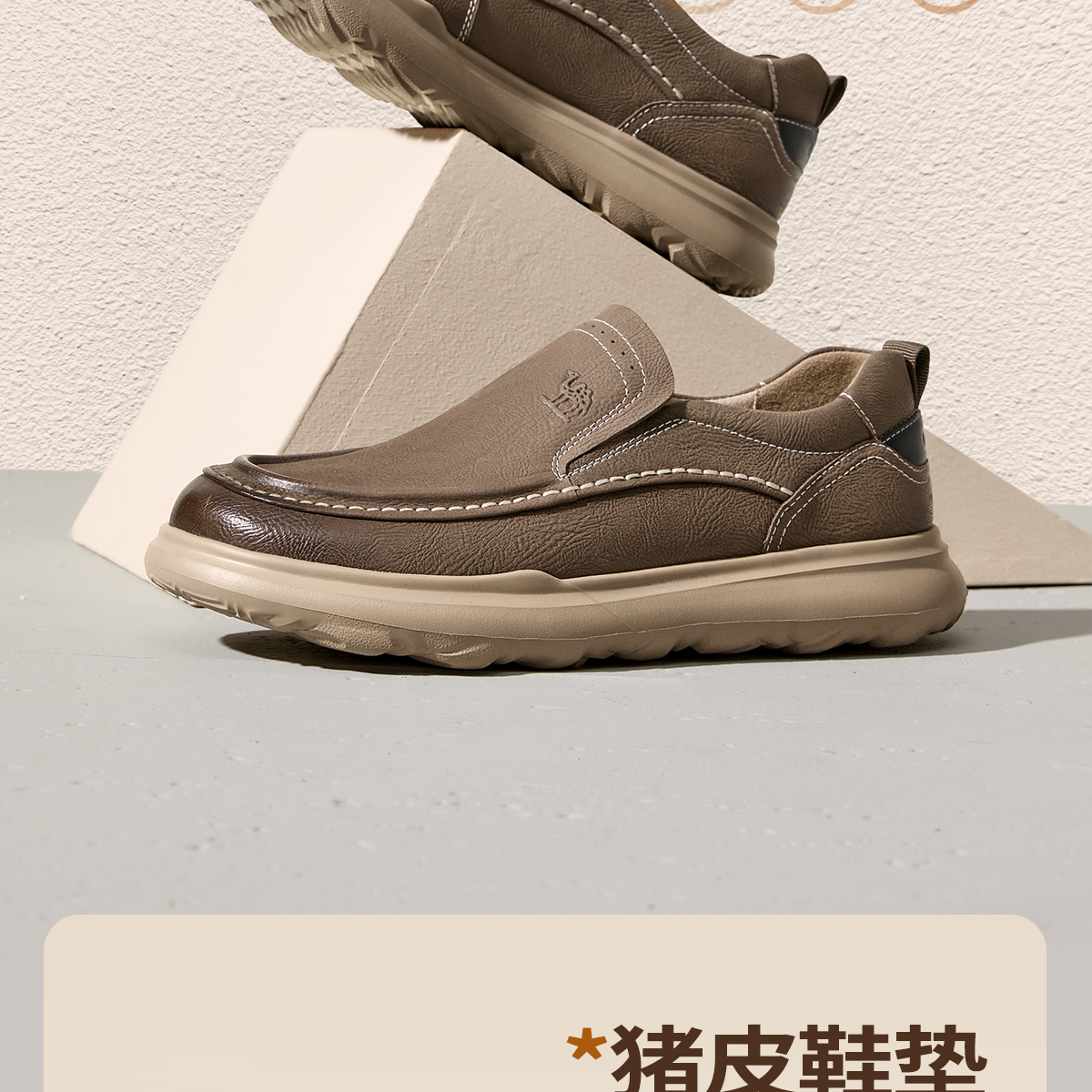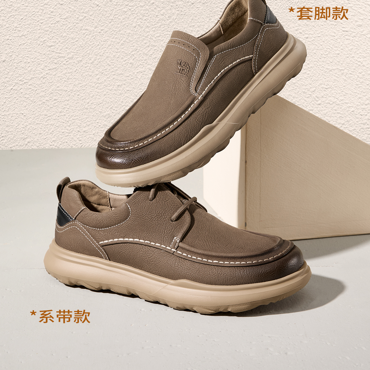Camel Men's Shoes 2025 Winter New Thick-Soled Slip-On Soft Sole Comfortable Commuting Middle-Aged Dad Casual Leather Shoes for Men