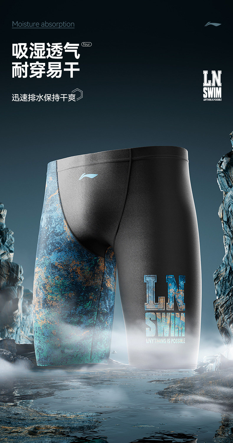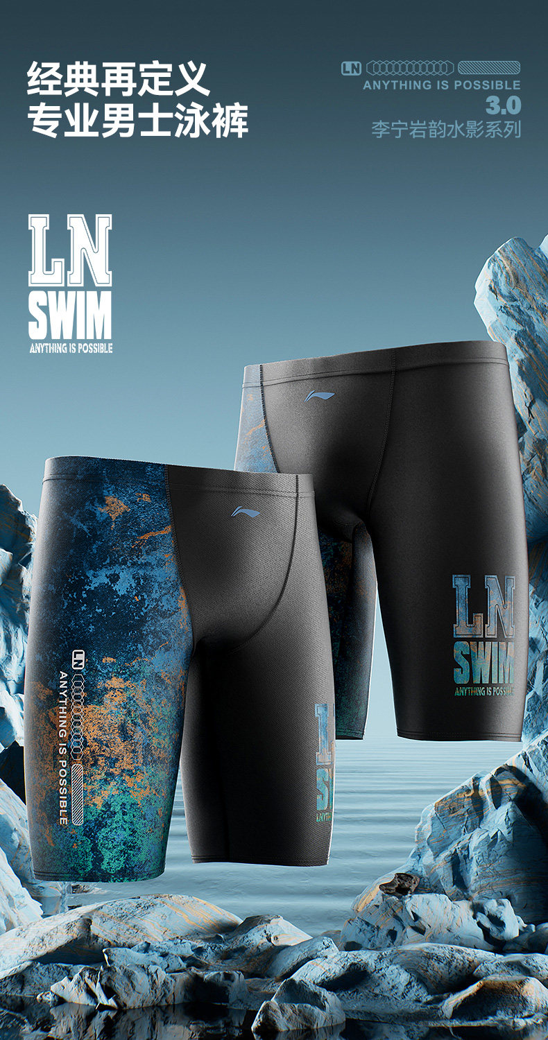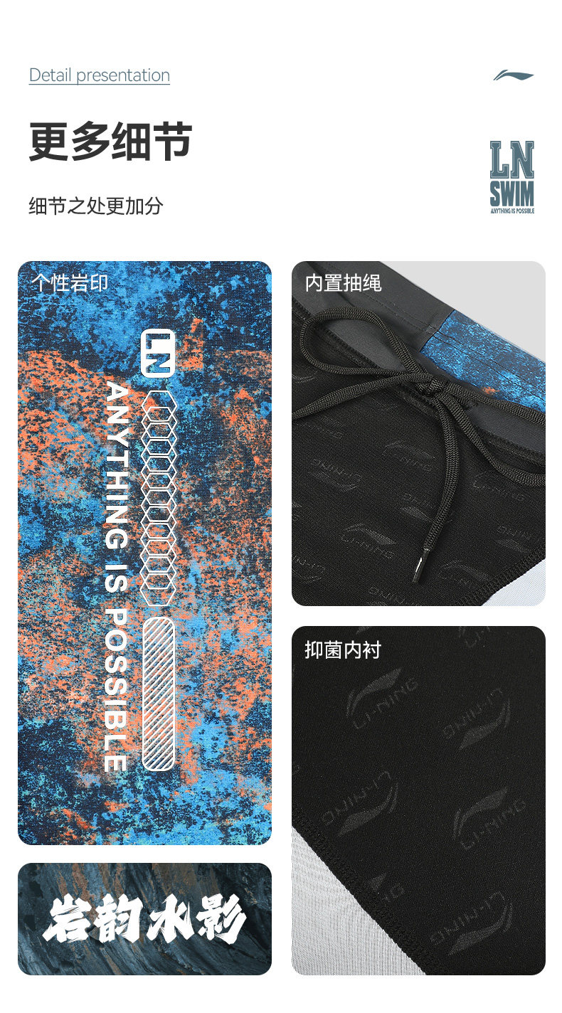 Li-Ning Men's Swimming Trunks, Professional Sports Anti-Embarrassment 2026 New Model Hot Spring Swimming Trunks Swimming Set