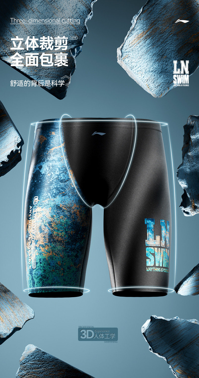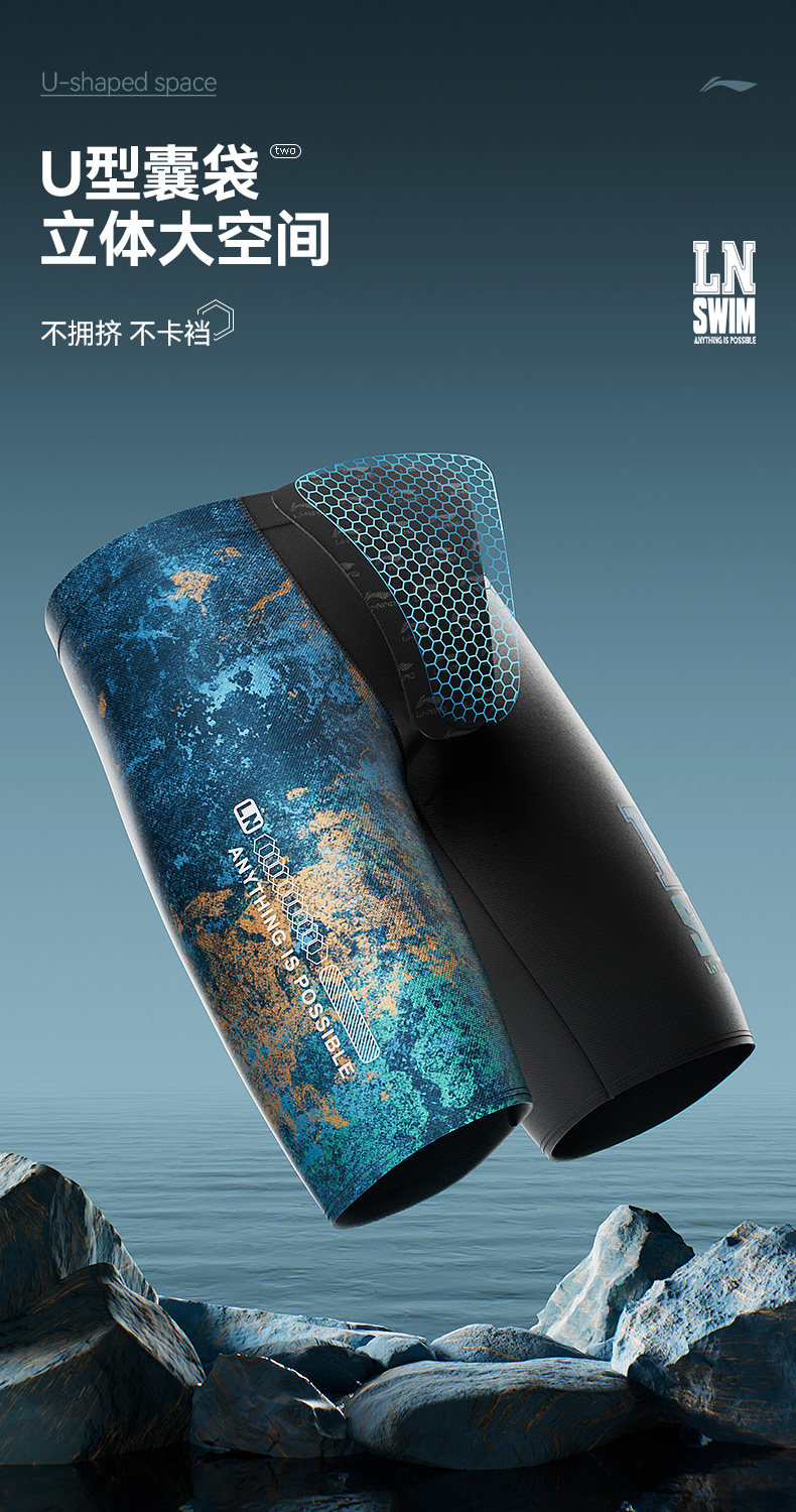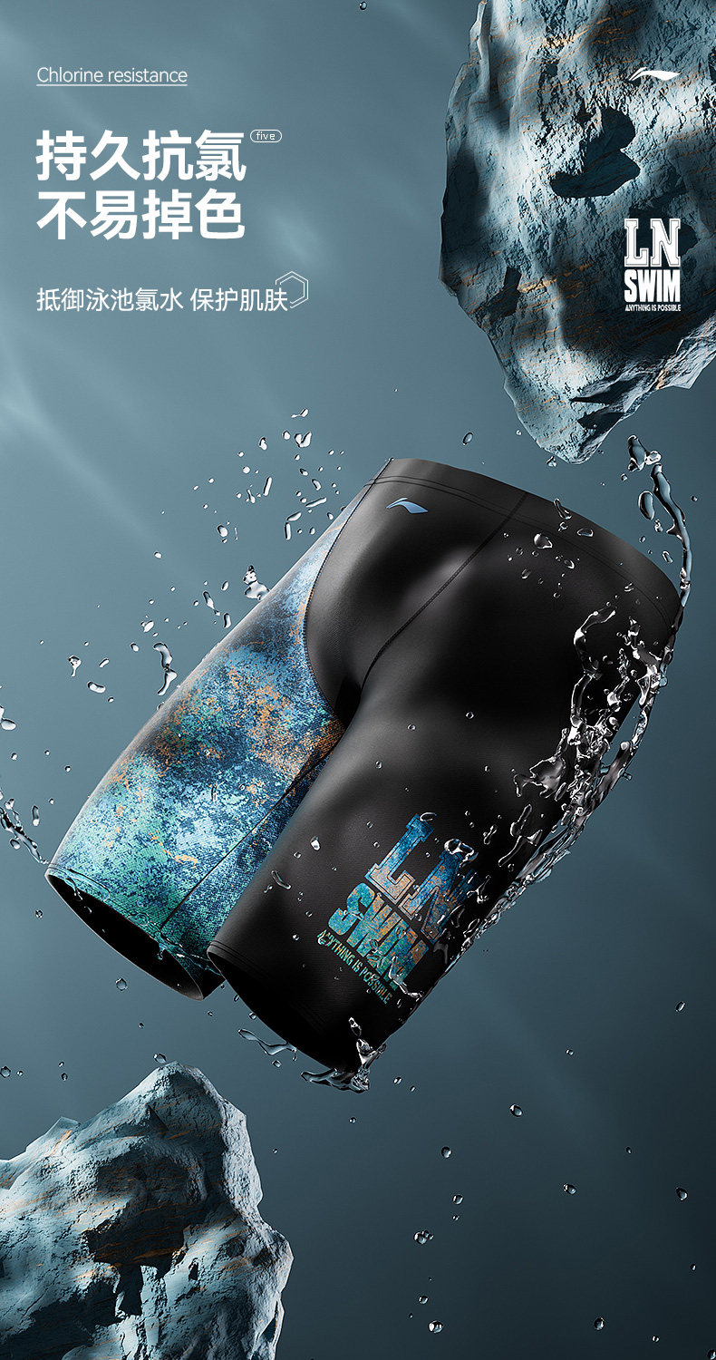 Li-Ning Men's Swimming Trunks, Professional Sports Anti-Embarrassment 2026 New Model Hot Spring Swimming Trunks Swimming Set