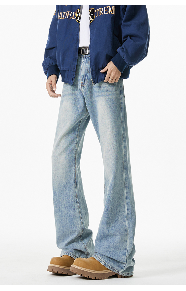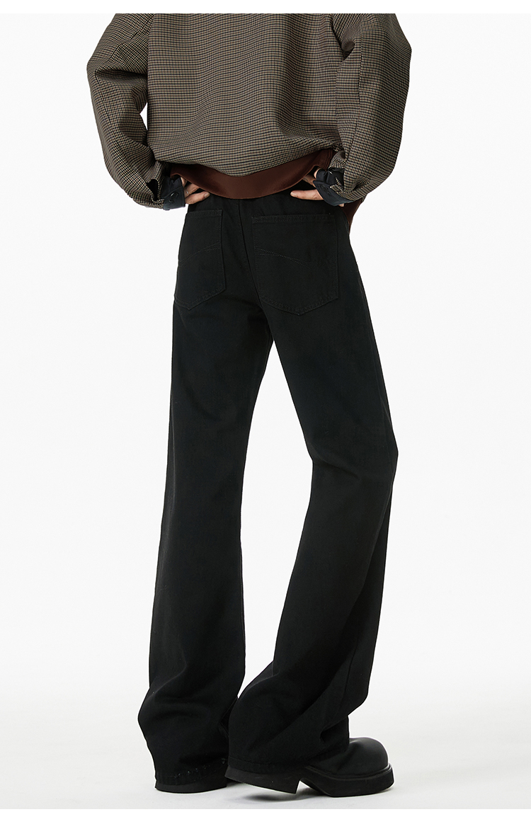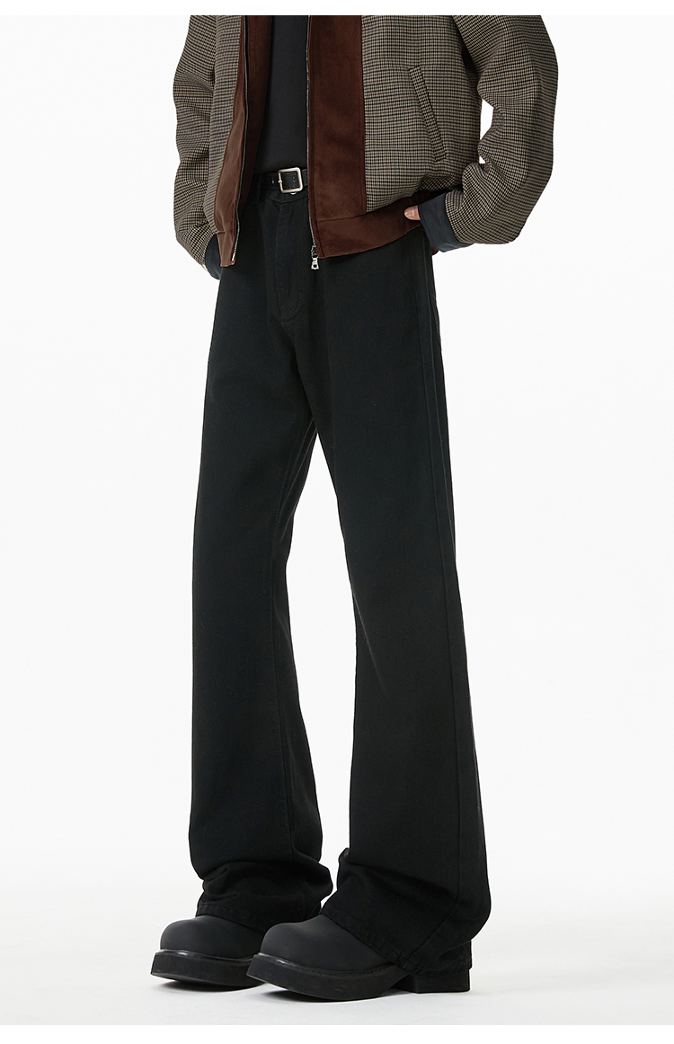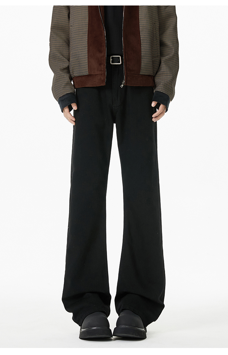 V37 American Retro Black Flared Pants for Men, Autumn High Street Cleanfit Loose Wide-Leg Fleece-Lined Jeans