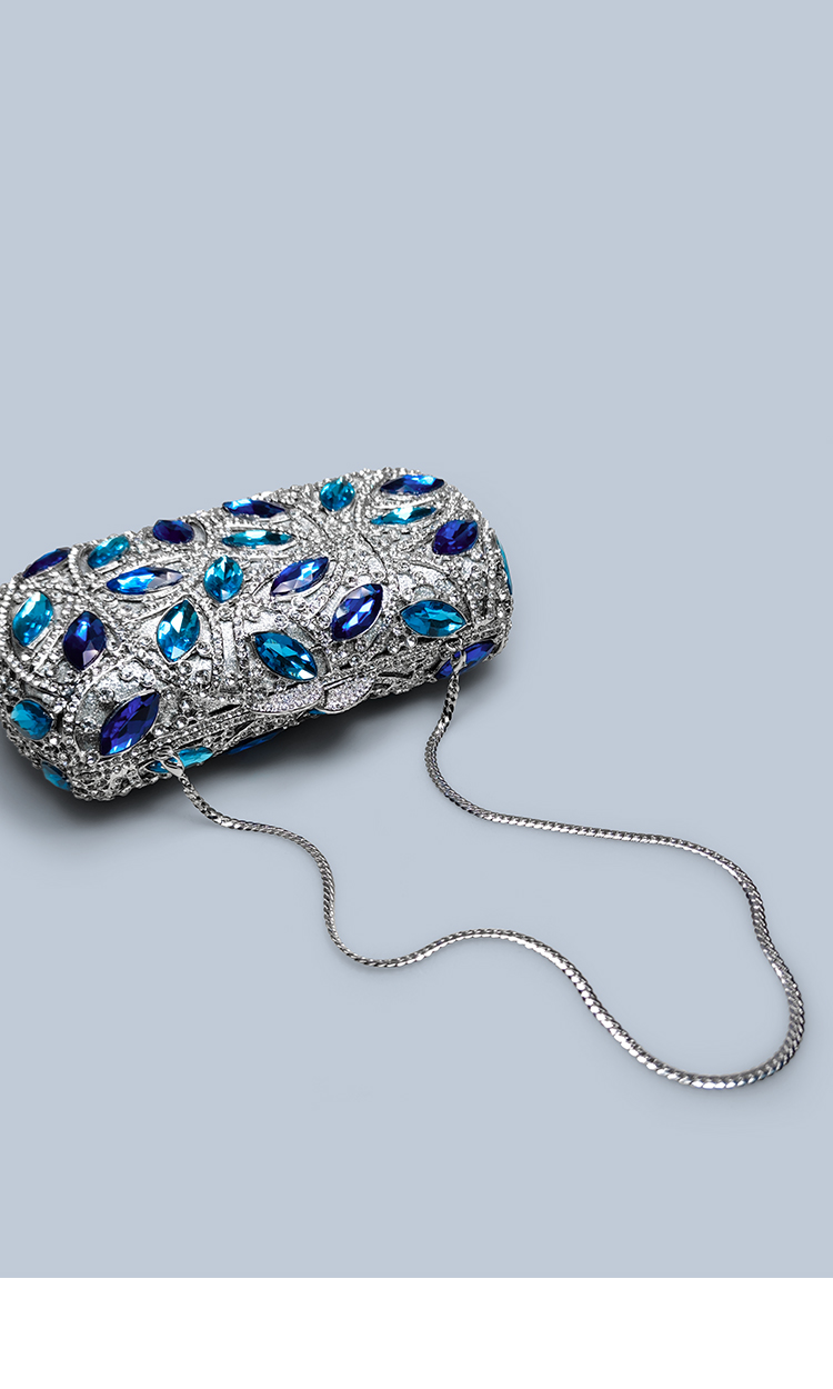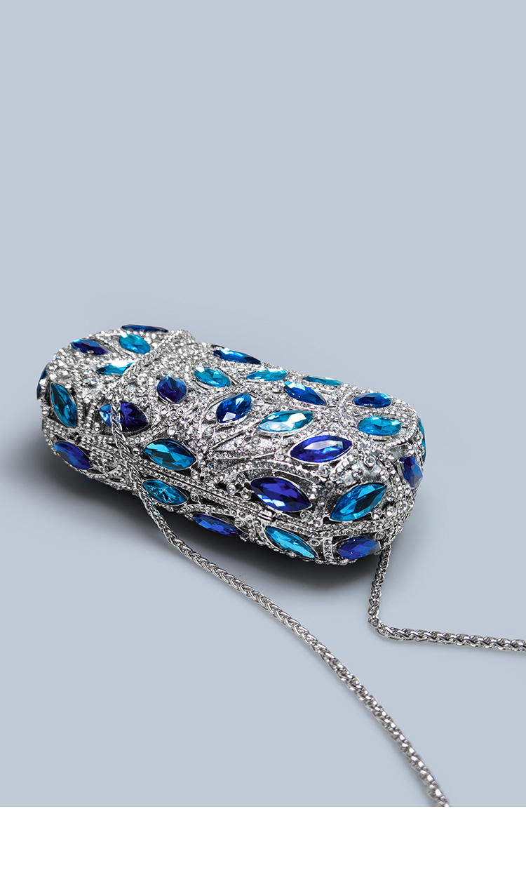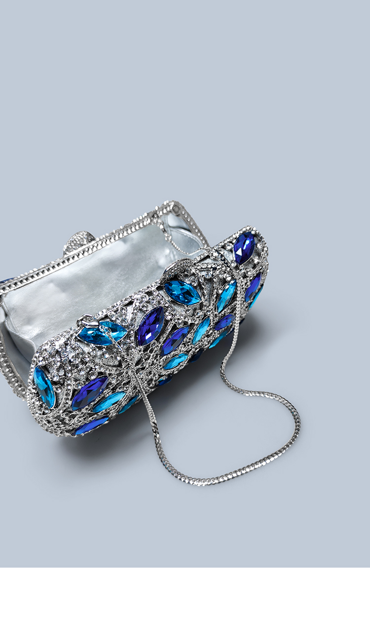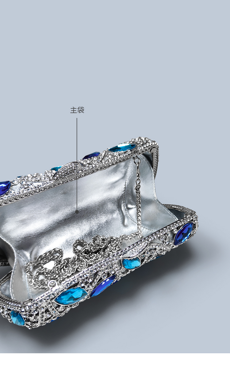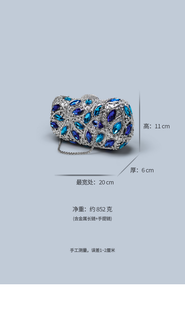 Light Luxury Blue Diamond Clutch Bag Paired with a Cheongsam Evening Dress, Small Bag for Women, New Hollow-Out Diamond-Encrusted Evening Bag