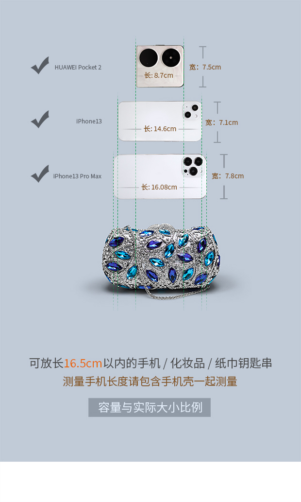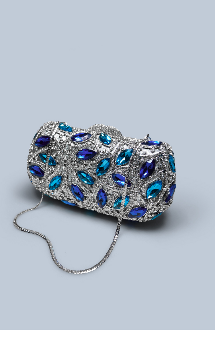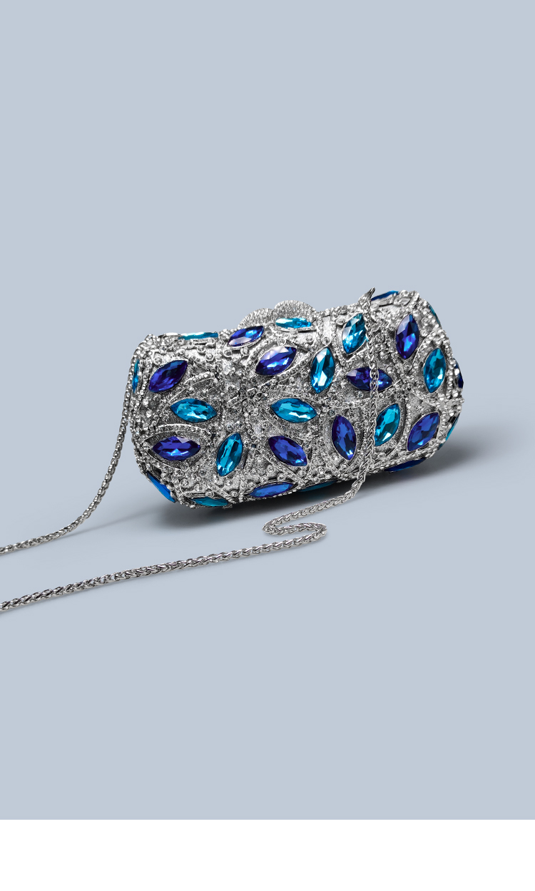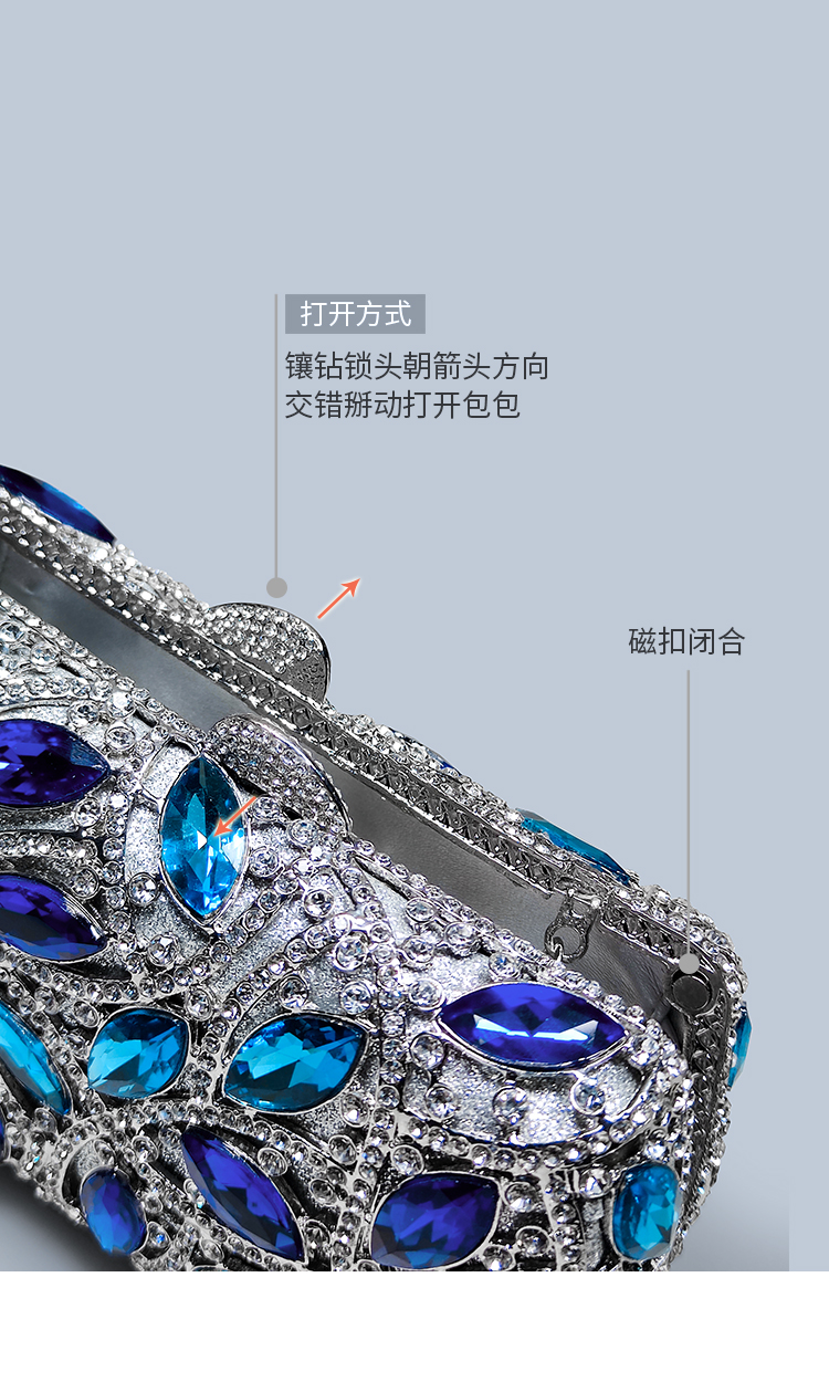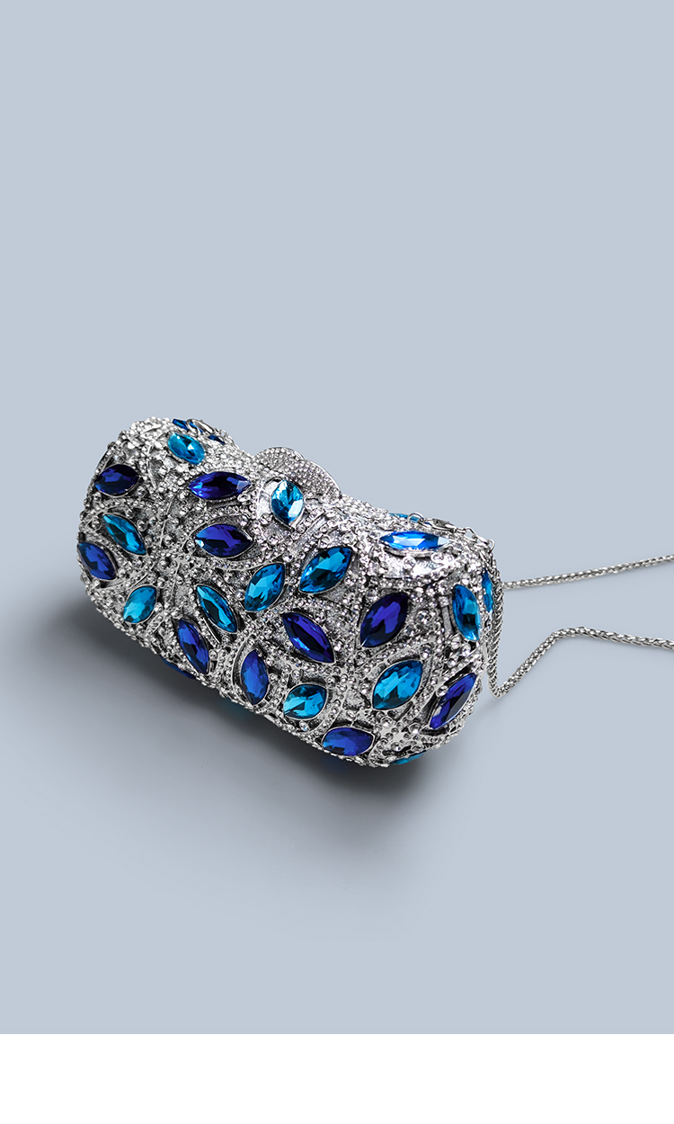 Light Luxury Blue Diamond Clutch Bag Paired with a Cheongsam Evening Dress, Small Bag for Women, New Hollow-Out Diamond-Encrusted Evening Bag