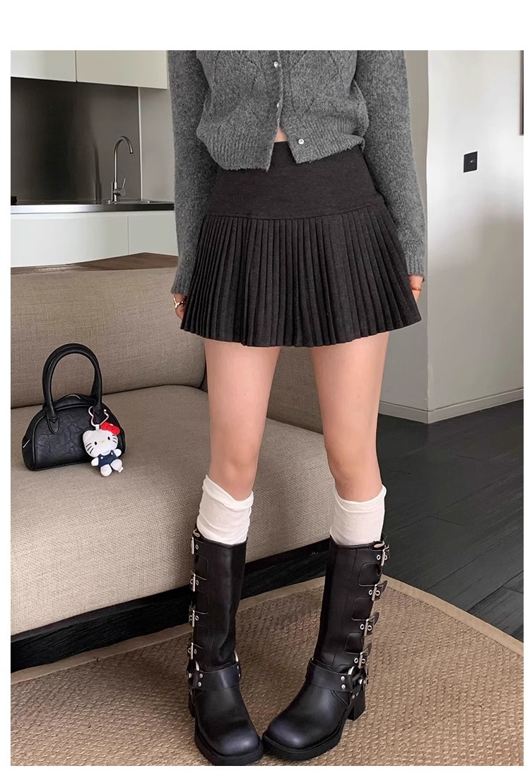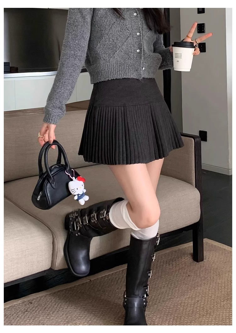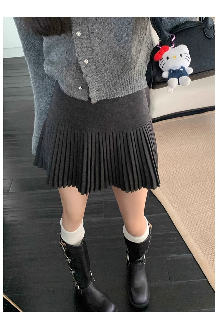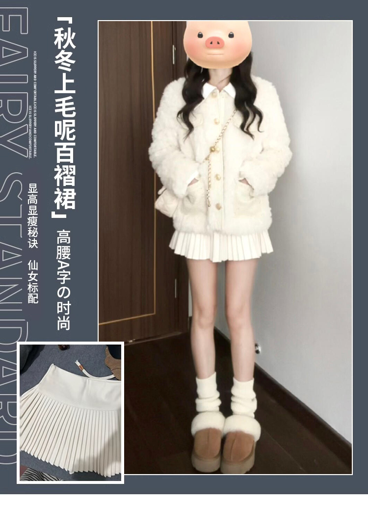Woolen Pleated Skirt for Women, Autumn and Winter 2025 New High-Waisted Slimming Thickened Jk Short Skirt, Petite A-Line Half Skirt