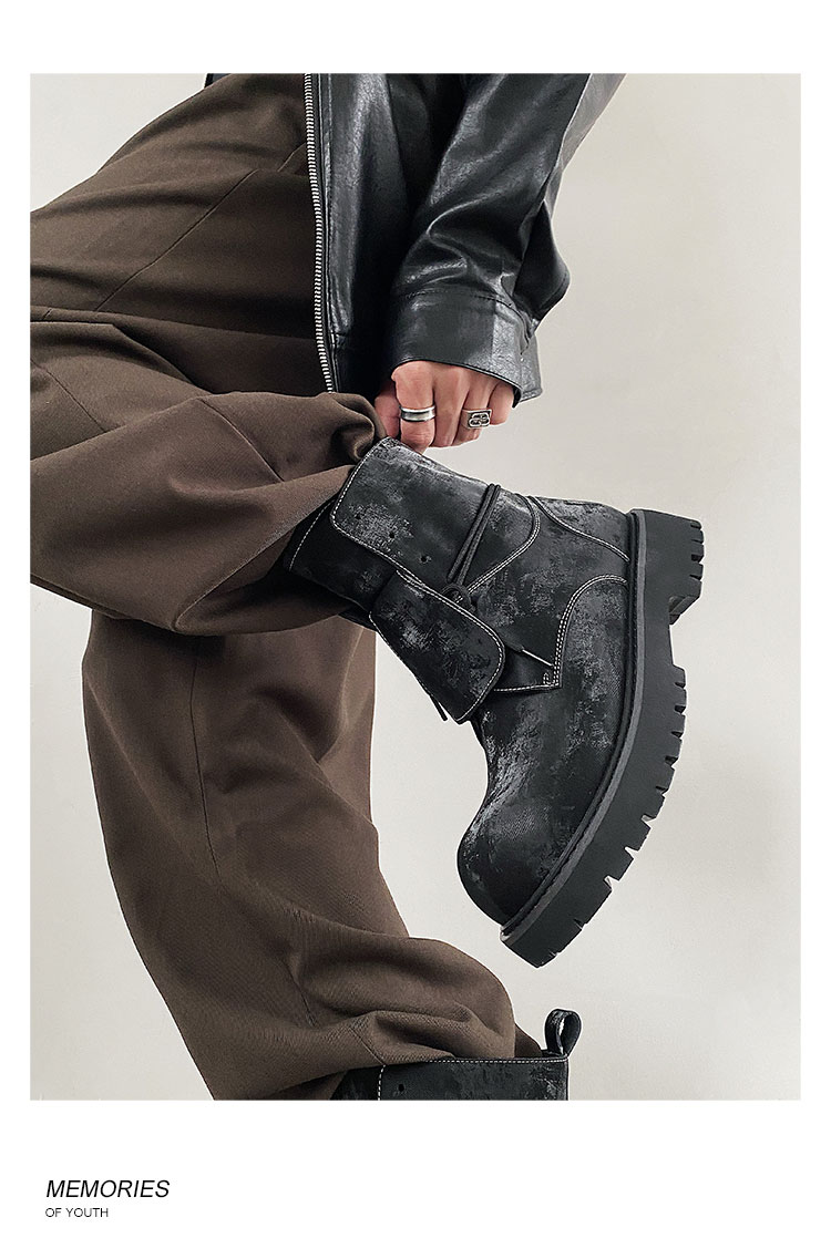 【Wasteland Style Retro Chunky Derby Shoes】2025 New Leather Boots Men's Shoes Spring, Autumn, Winter Height-Increasing Martin Boots