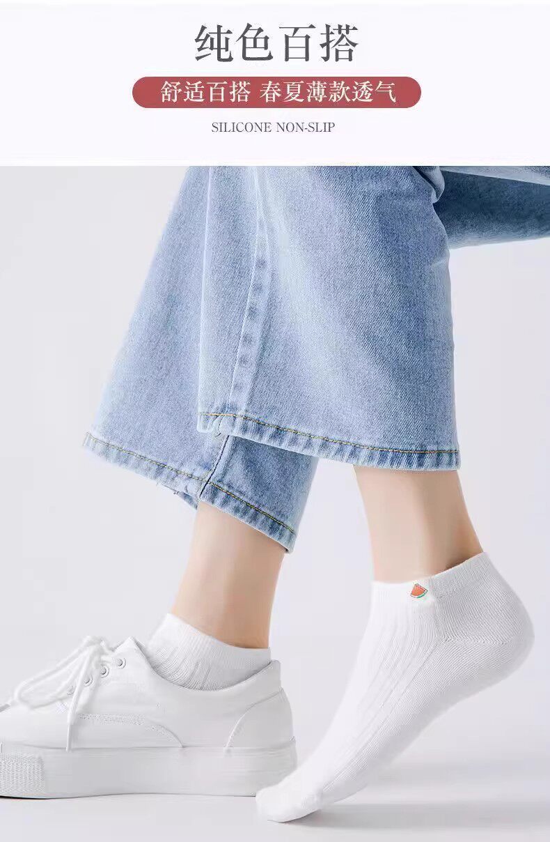 White Socks for Women 2025 New Thin Style Spring and Summer Thin Solid Color Low-Cut Short Socks Cotton Summer Invisible Boat Socks