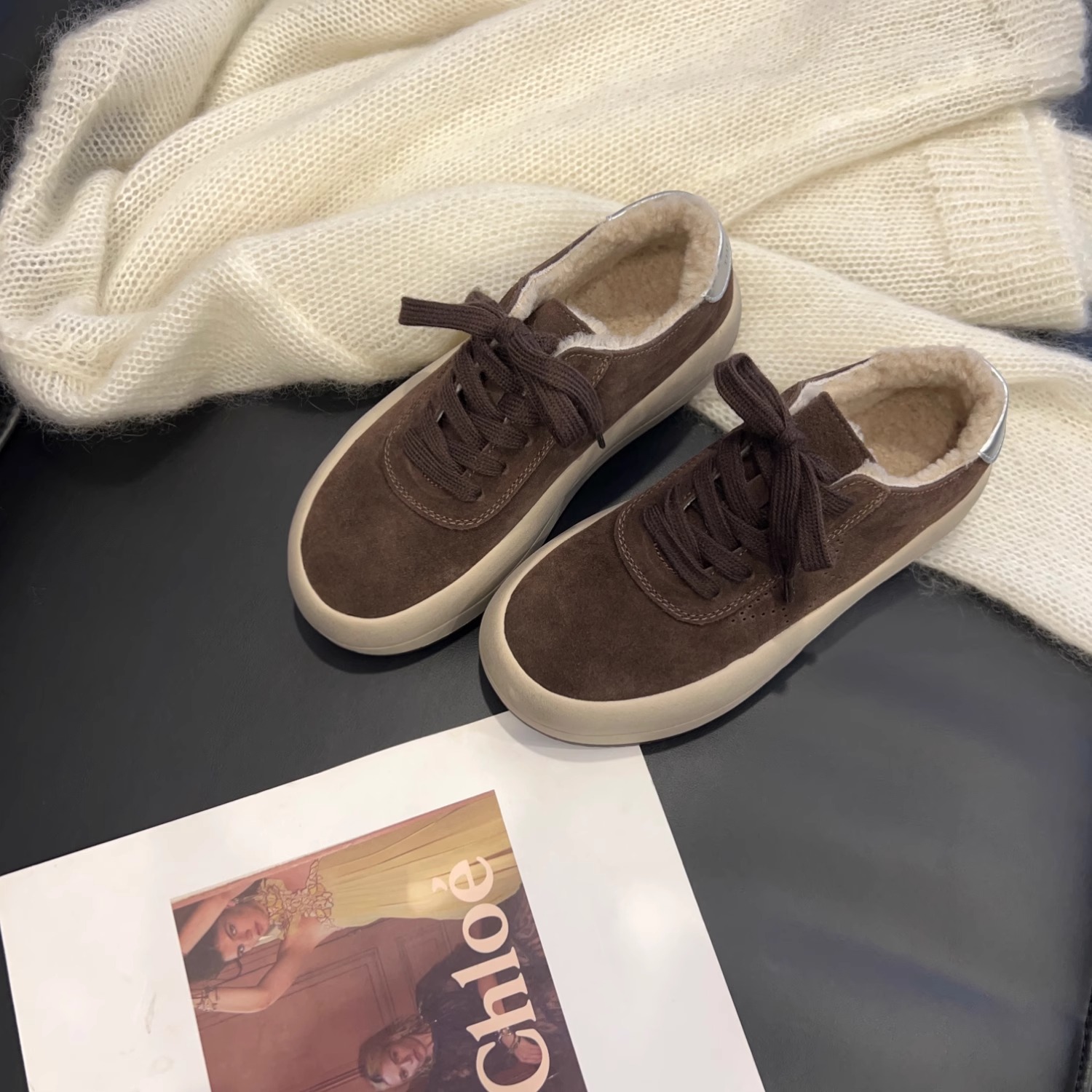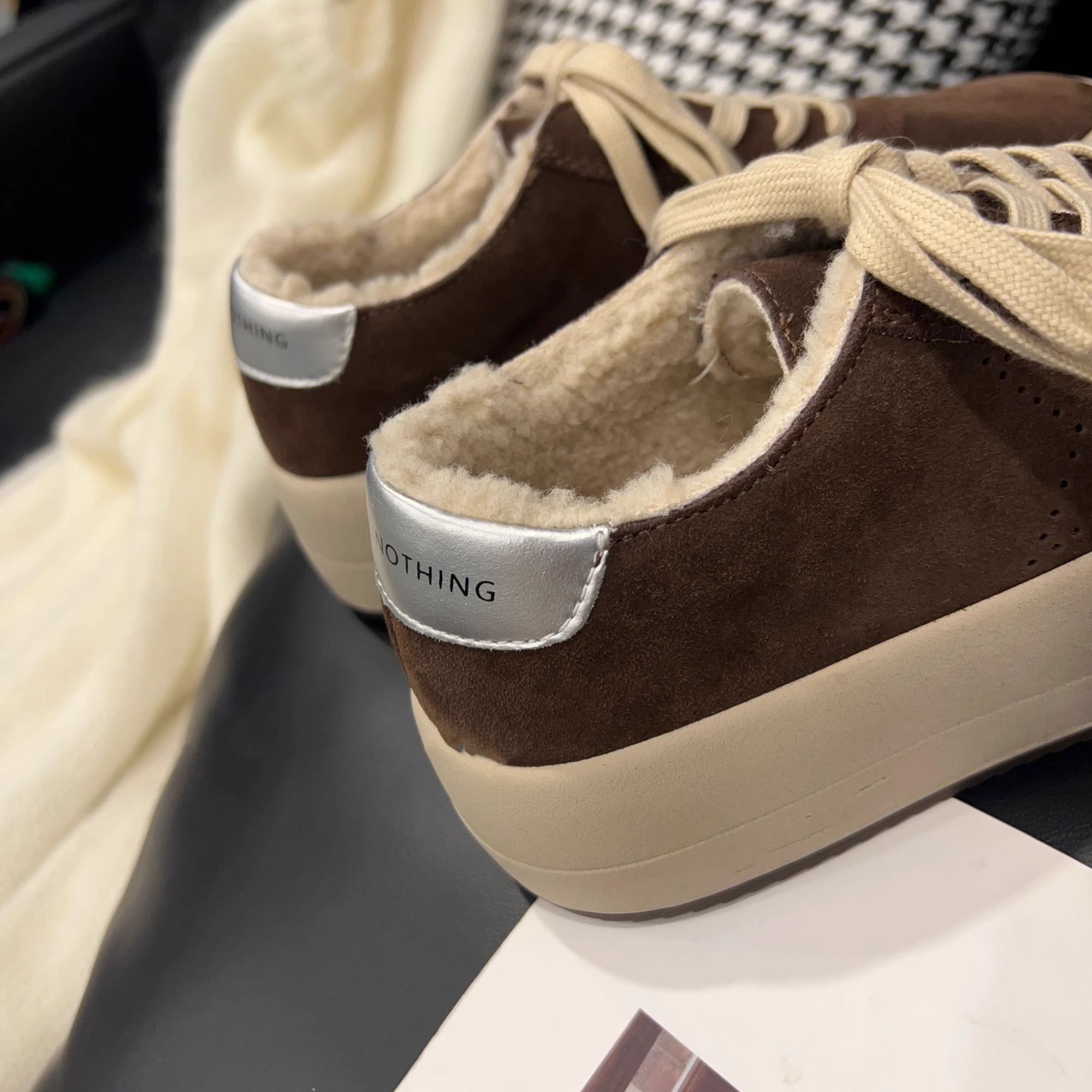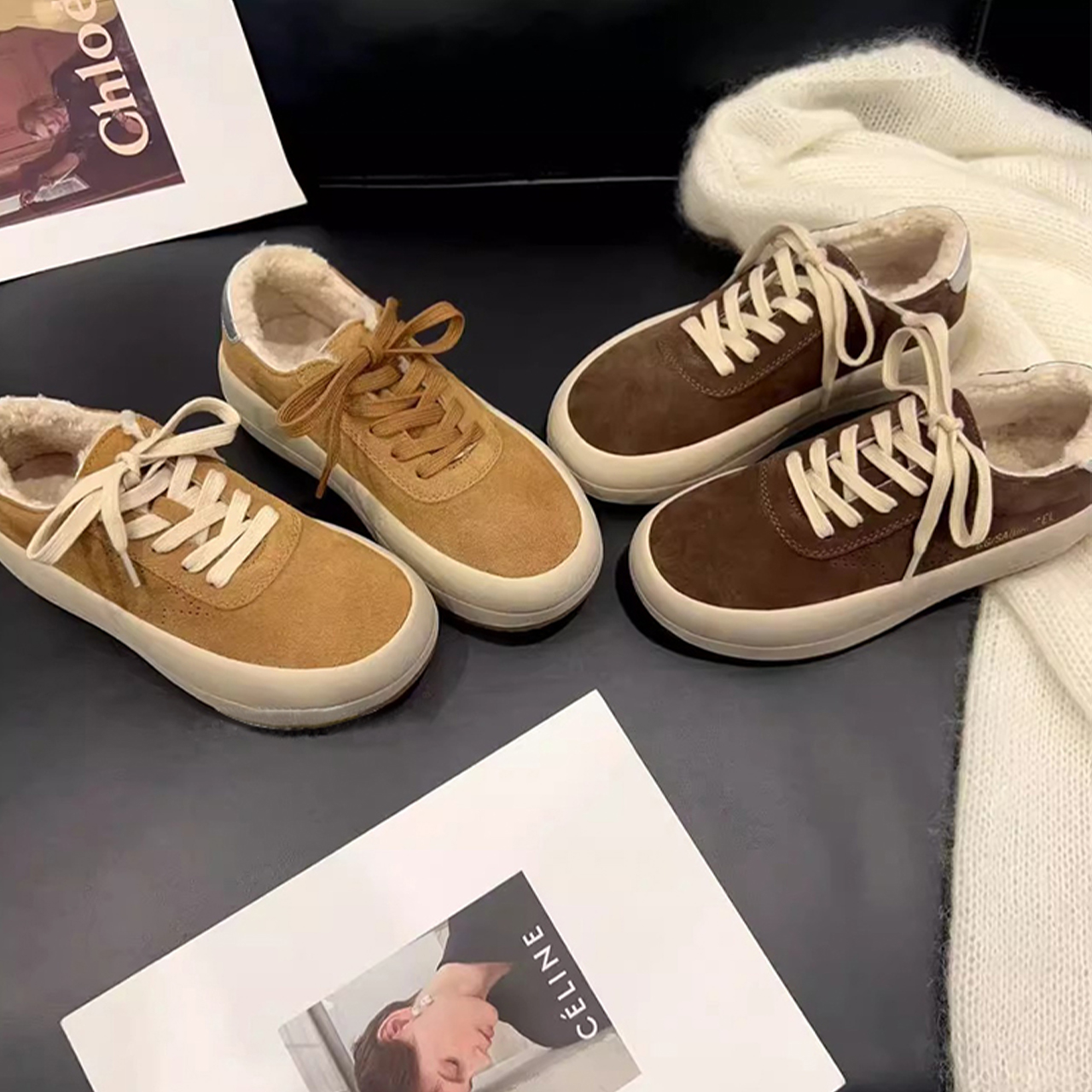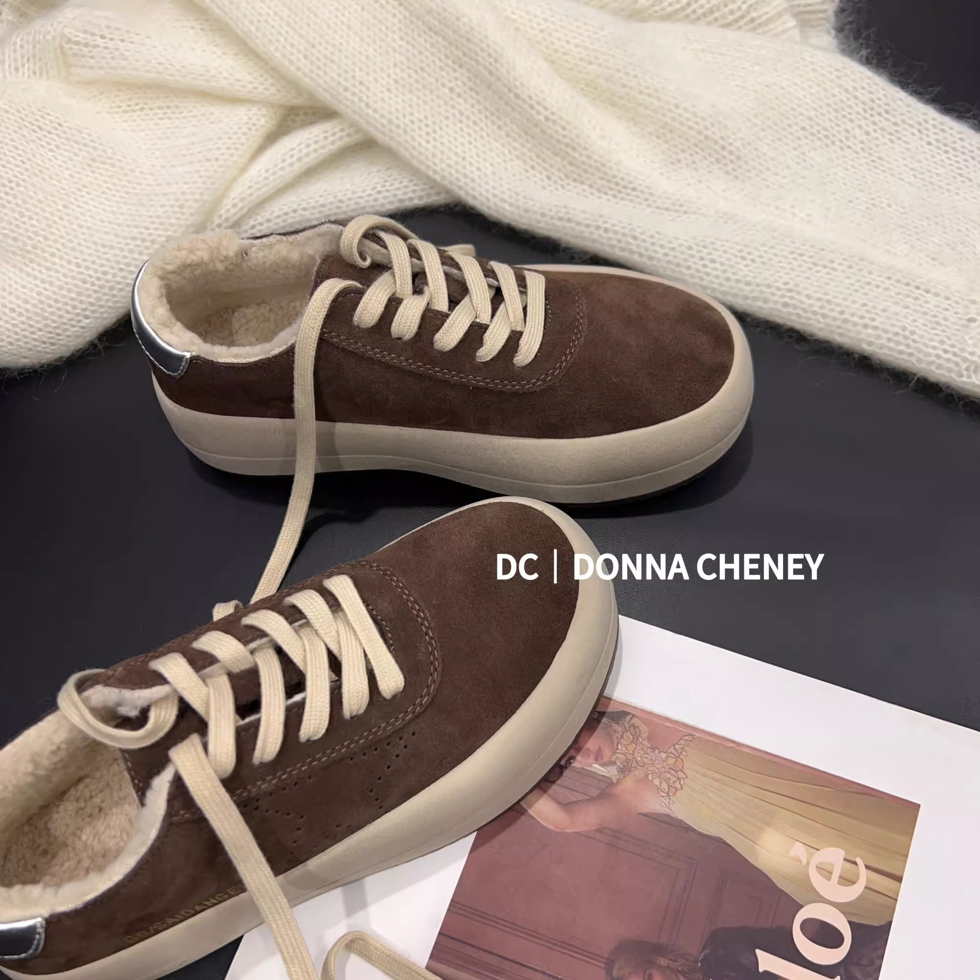 Hong Kong Genuine Leather Thick-Soled Sneakers for Women 2025 New Winter Fleece-Lined Casual Shoes Korean Style Warm Star Sports Cotton Shoes