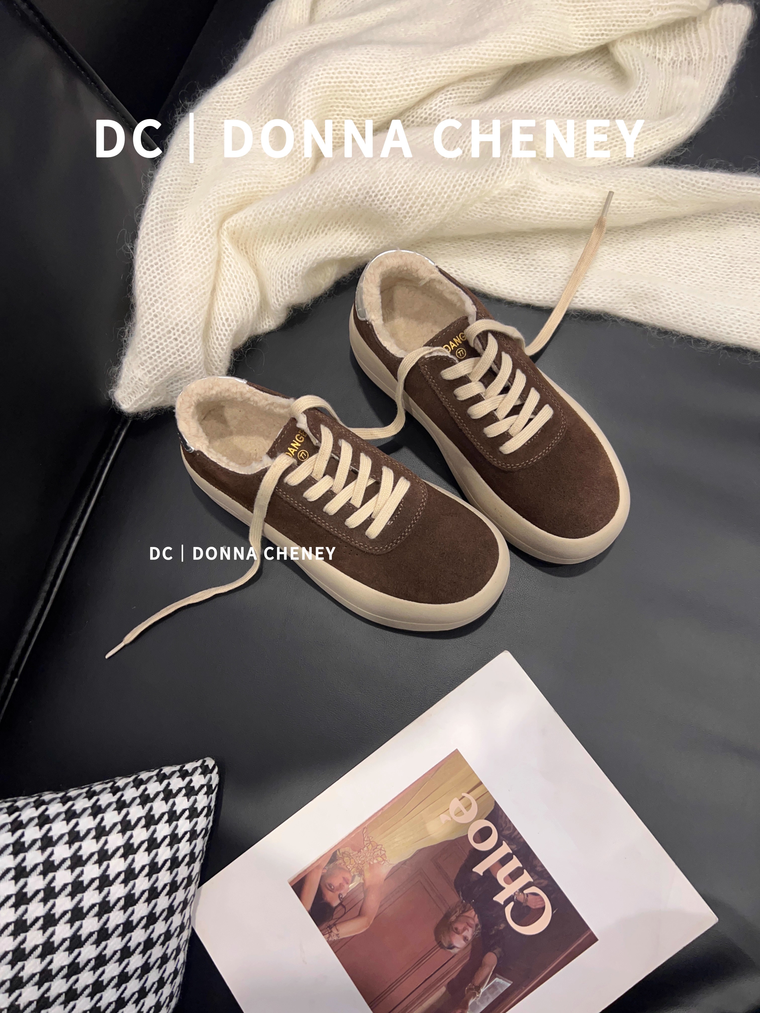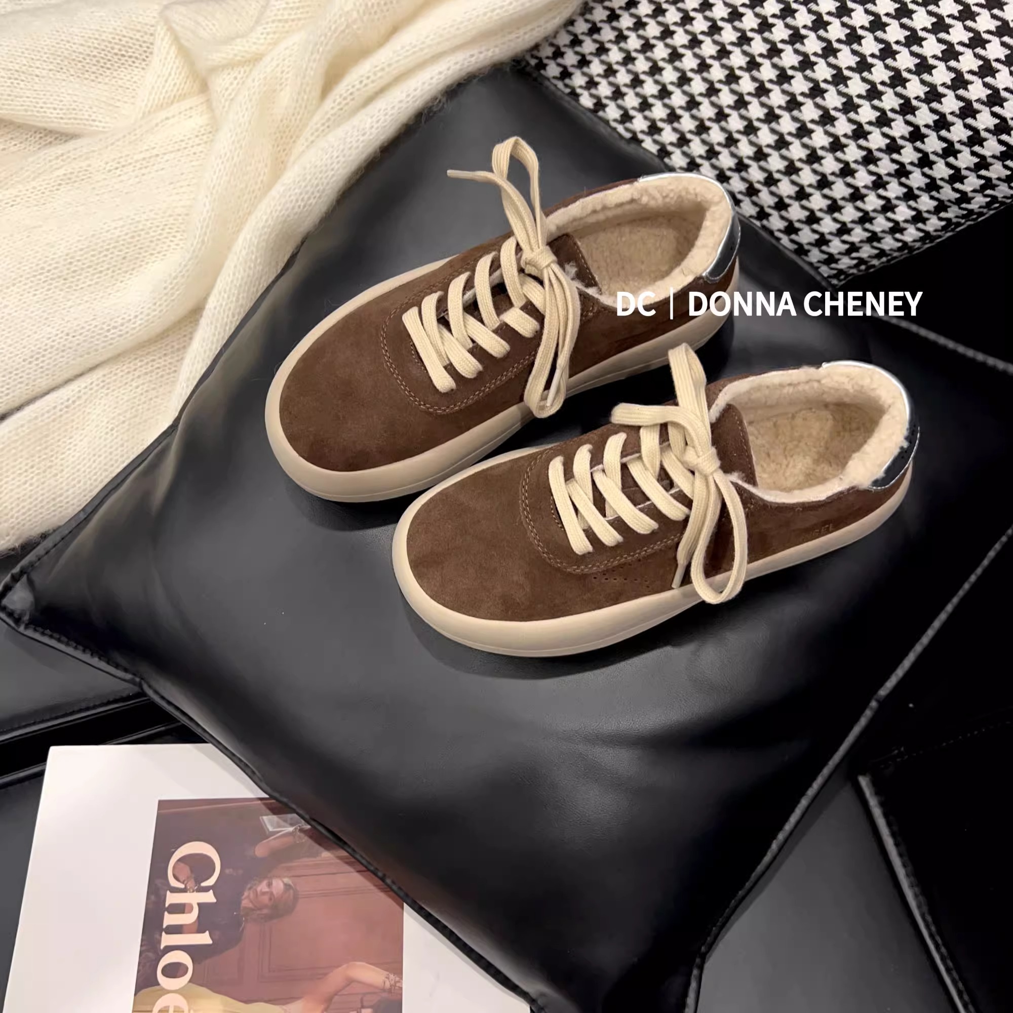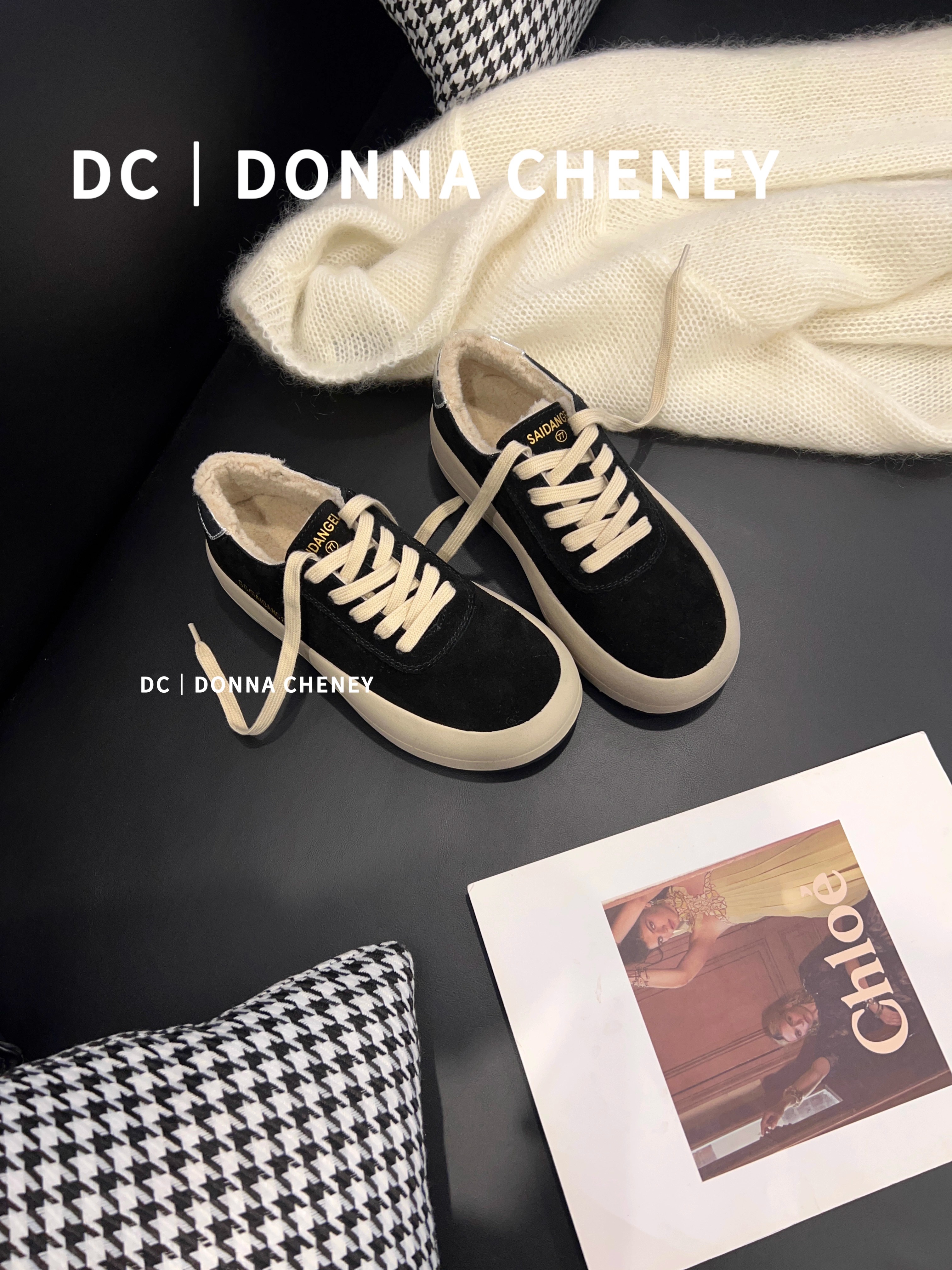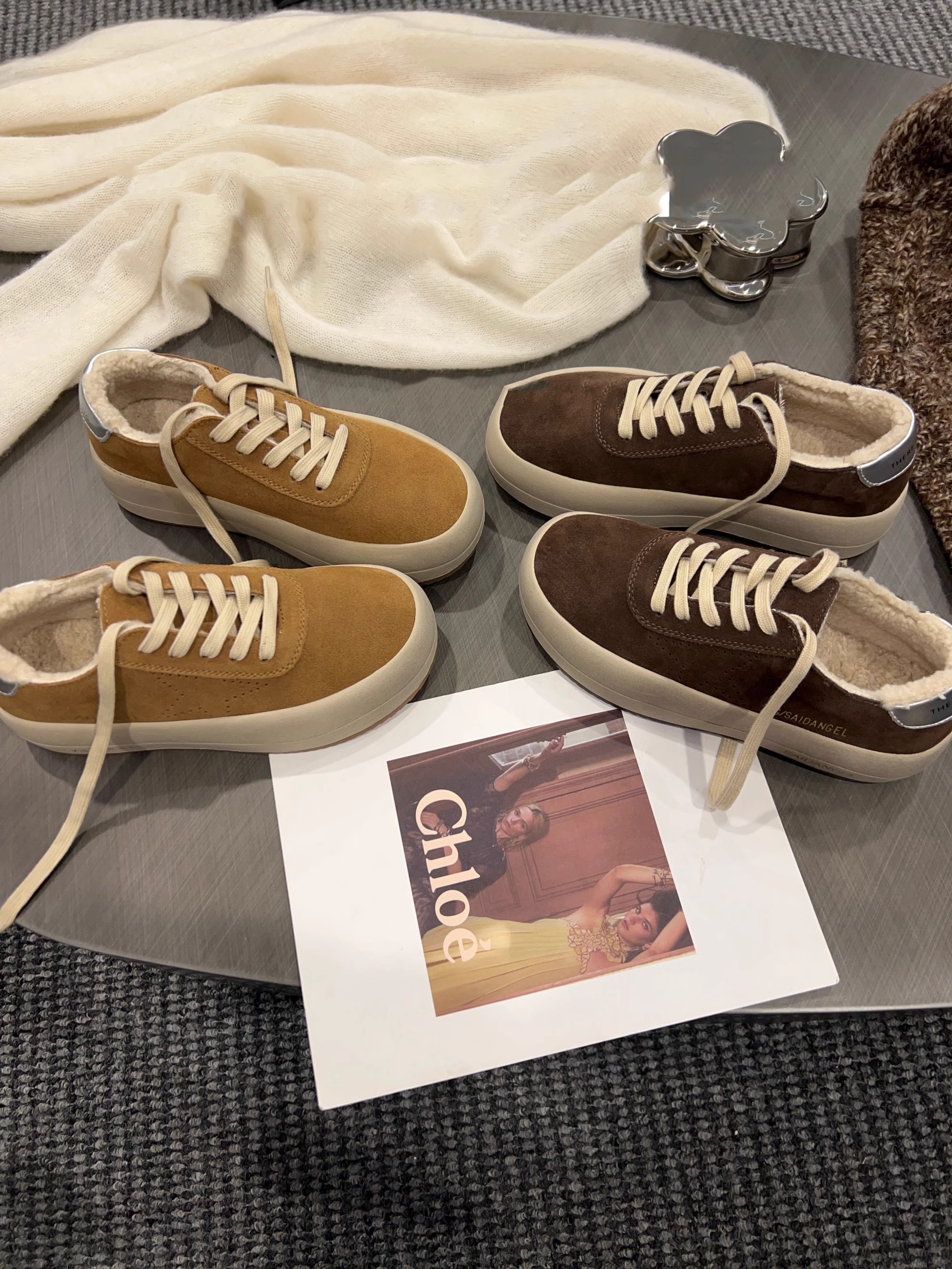 Hong Kong Genuine Leather Thick-Soled Sneakers for Women 2025 New Winter Fleece-Lined Casual Shoes Korean Style Warm Star Sports Cotton Shoes