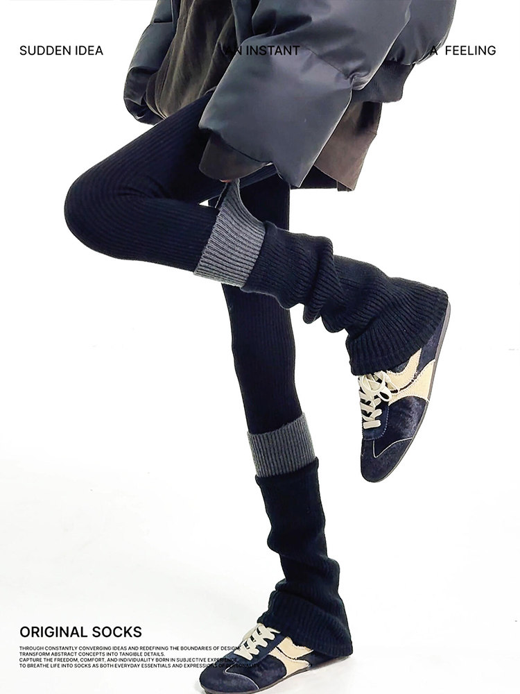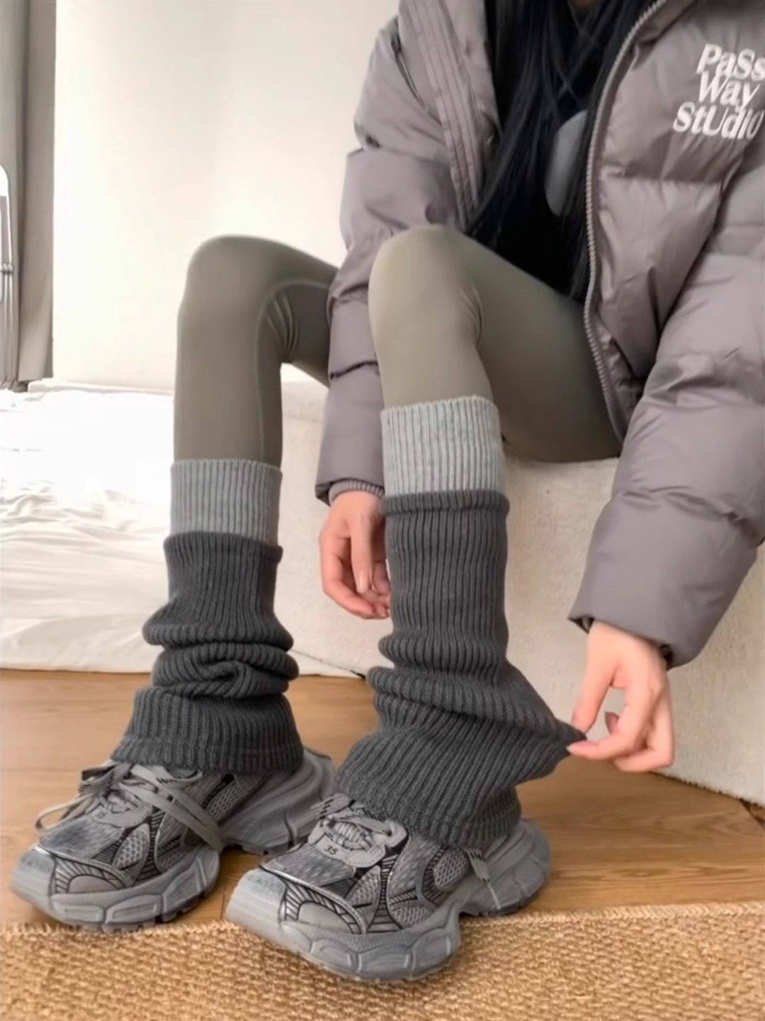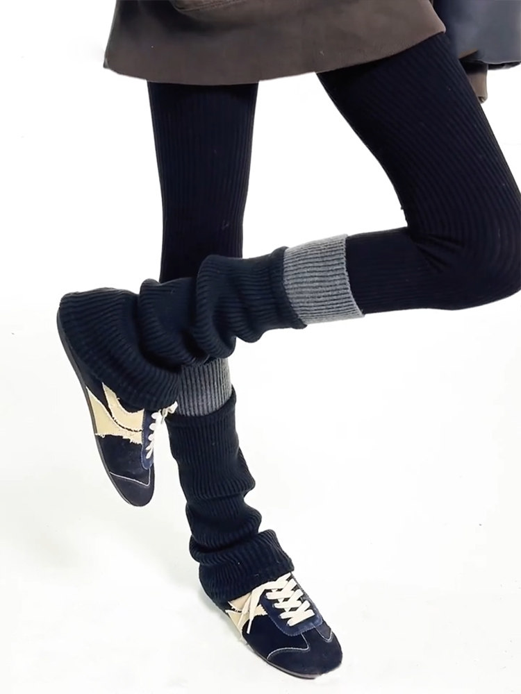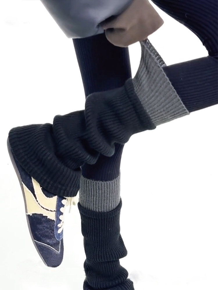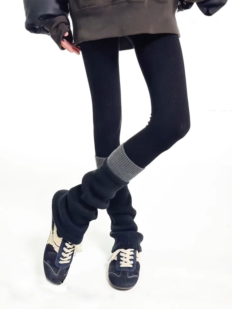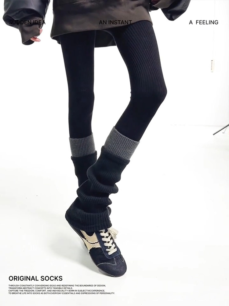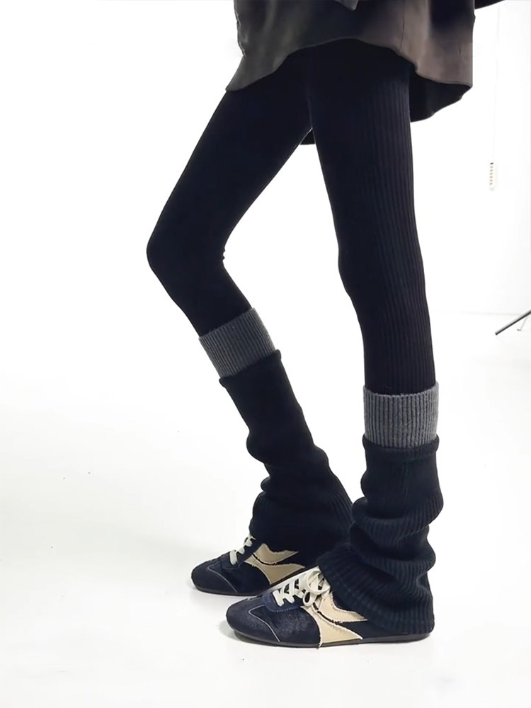 Leggings Look Great When Layered! High-End Color-Blocking and Stacked Sock Covers~The Slightly Flared Sock Cuffs Really Enhance the Leg Shape~