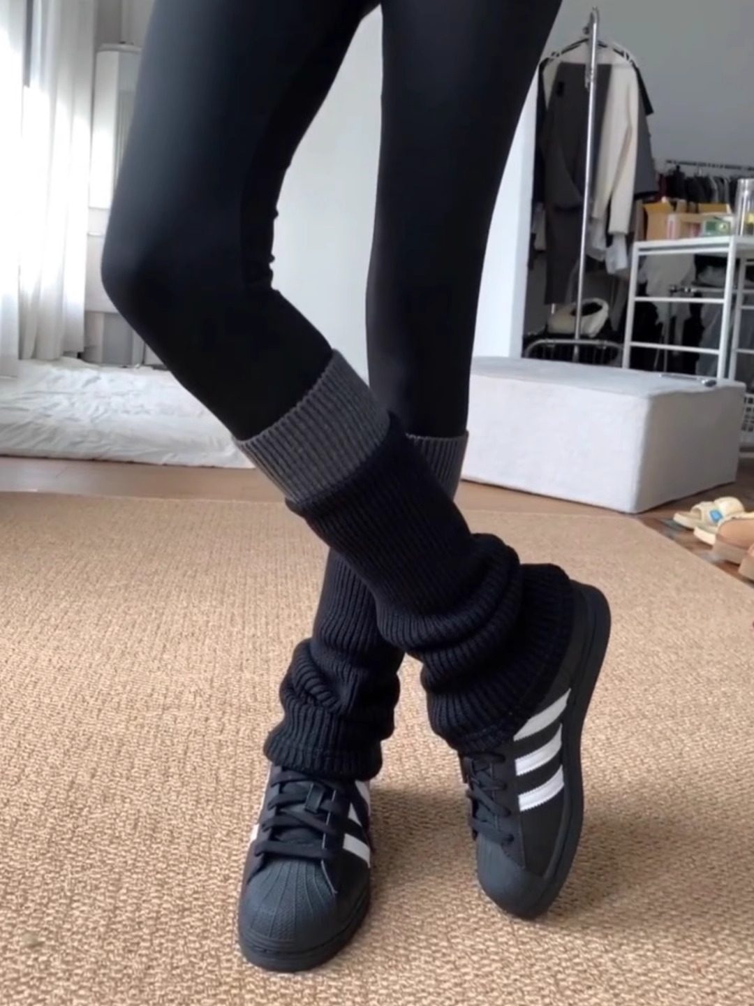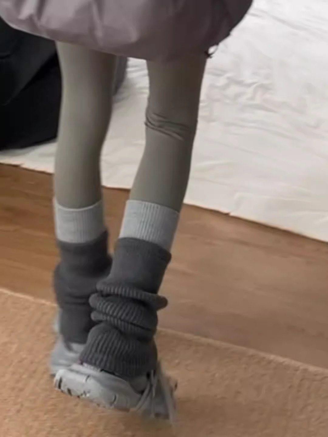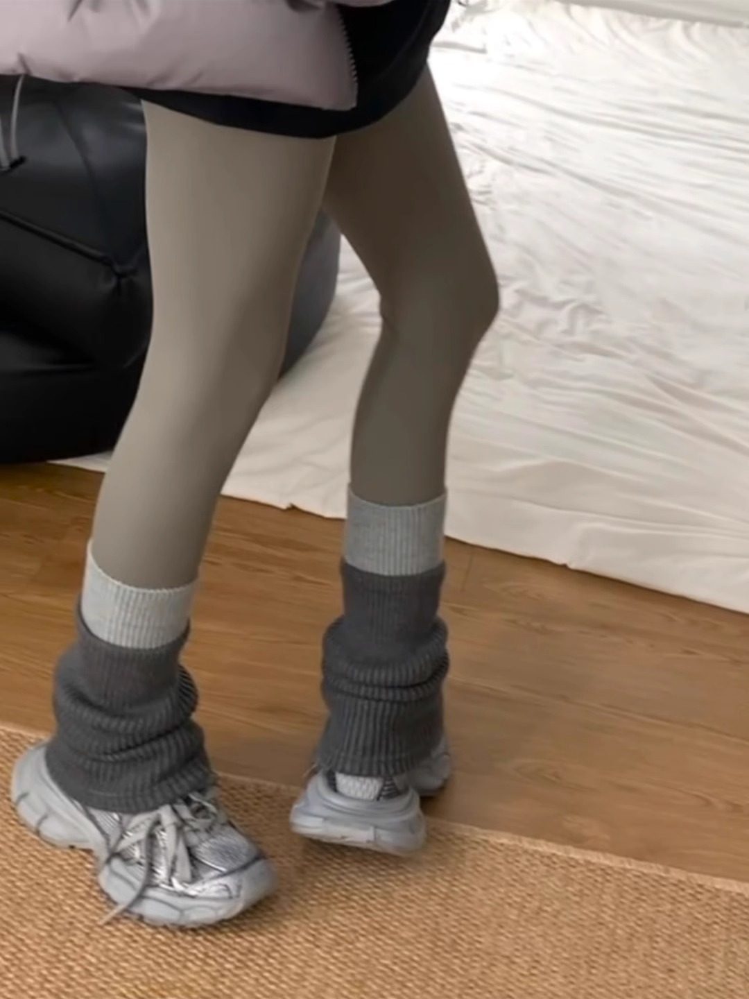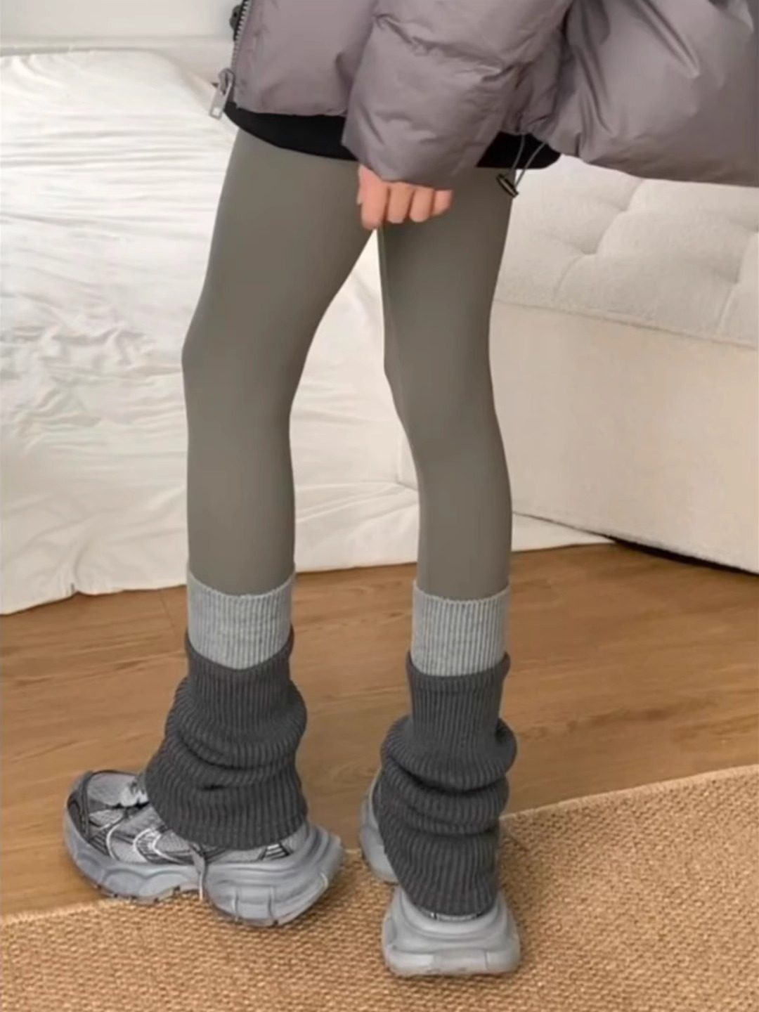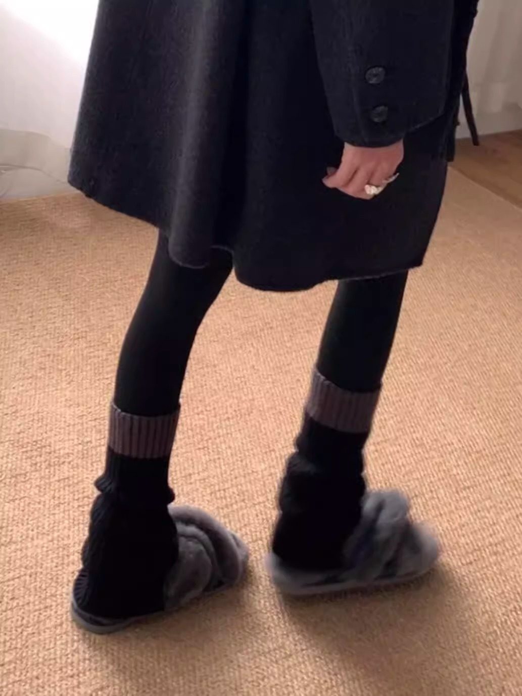 Leggings Look Great When Layered! High-End Color-Blocking and Stacked Sock Covers~The Slightly Flared Sock Cuffs Really Enhance the Leg Shape~