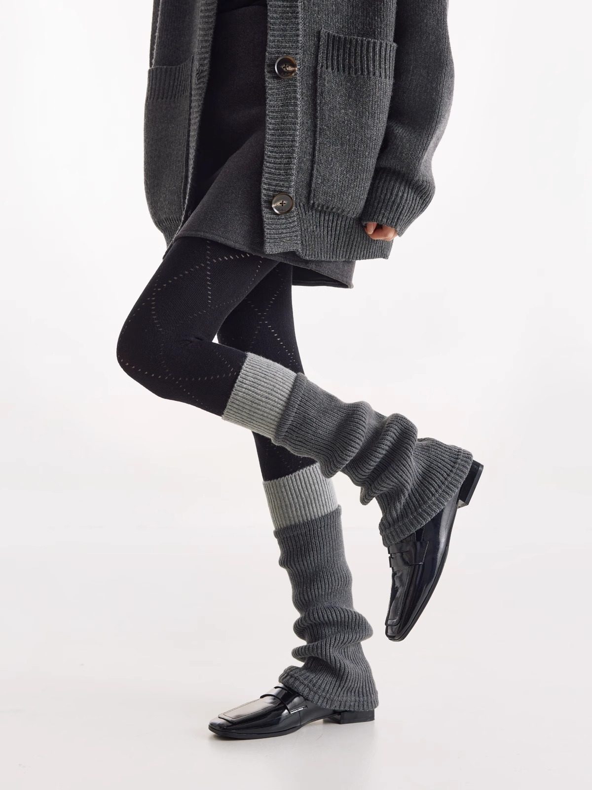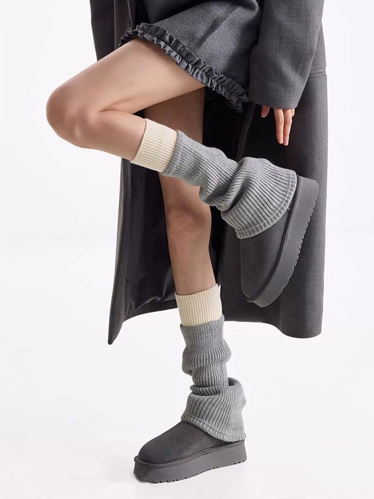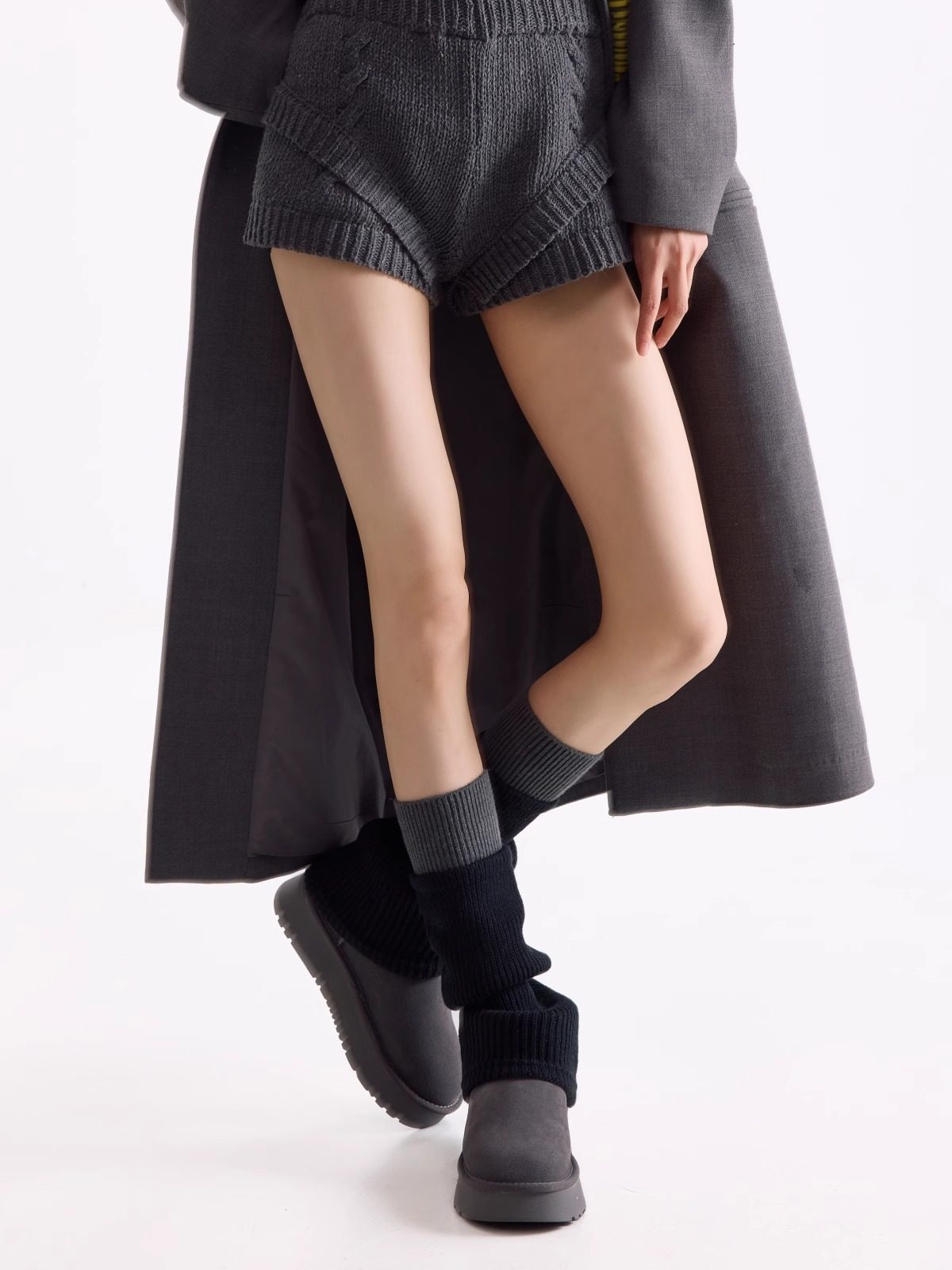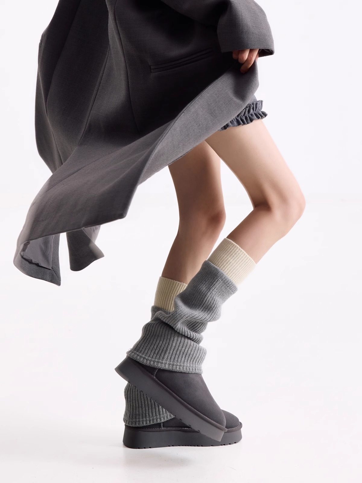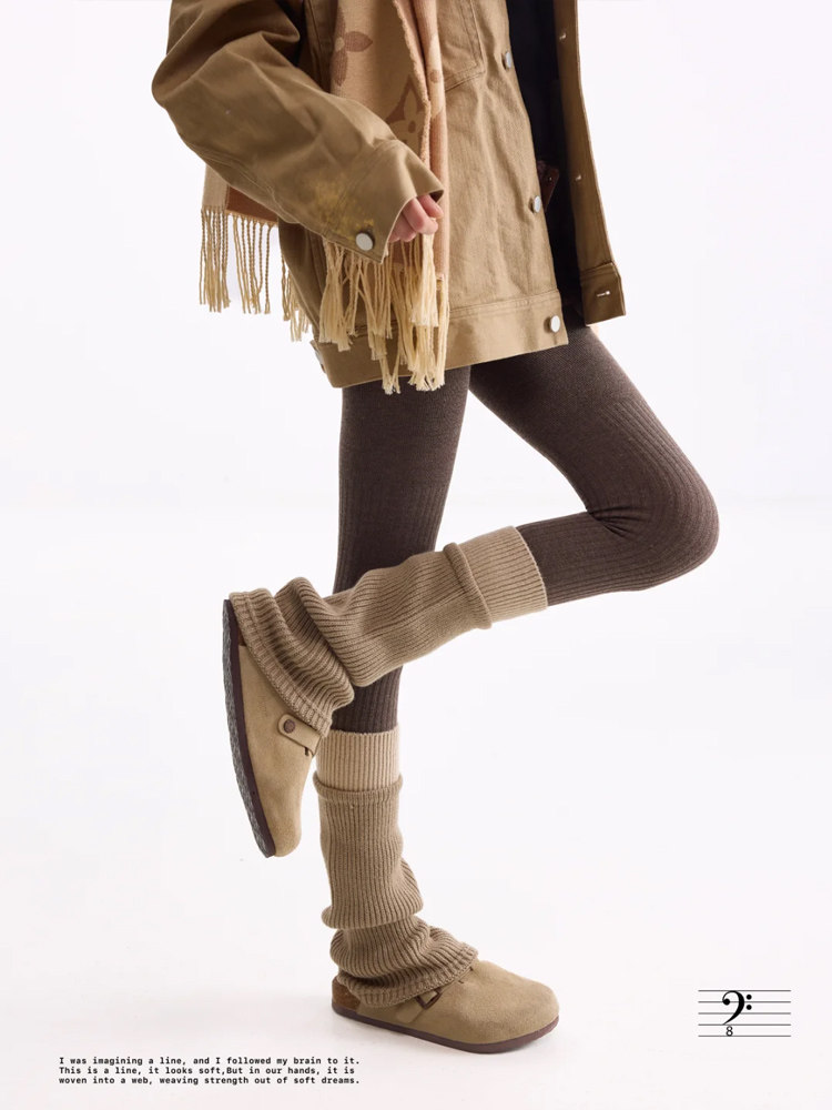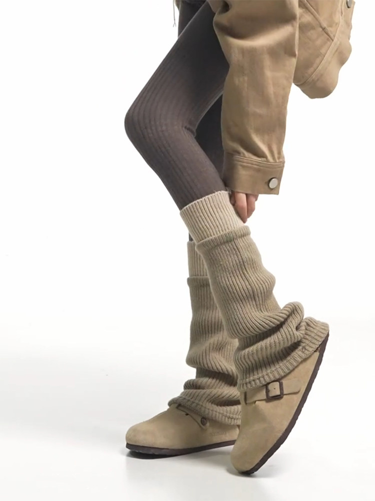 Leggings Look Great When Layered! High-End Color-Blocking and Stacked Sock Covers~The Slightly Flared Sock Cuffs Really Enhance the Leg Shape~