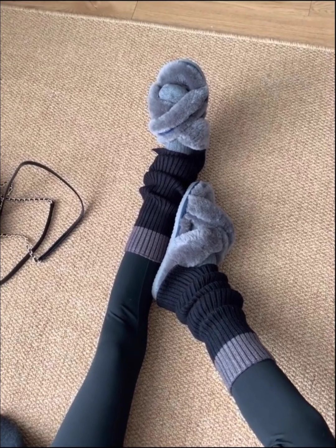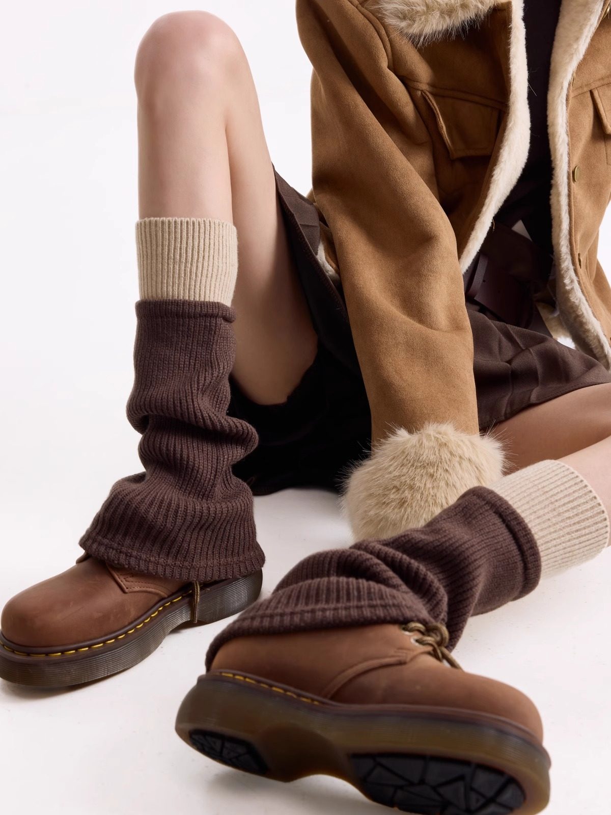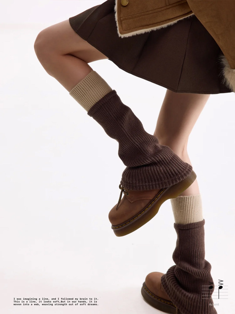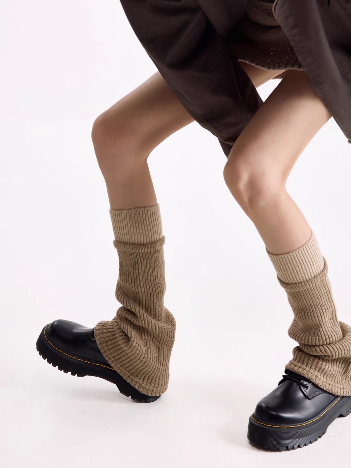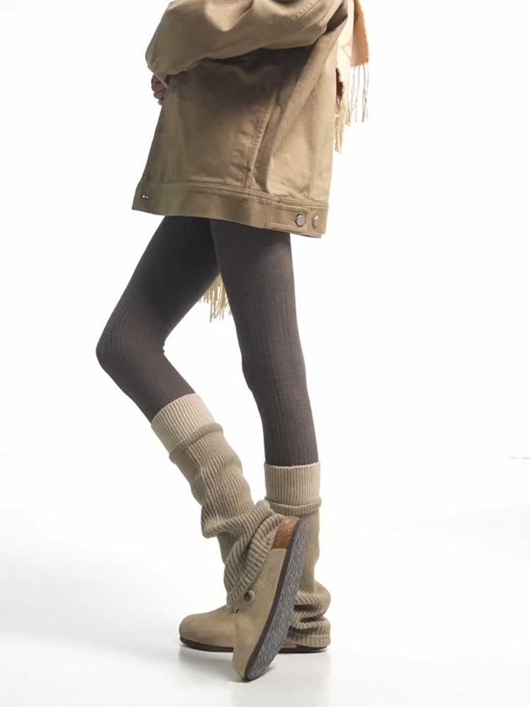 Leggings Look Great When Layered! High-End Color-Blocking and Stacked Sock Covers~The Slightly Flared Sock Cuffs Really Enhance the Leg Shape~