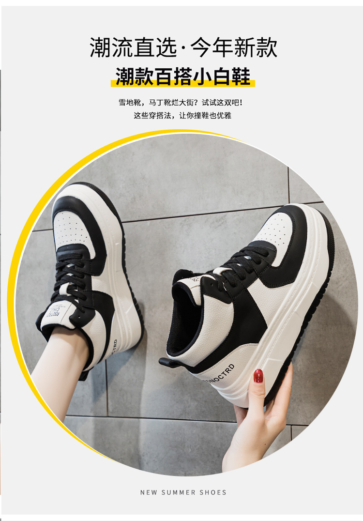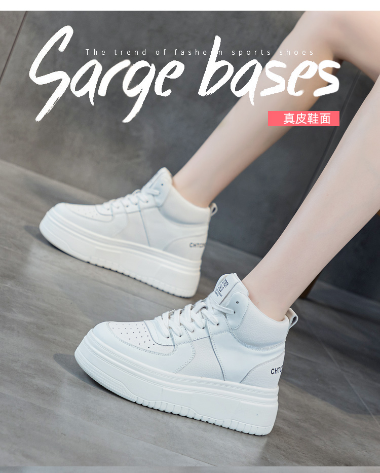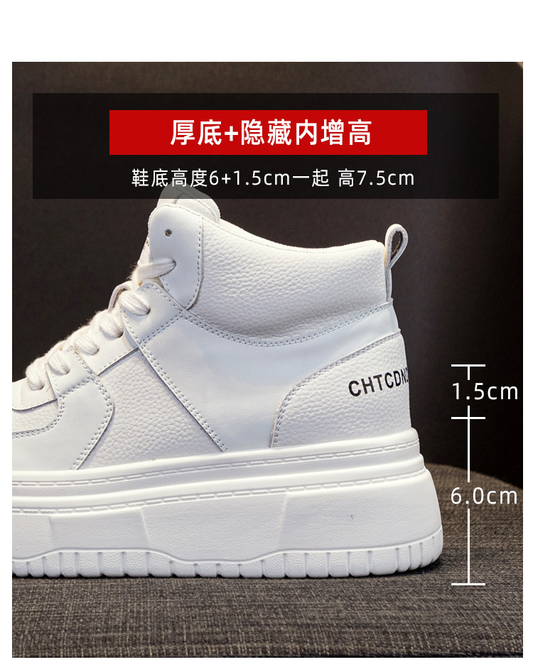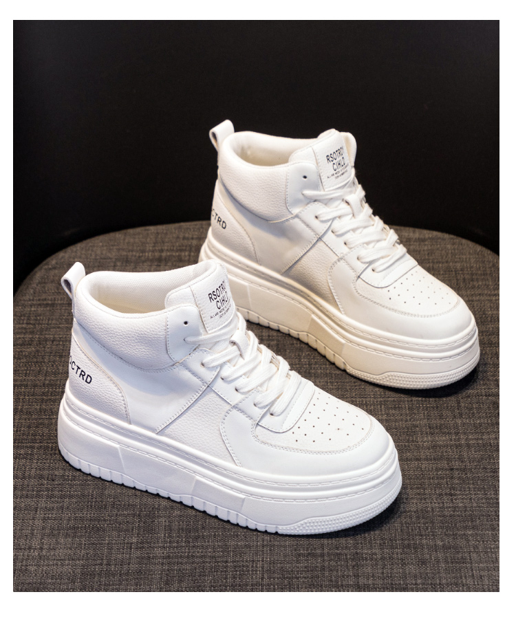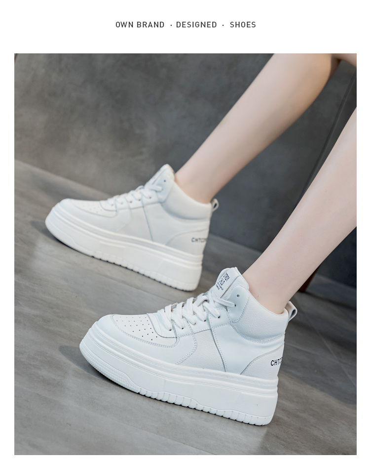 Hong Kong Genuine Leather High-Top White Sneakers for Women 2025 Winter Fleece-Lined Cotton Shoes for Petite Individuals, Thick-Soled Height-Increasing Sports Casual Sneakers