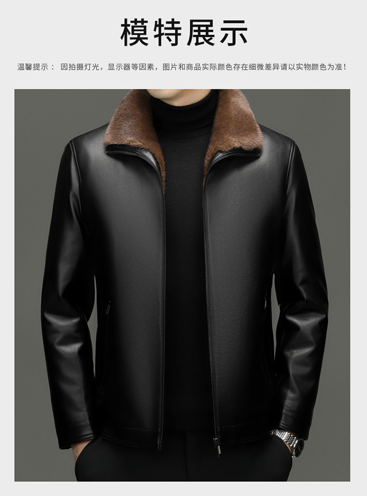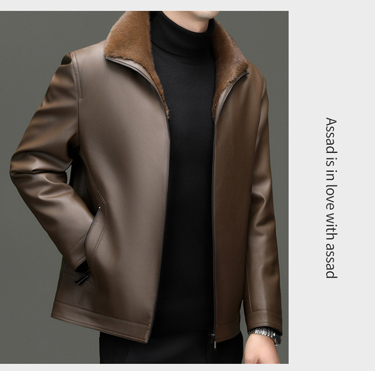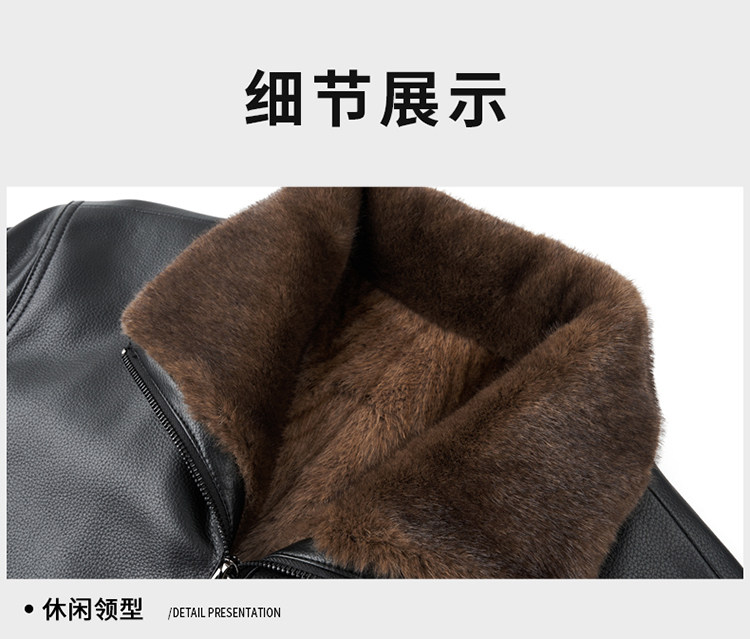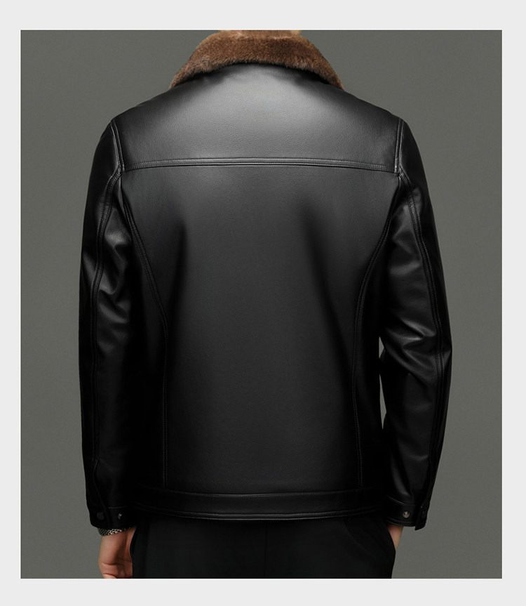 Hengyuanxiang Men's Genuine Sheepskin Leather Jacket, Haining Fur Integrated Winter Fleece-Lined Thickened Warm Coat