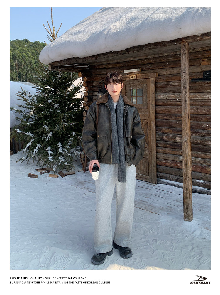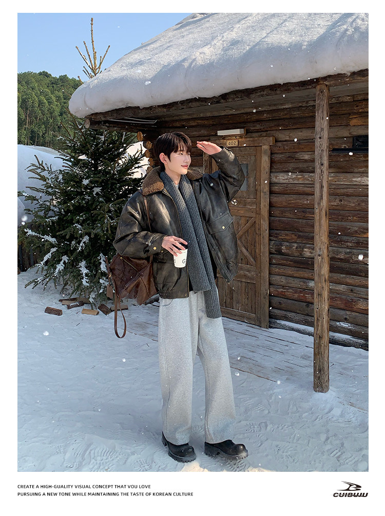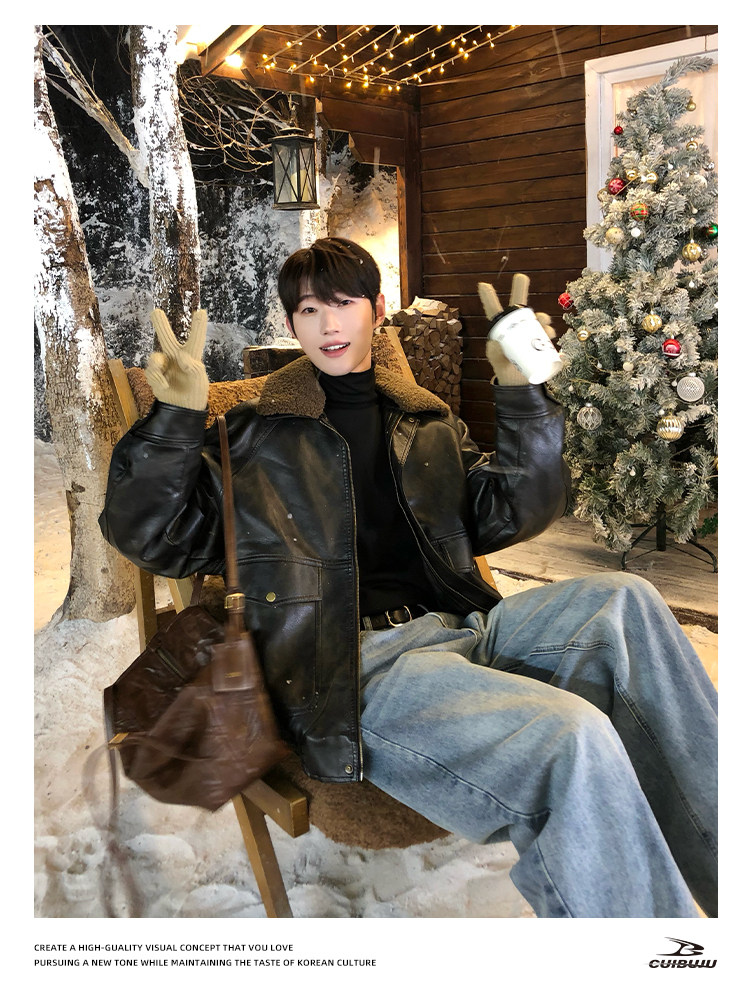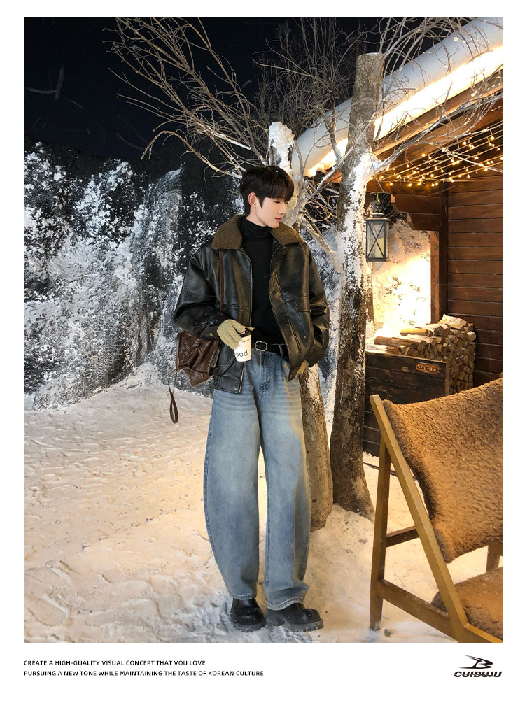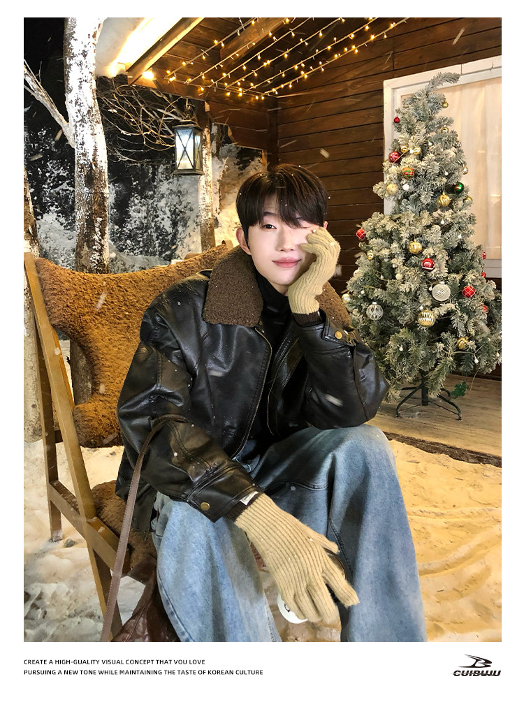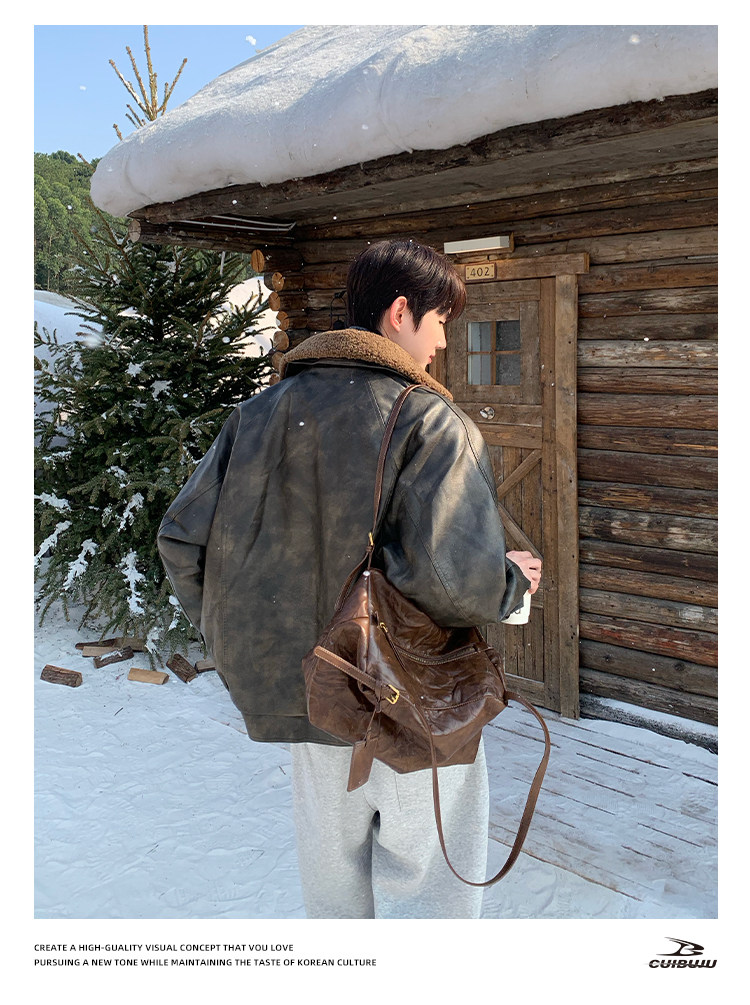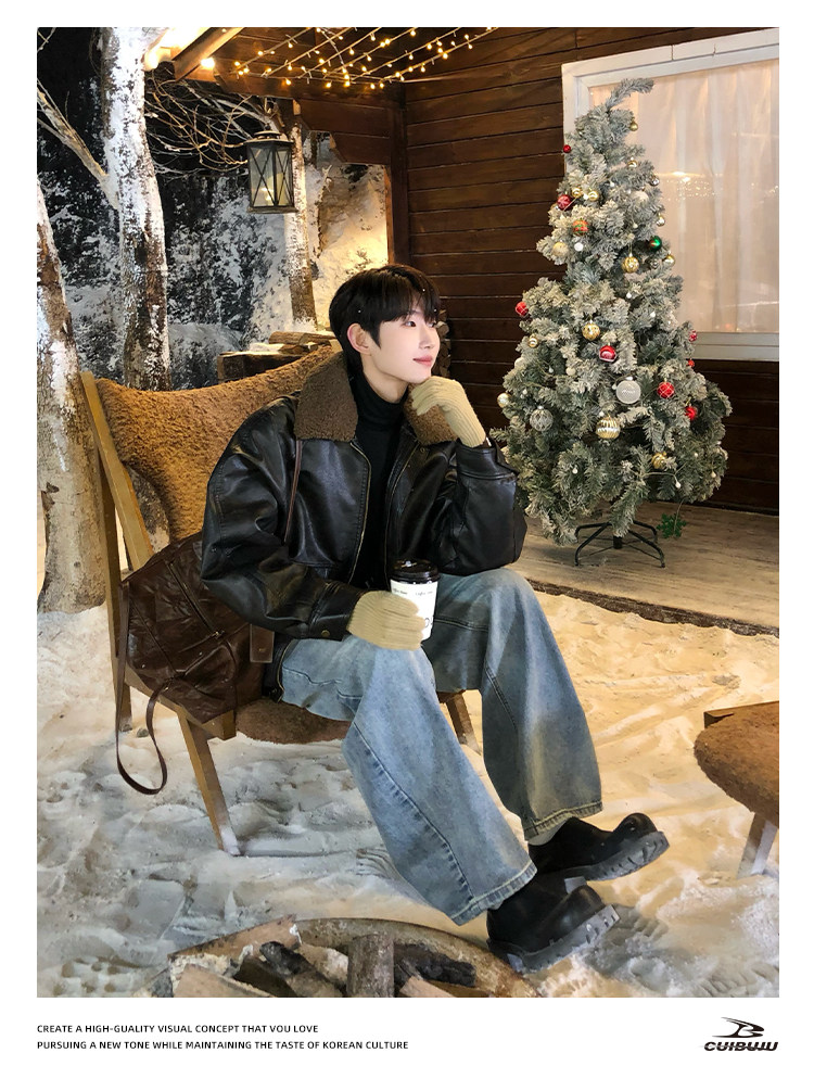 Cuibuju Retro Old Money Style Lamb Wool Lapel Patchwork Fleece-Lined Leather Jacket High-End Fashion Coat