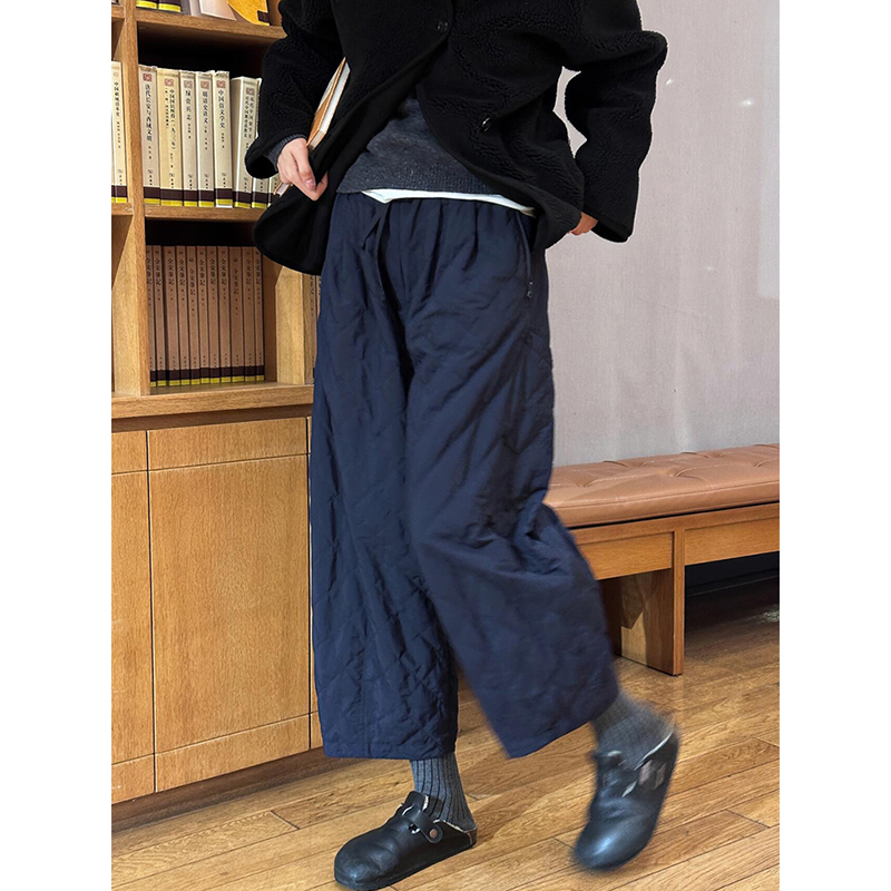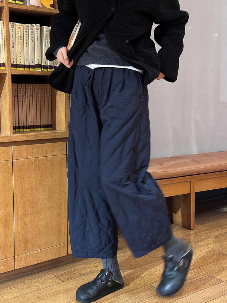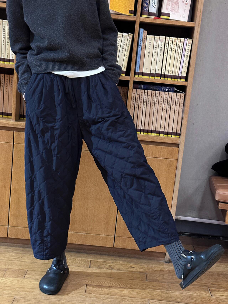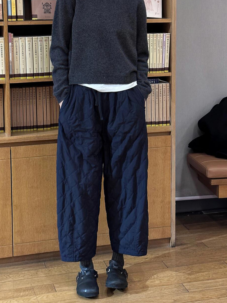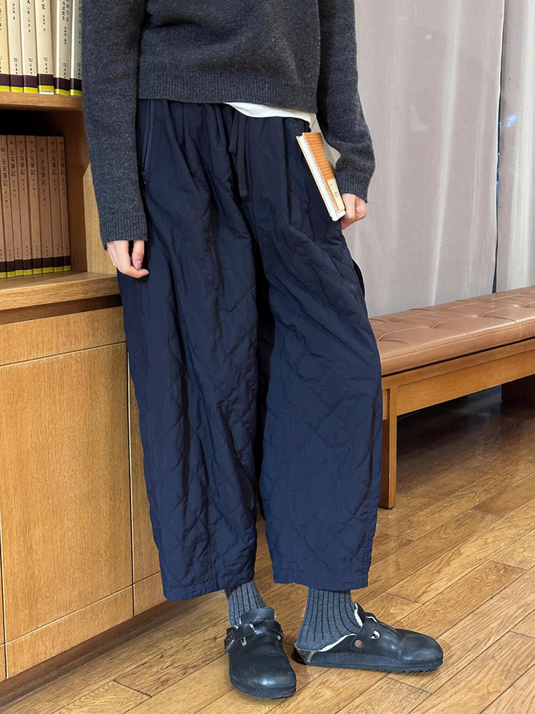 2025 European Hot-Selling Relaxed Fit Diamond-Patterned Quilted Cotton Pants, Autumn Simple Versatile Elastic Waist Cropped Straight-Leg Pants