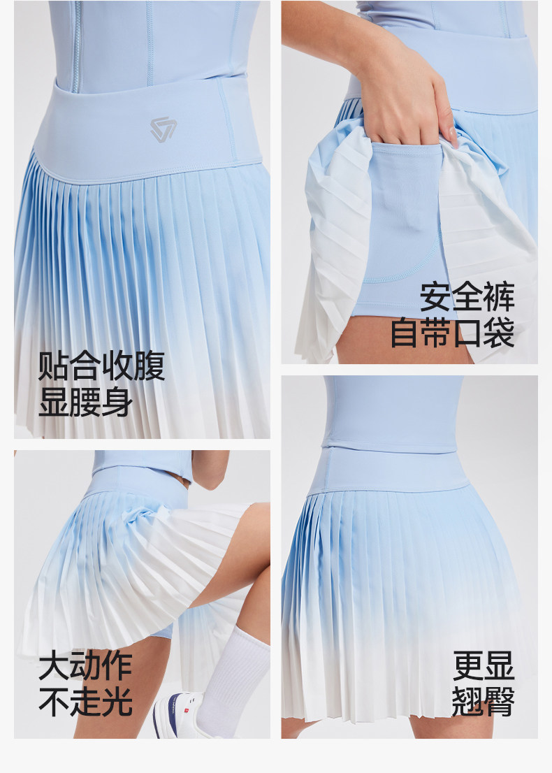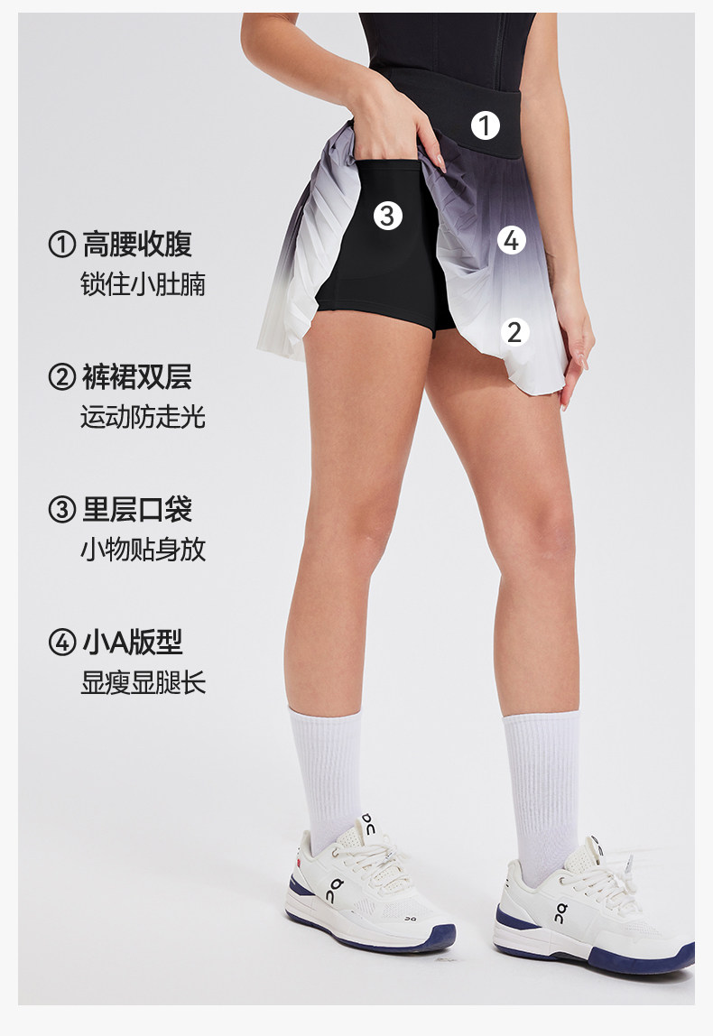 Sports Short Skirt for Women, High-Waisted, Anti-Exposure, Pleated, Quick-Drying, Running, Sun Protection, Tennis, Badminton, Fitness, A-Line Skirt