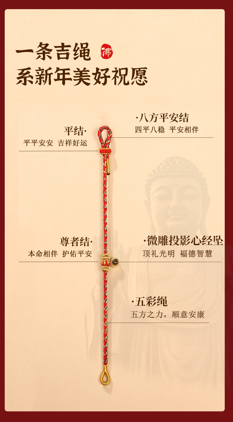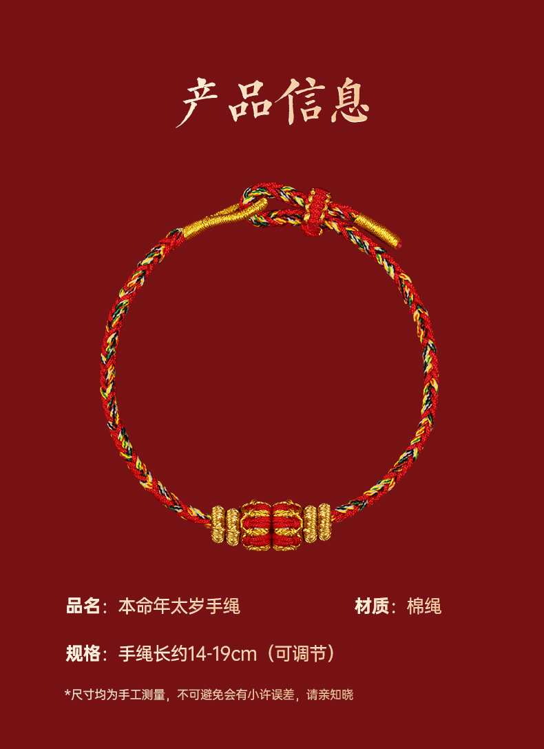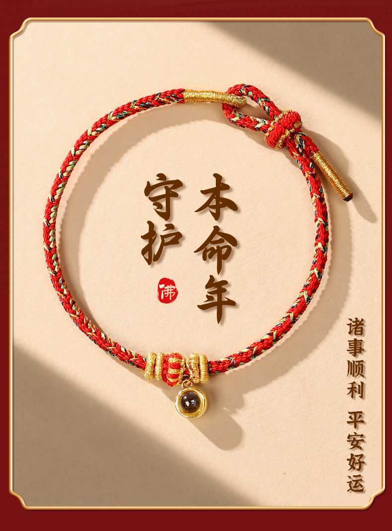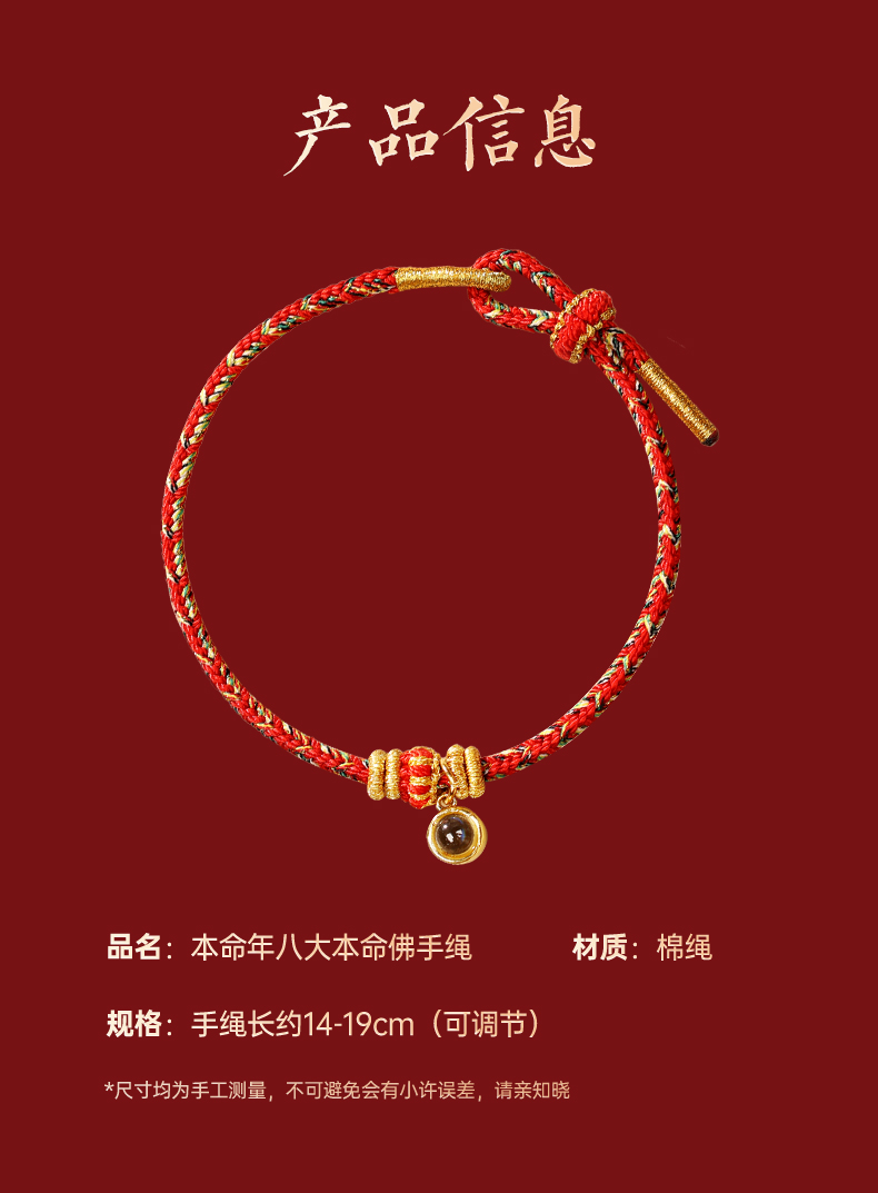 [Putuo Mountain Official] 2026 Year of the Horse Zodiac Year Red String Bracelet for Women Handmade Weaving Tai Sui Bracelet Gift