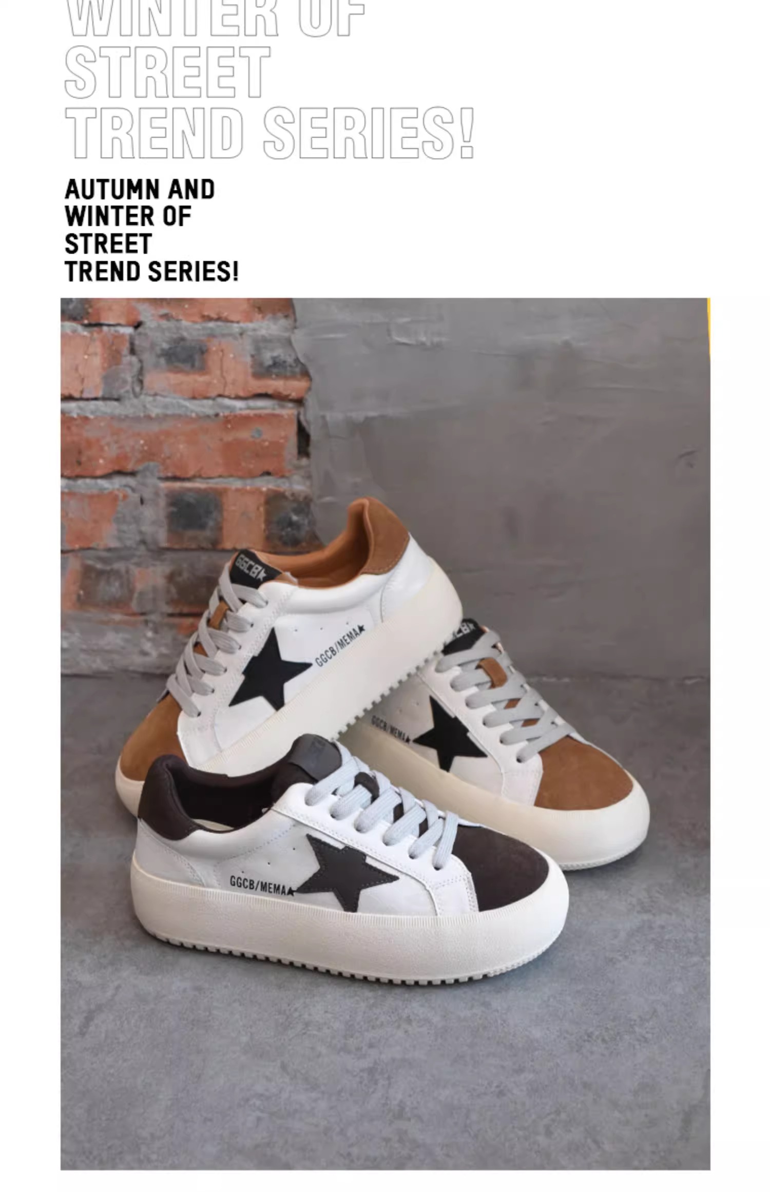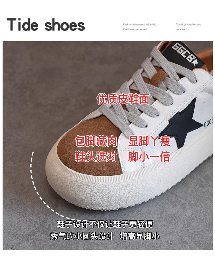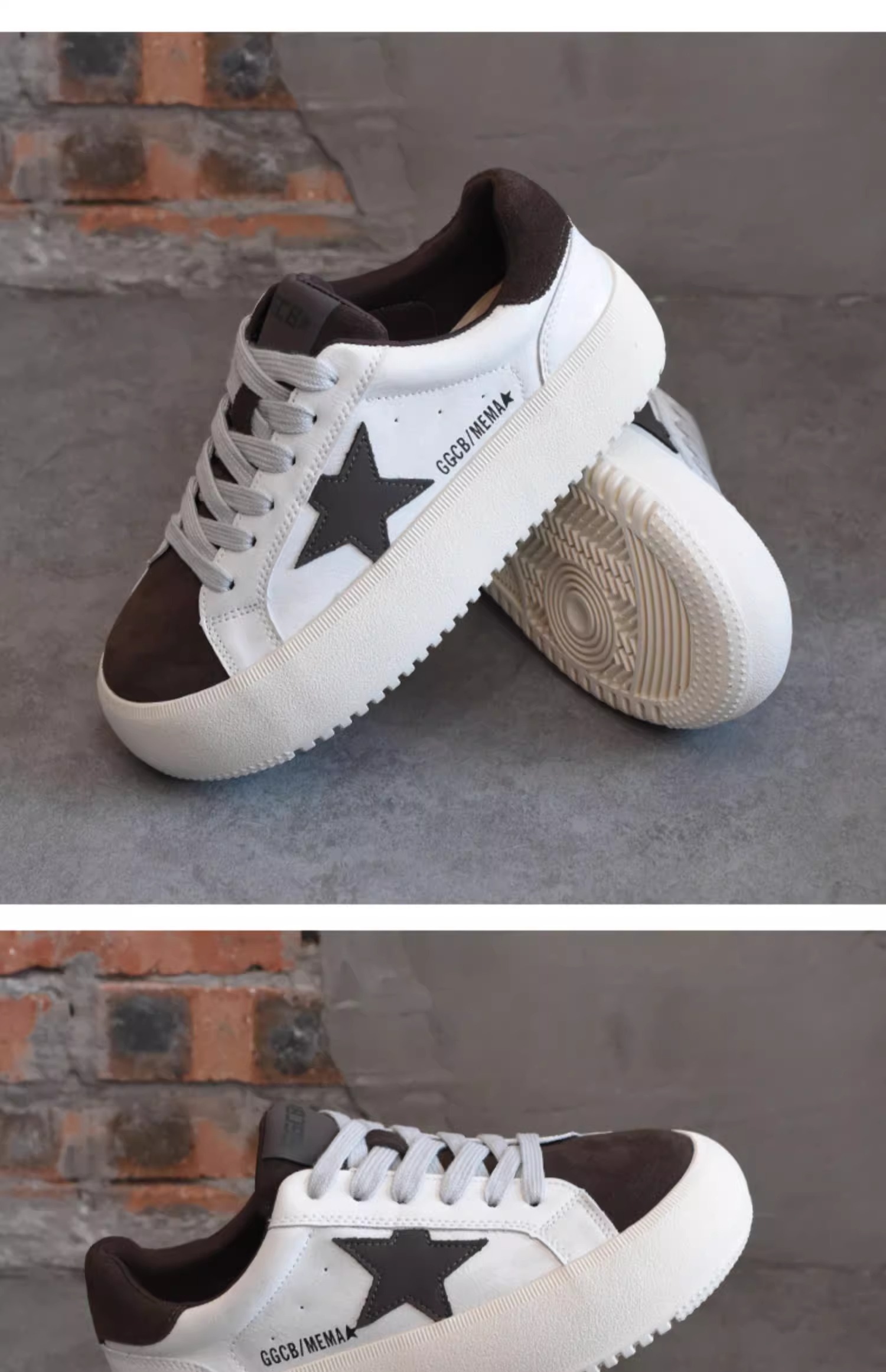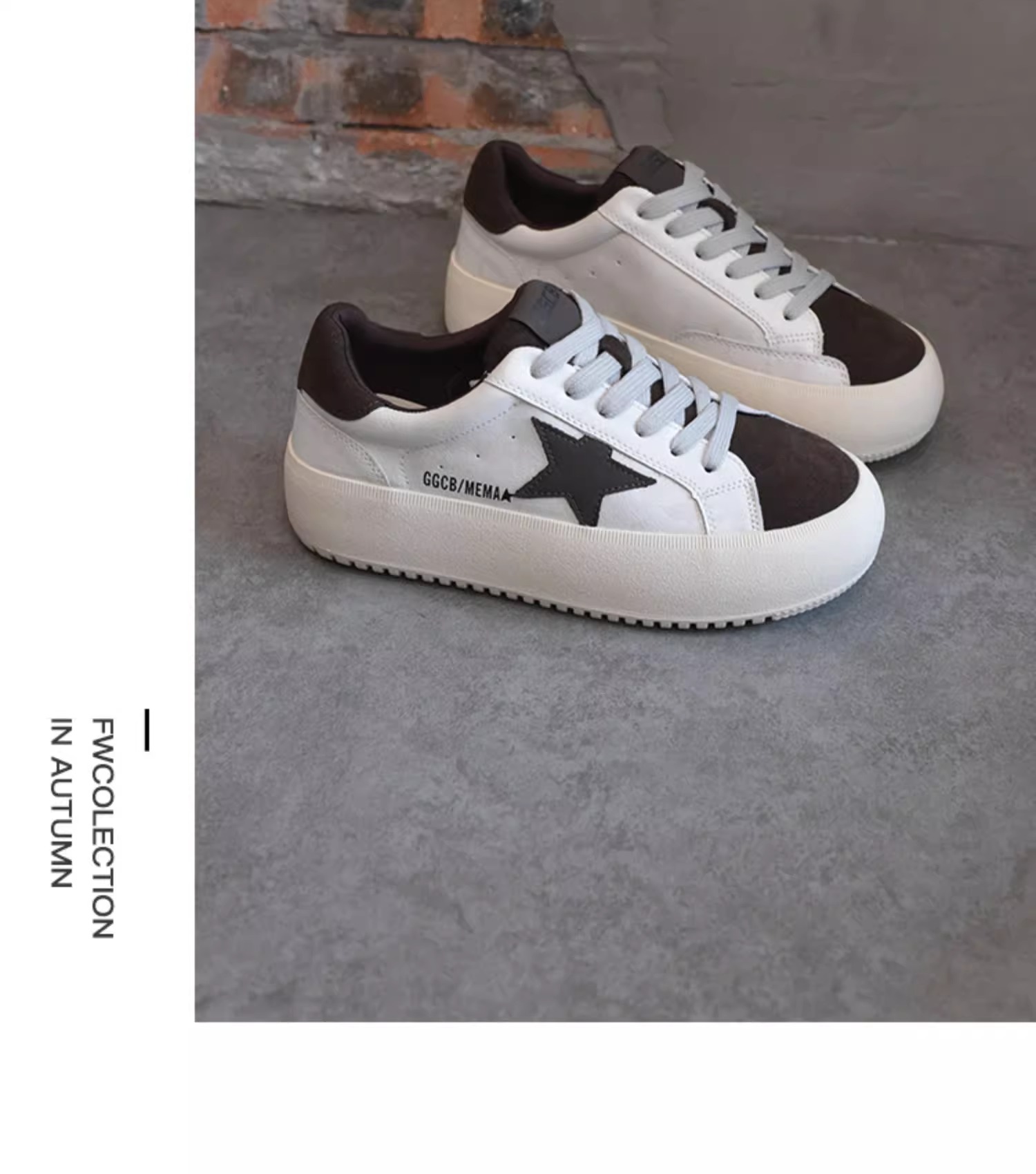 Hong Kong Low-Top Star Sneakers for Women 2025 Spring New Lace-Up Thick-Soled Genuine Leather Versatile Fashion Sports Casual Shoes