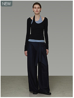 Unspoken Black Lace-Up Pleated Wide-Leg Pants for Women, Spring 2026 New Style, Loose, High-End, Slimming Long Pants