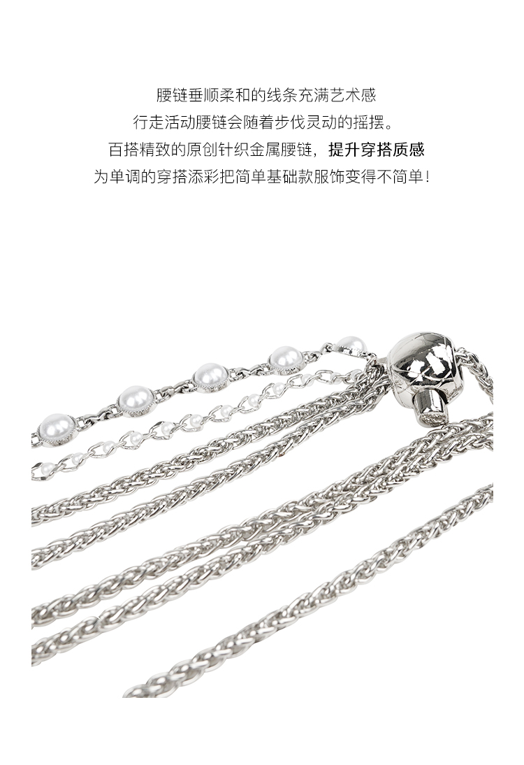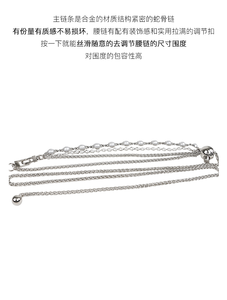 Venuie Fashionable Silver Pearl Alloy Metal Waist Chain, Exquisite and Versatile Design, Snake Bone Chain Waist Belt