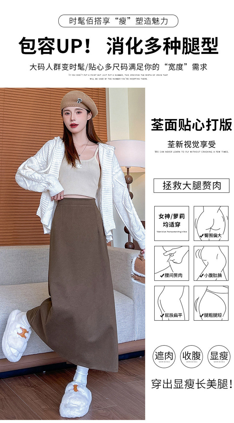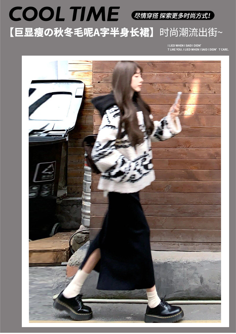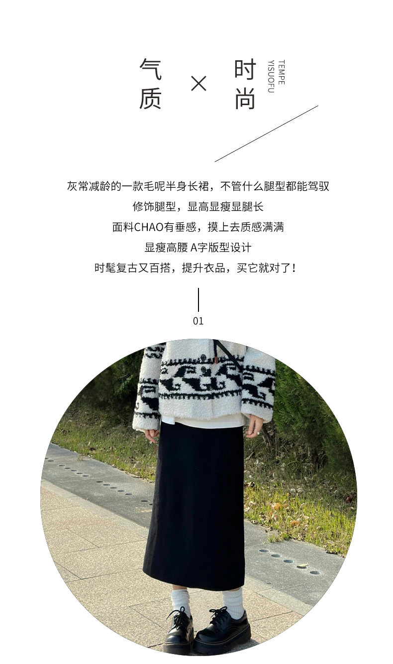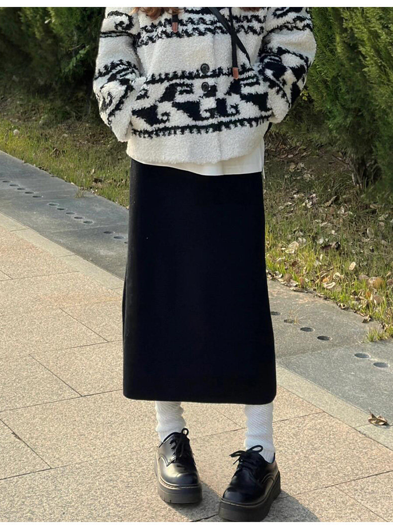 Black Woolen Mid-Length Skirt for Women, Autumn and Winter 2025 New Thickened Retro Slit Pencil Skirt, Slimming A-Line Skirt