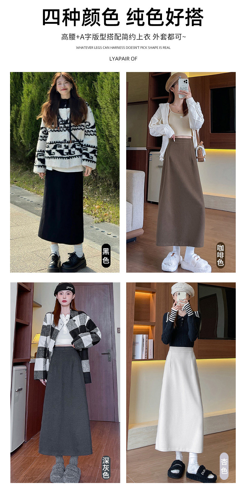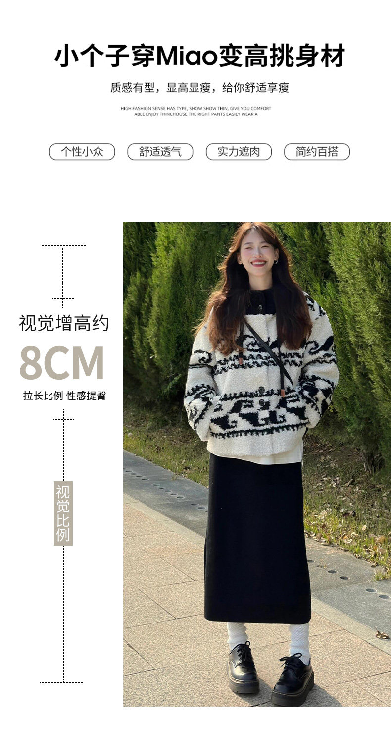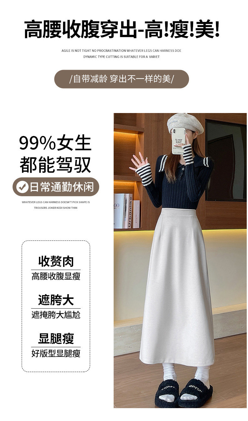 Black Woolen Mid-Length Skirt for Women, Autumn and Winter 2025 New Thickened Retro Slit Pencil Skirt, Slimming A-Line Skirt