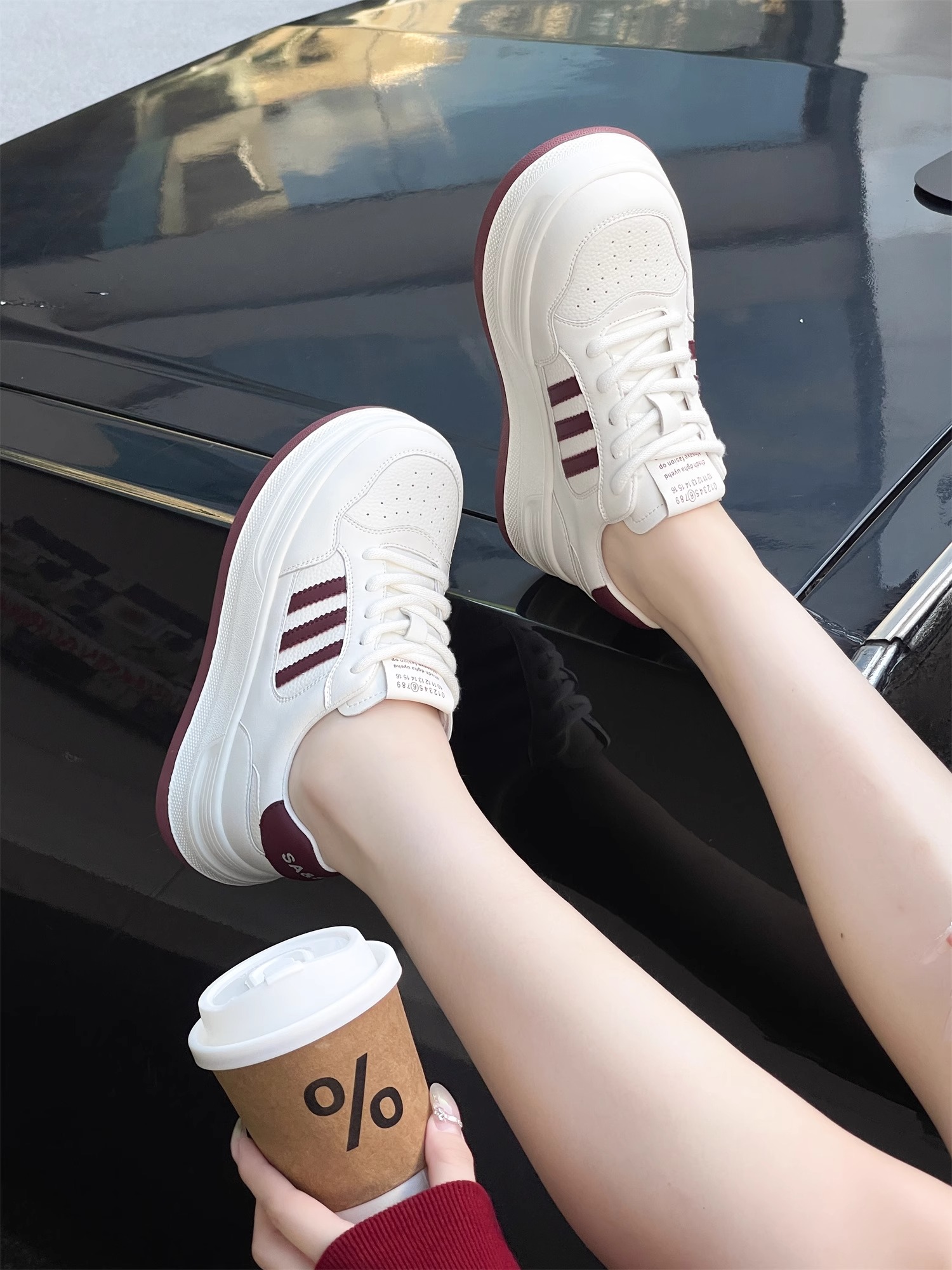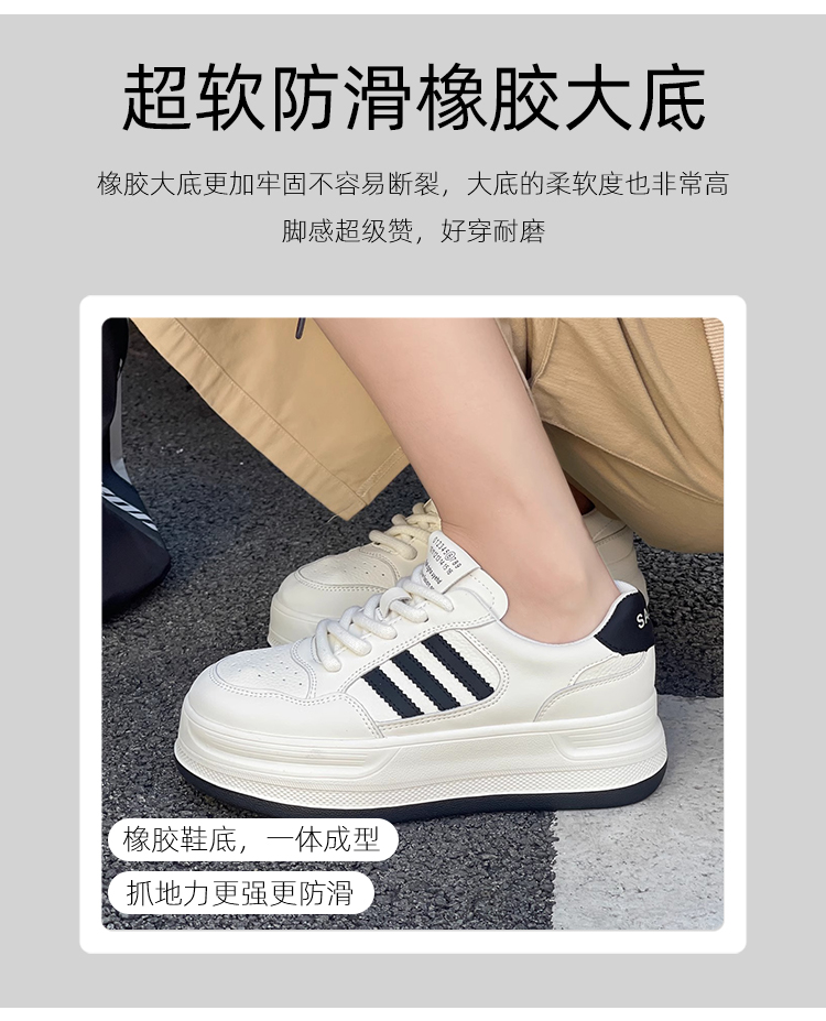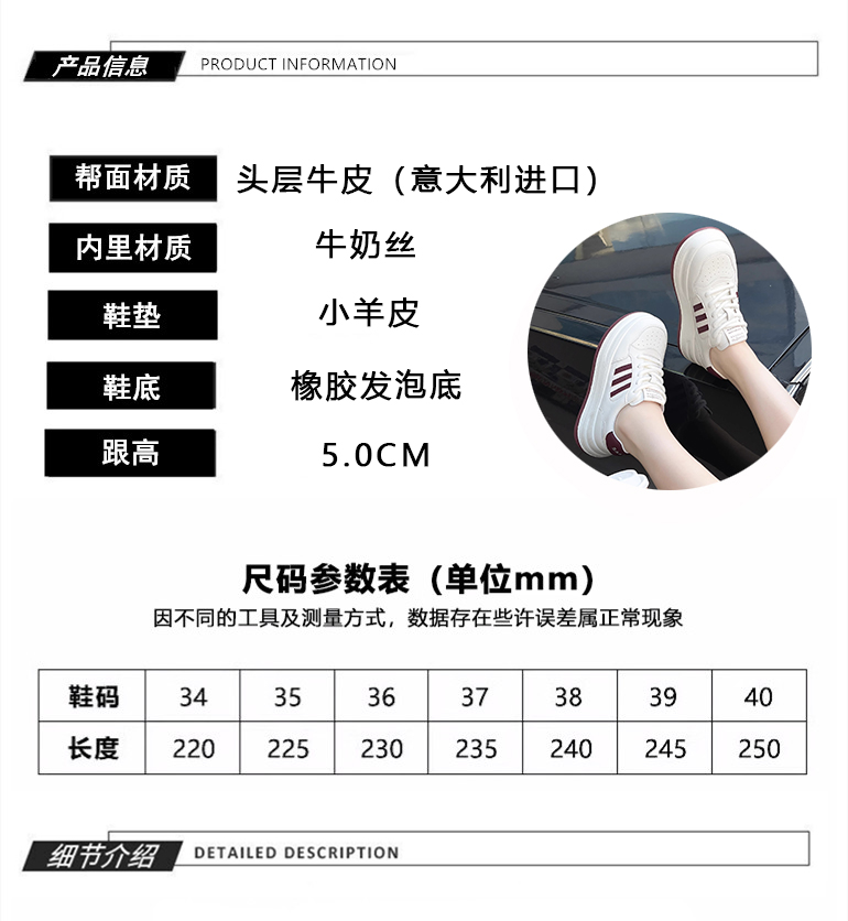 Hong Kong Genuine Leather Platform Sole White Shoes for Women 2025 Spring & Fall Thick Sole Heightening Sneakers Fashionable Casual Sneakers K-Style