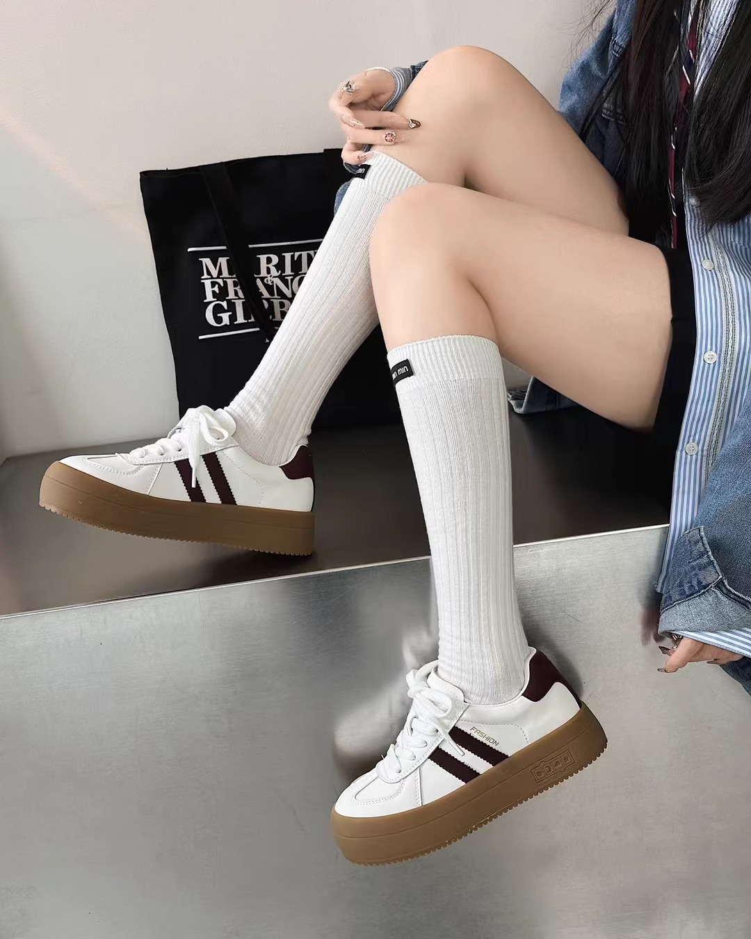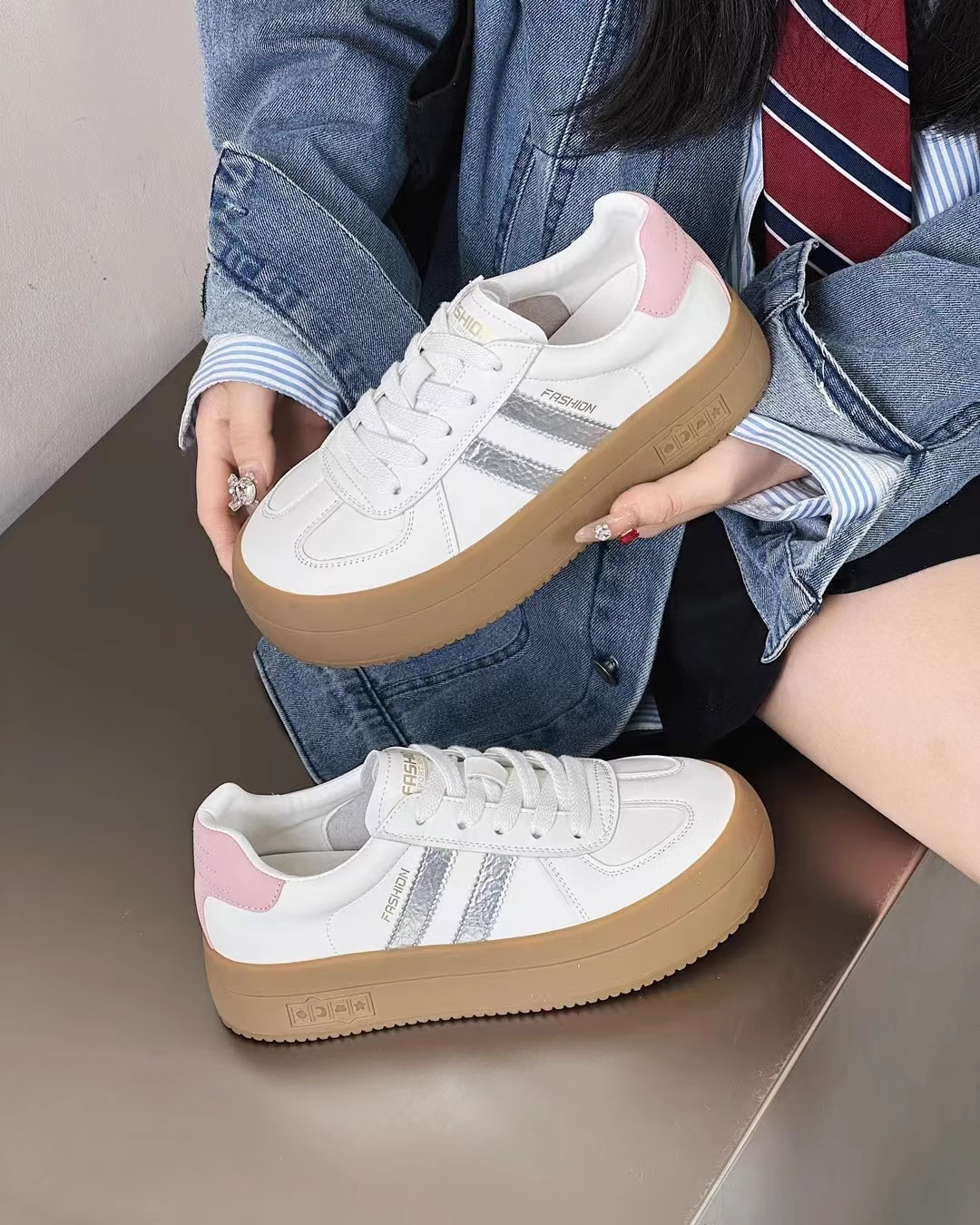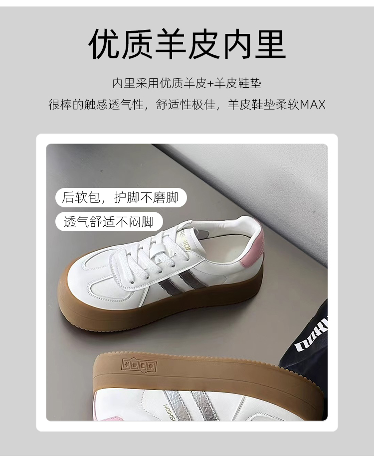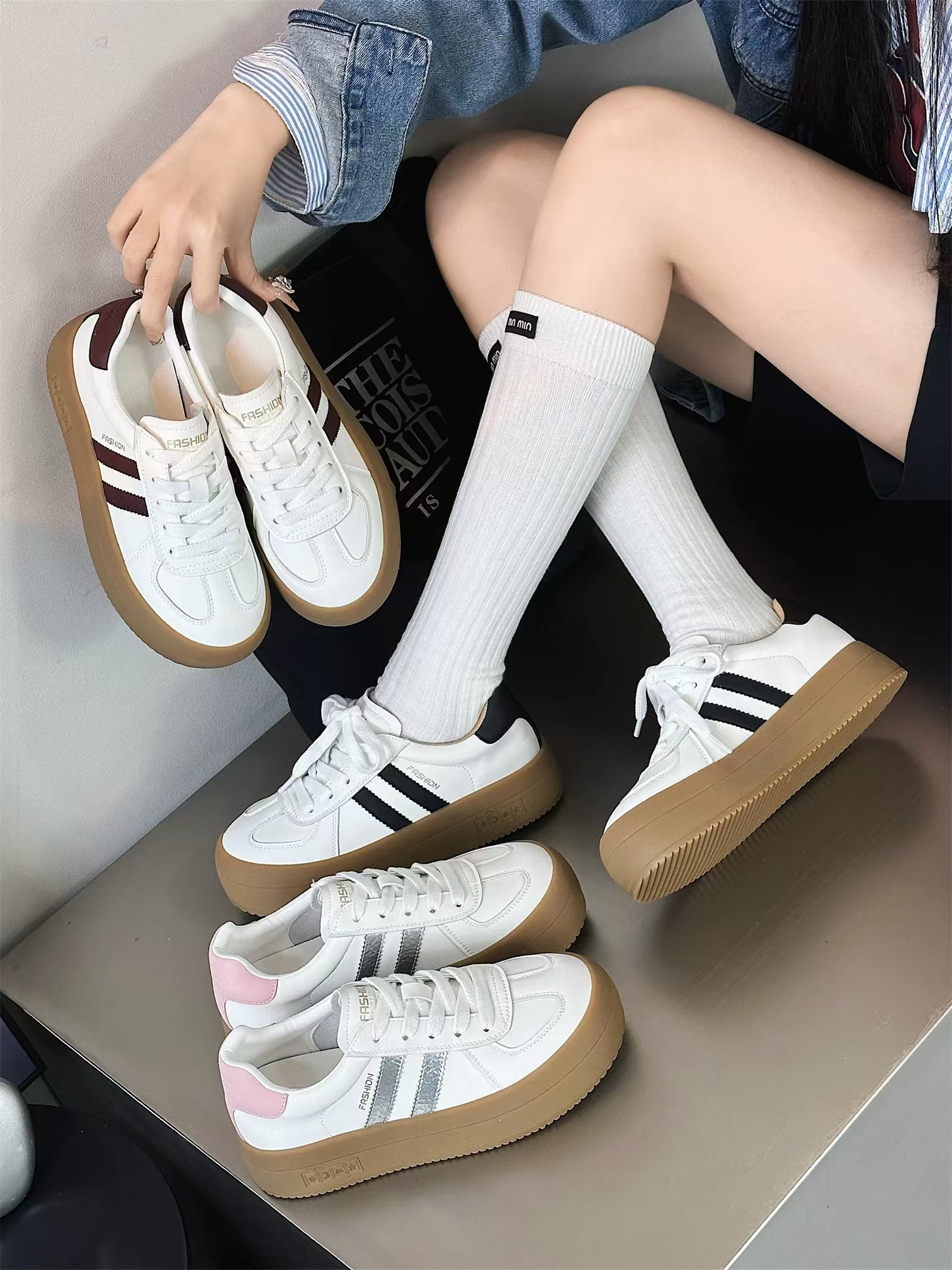 Hong Kong Genuine Leather Foot Shoes Women's 2025 Spring & Fall K-style Easiest for match White Shoes Thick Sole Casual Shoes