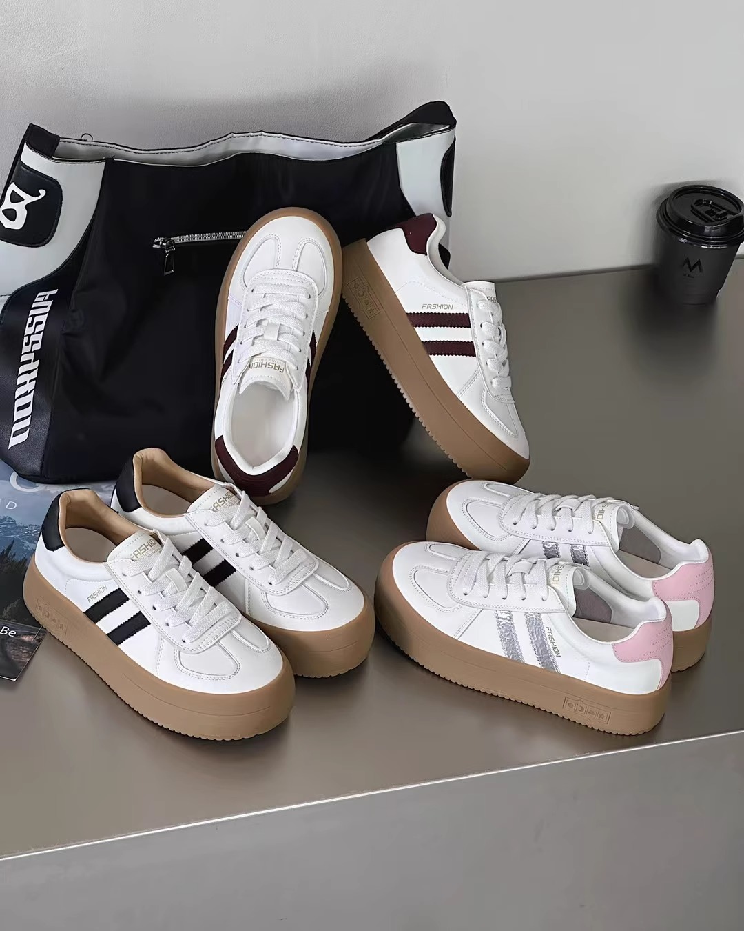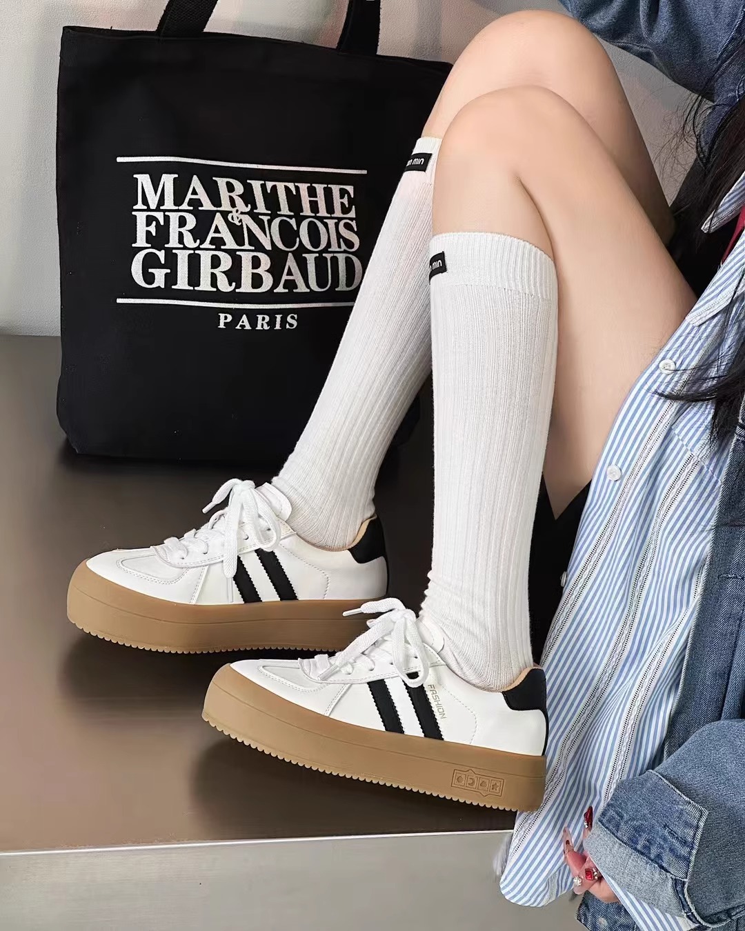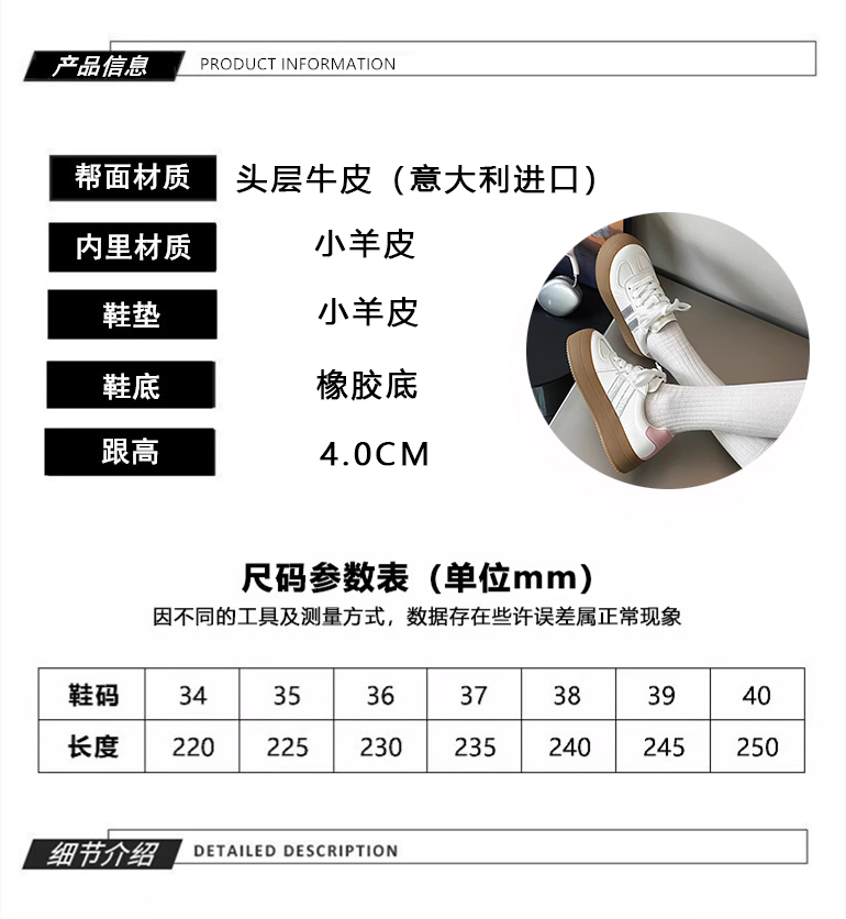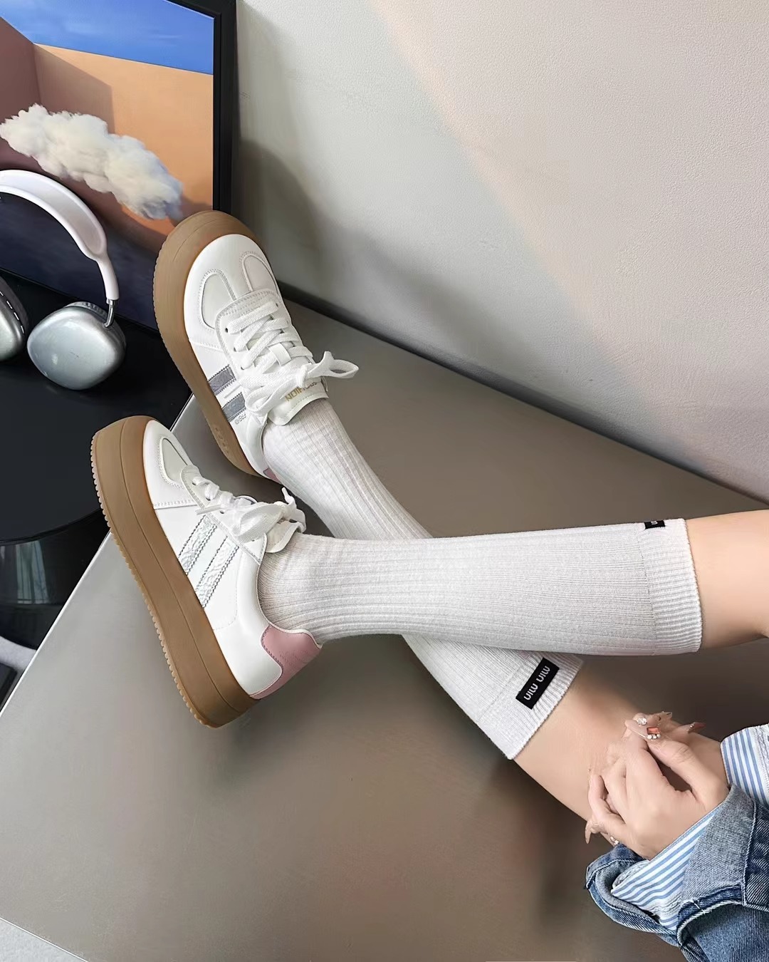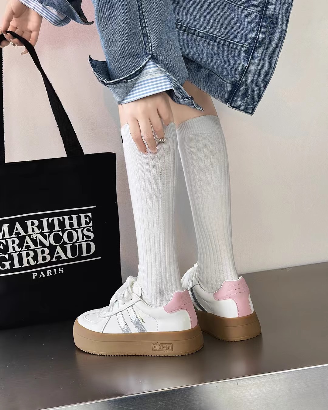 Hong Kong Genuine Leather Foot Shoes Women's 2025 Spring & Fall K-style Easiest for match White Shoes Thick Sole Casual Shoes