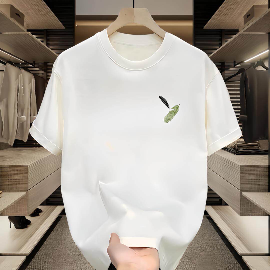 Hong Kong Clg Trendy Brand Simple Short-Sleeved T-Shirt for Men, Summer Thin Loose Casual Printed Half-Sleeve Heavyweight Pure Cotton T-Shirt