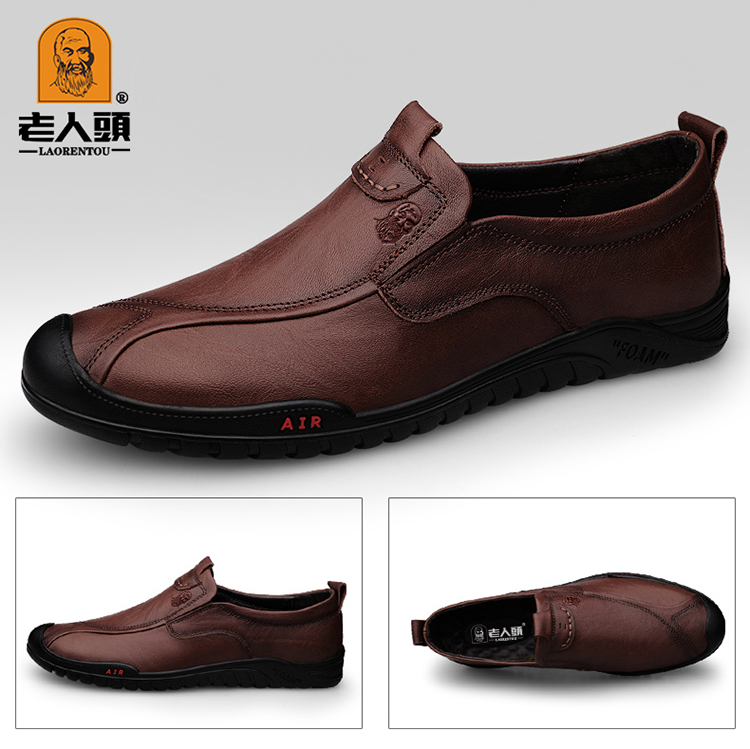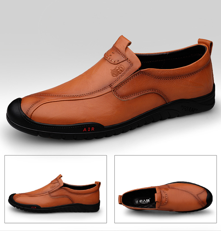 Elderly Men's Shoes, Spring and Autumn Genuine Leather Casual Shoes, Soft Leather, Soft Sole, Dad's Leather Shoes, Black Breathable Loafers, Driving Shoes