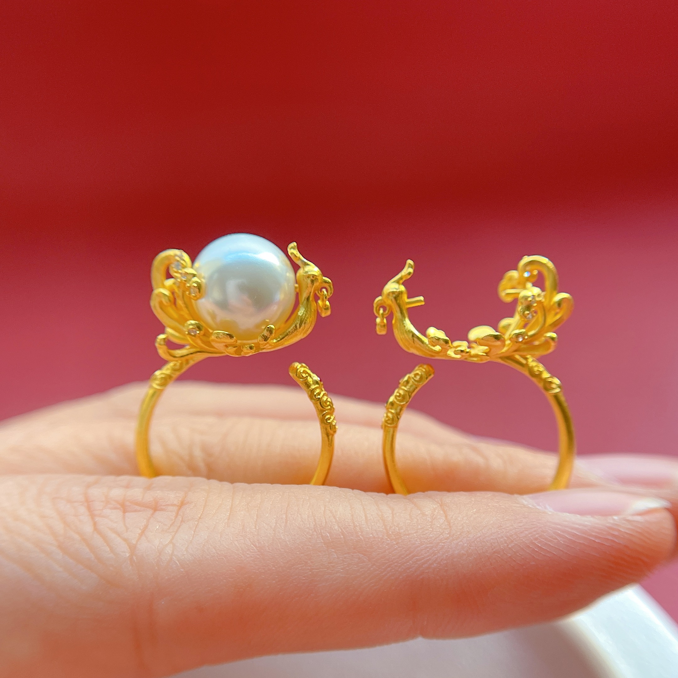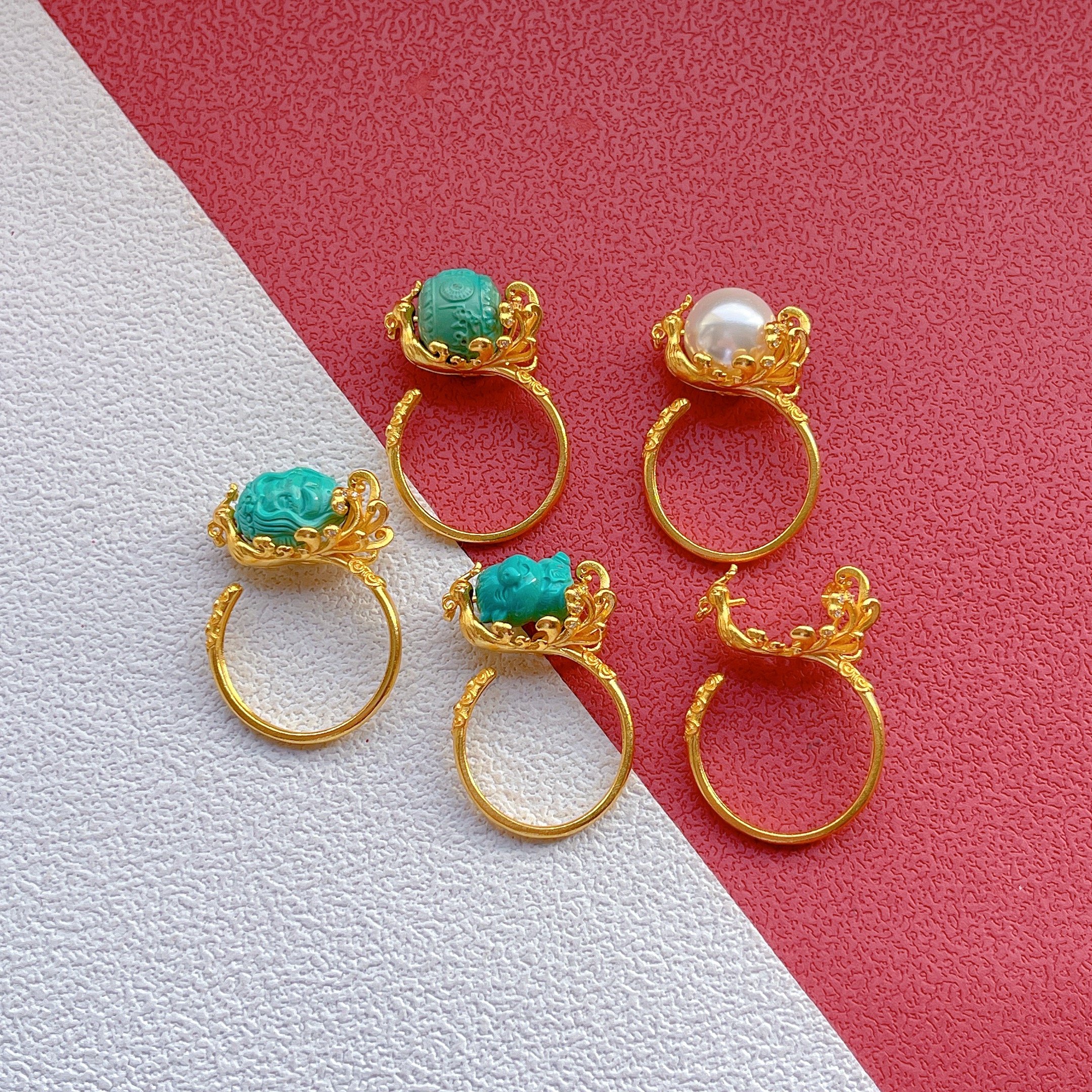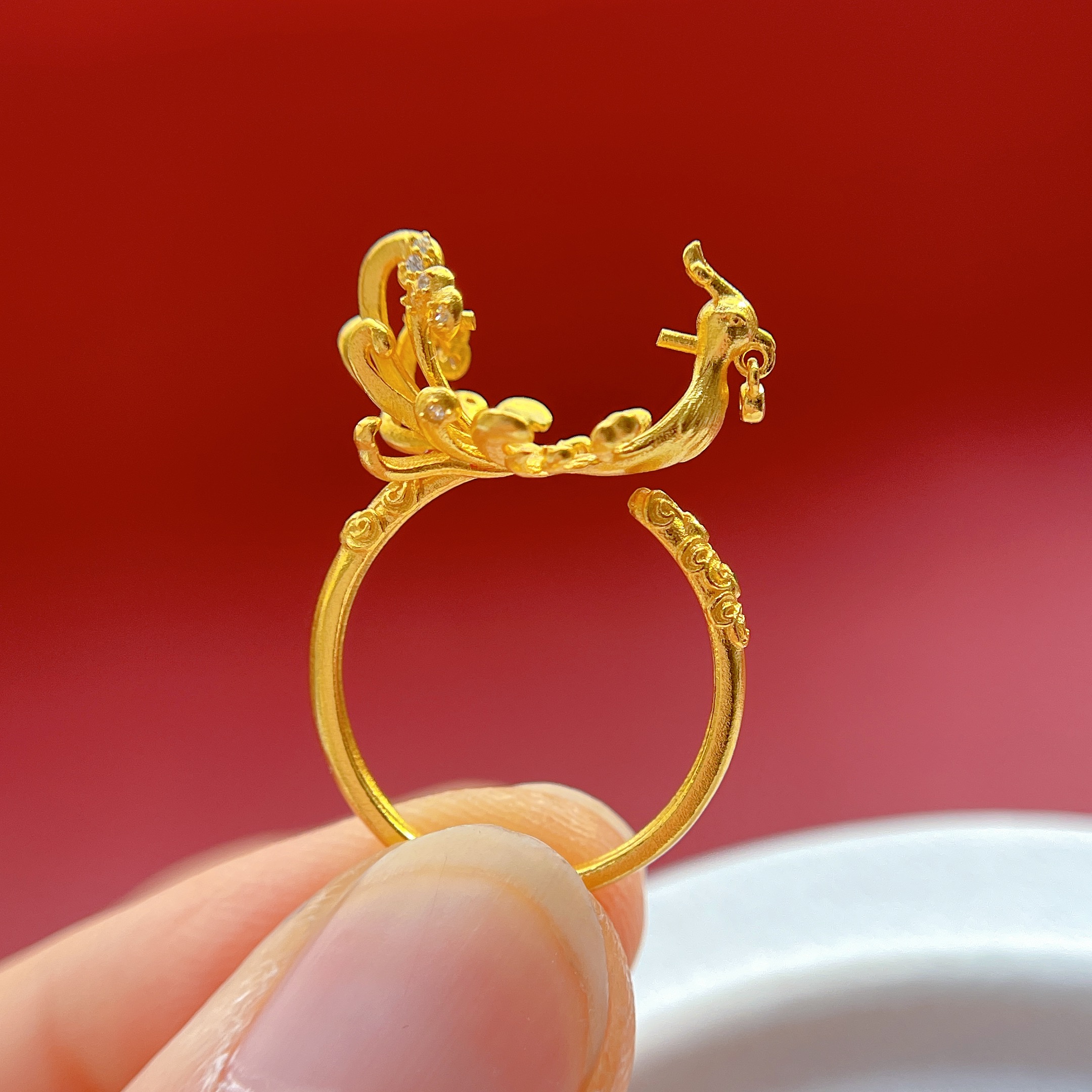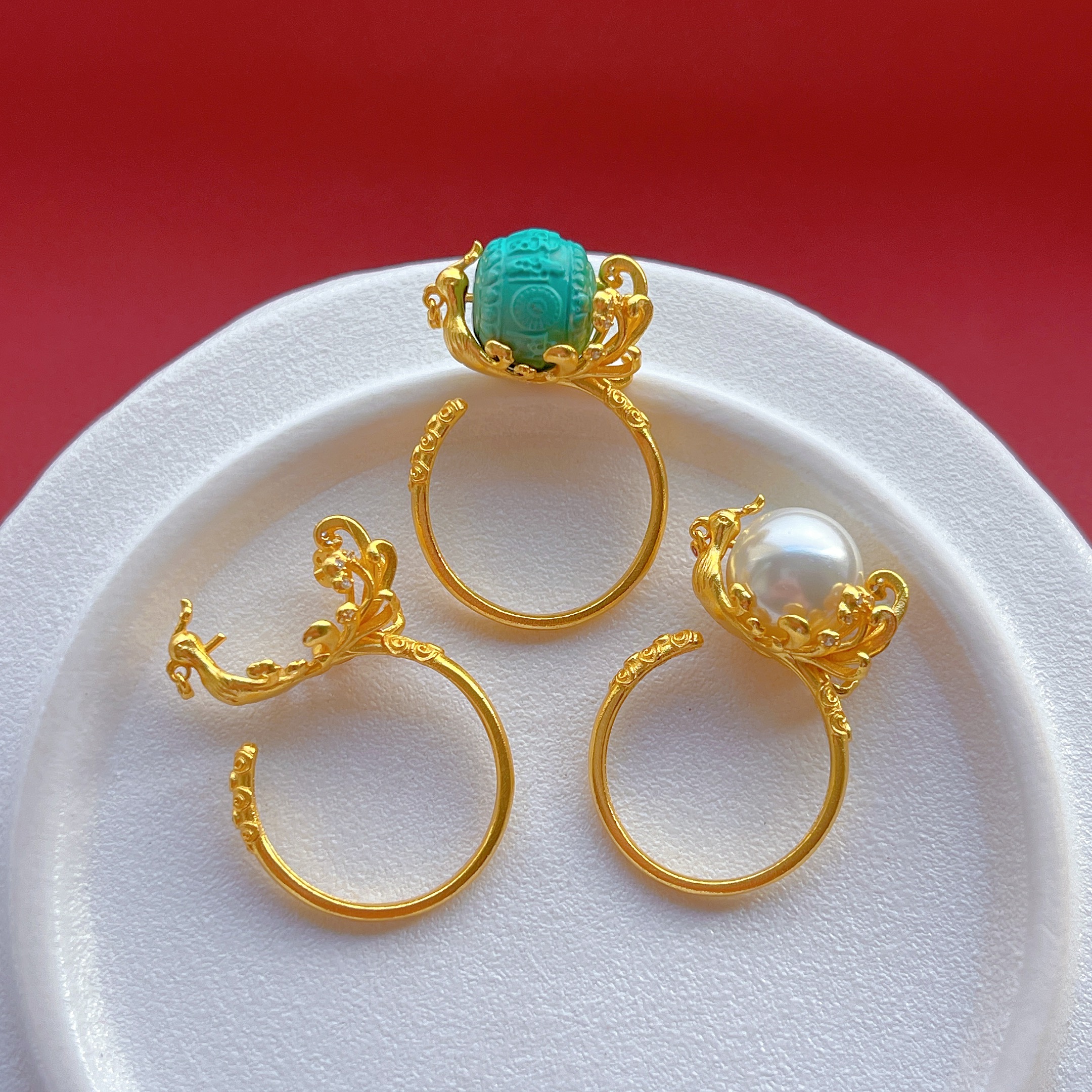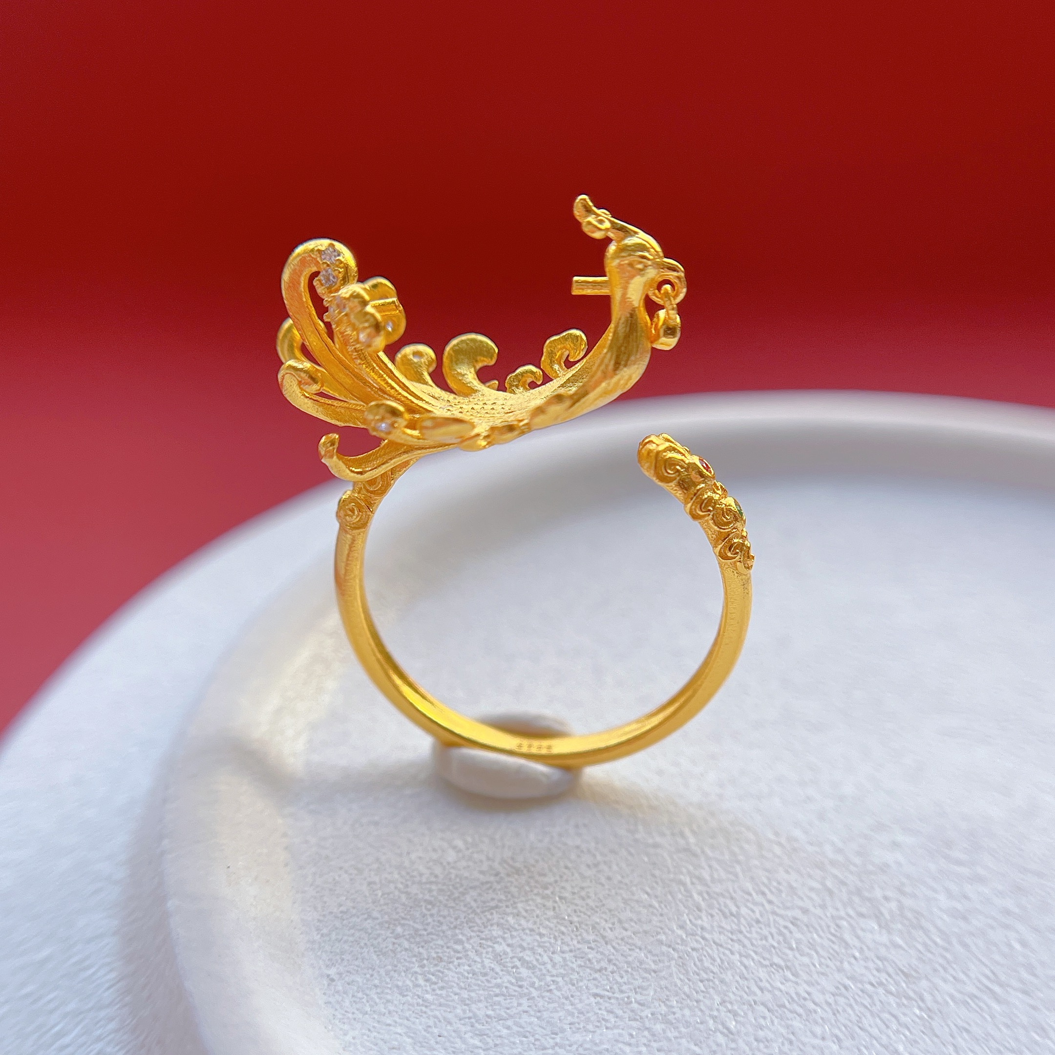 S925 Ancient Silver Gold-Plated Accessories with Engraved Phoenix Ring Setting for Women, Suitable for Pairing with Pearls, Turquoise, Southern Red Agate, and Various Other Beads