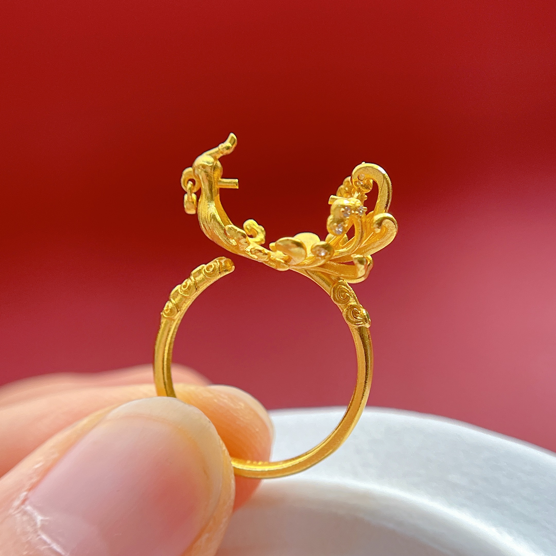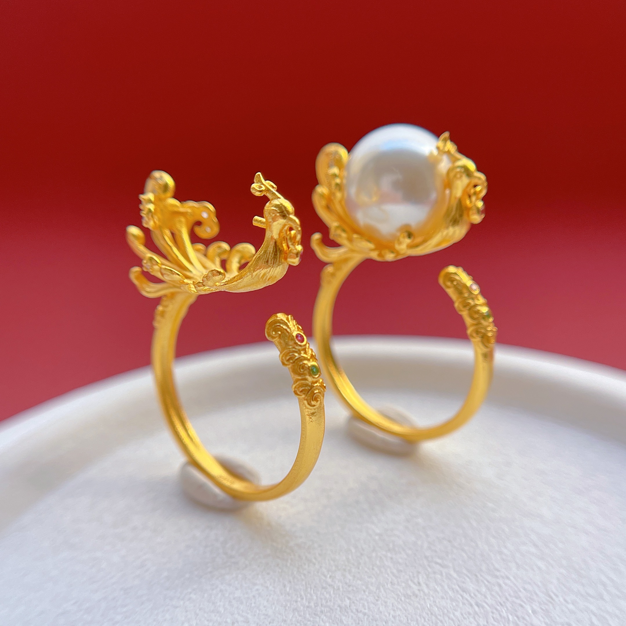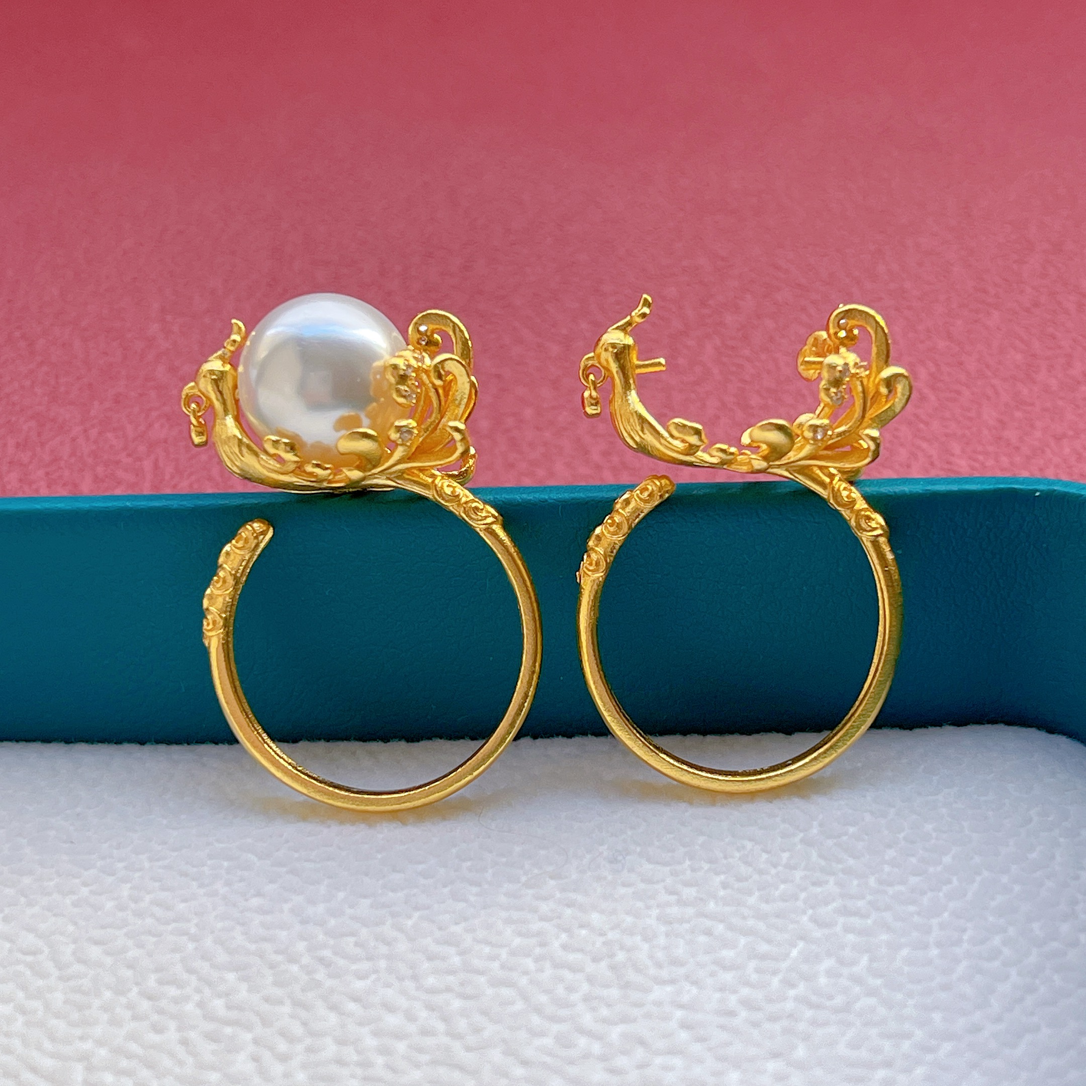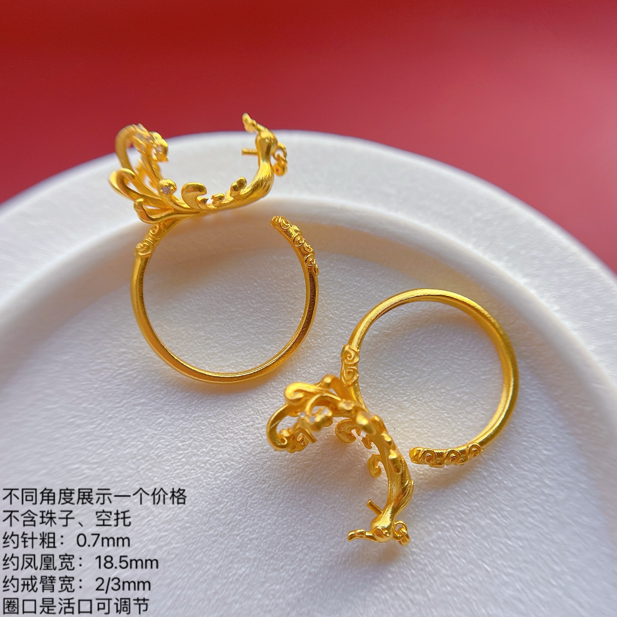 S925 Ancient Silver Gold-Plated Accessories with Engraved Phoenix Ring Setting for Women, Suitable for Pairing with Pearls, Turquoise, Southern Red Agate, and Various Other Beads