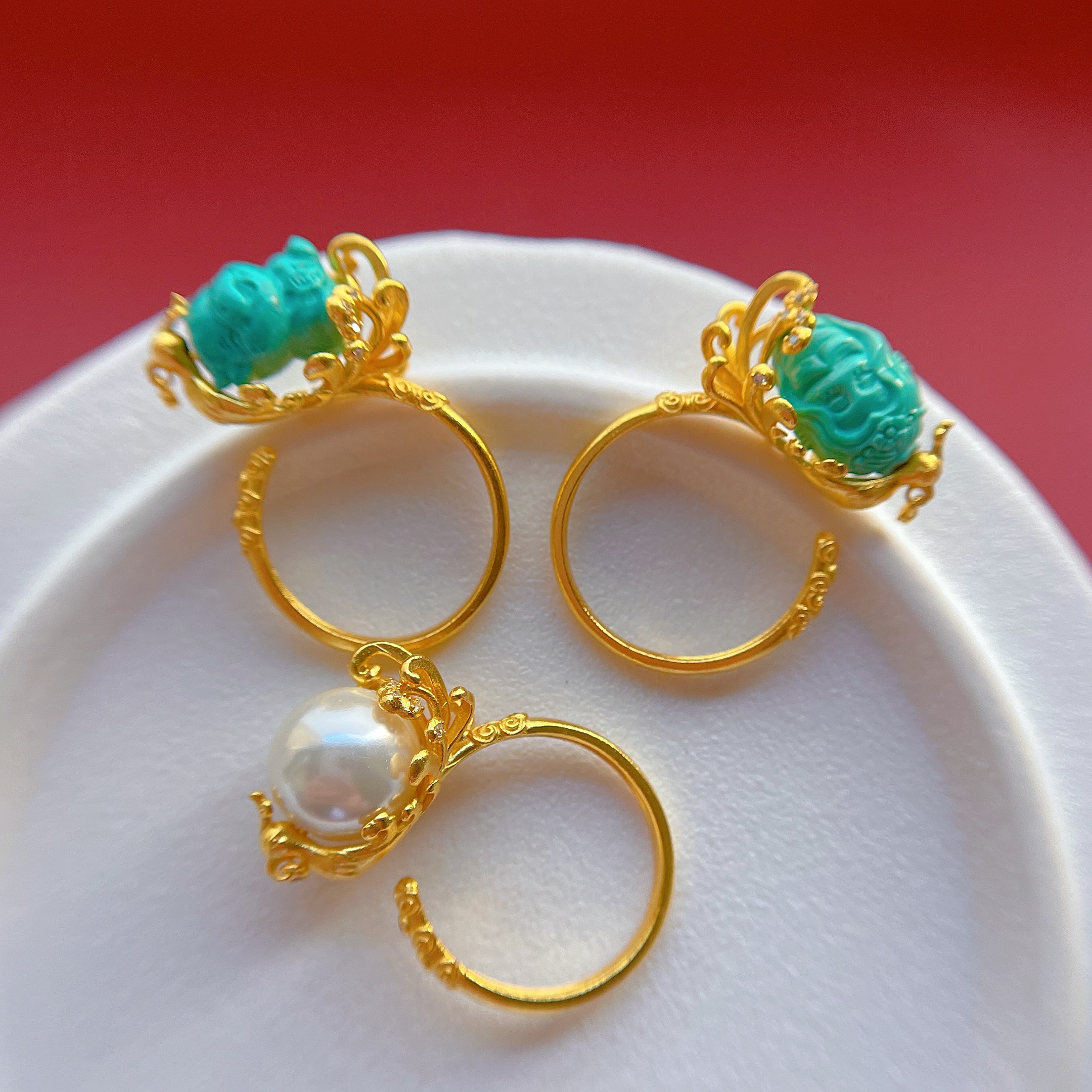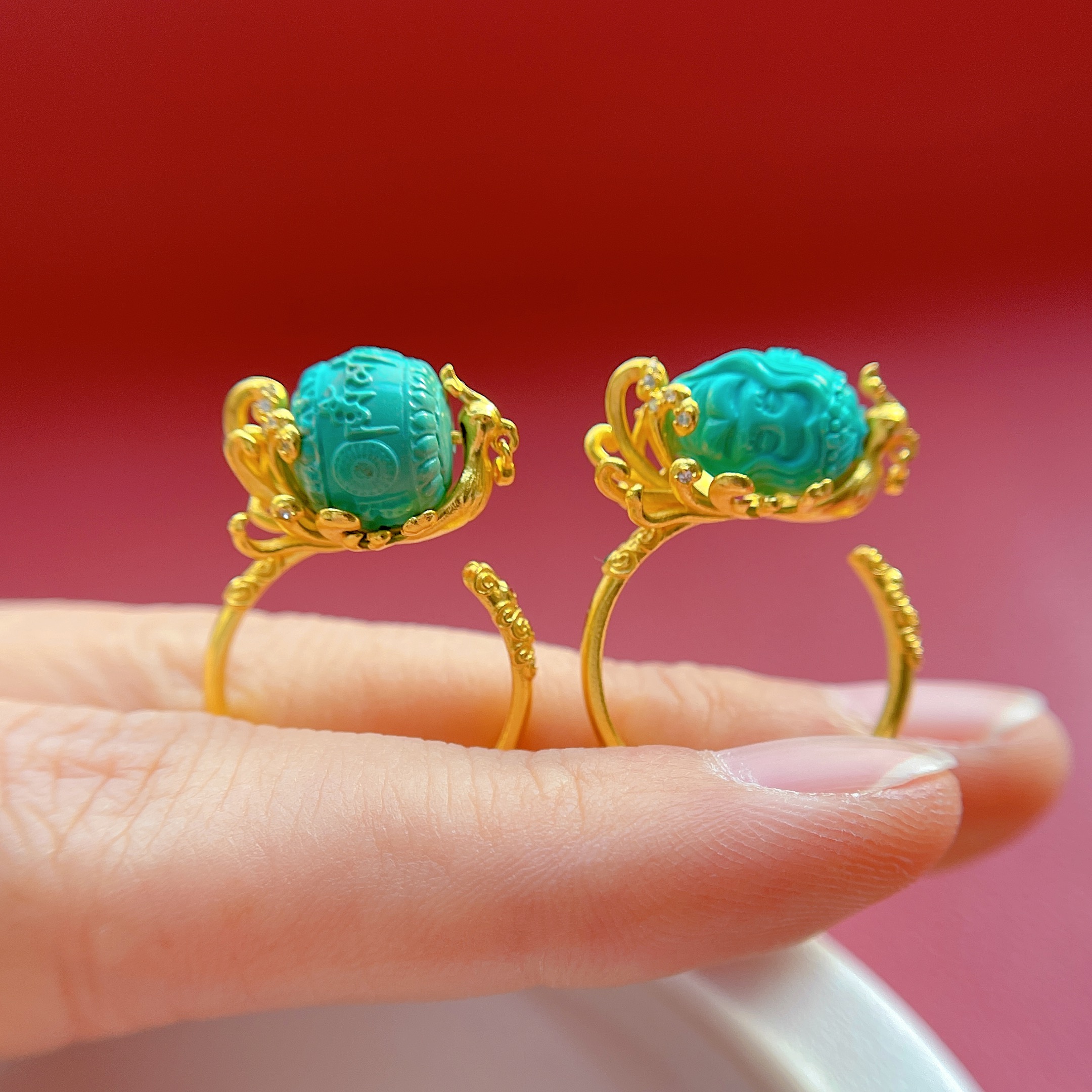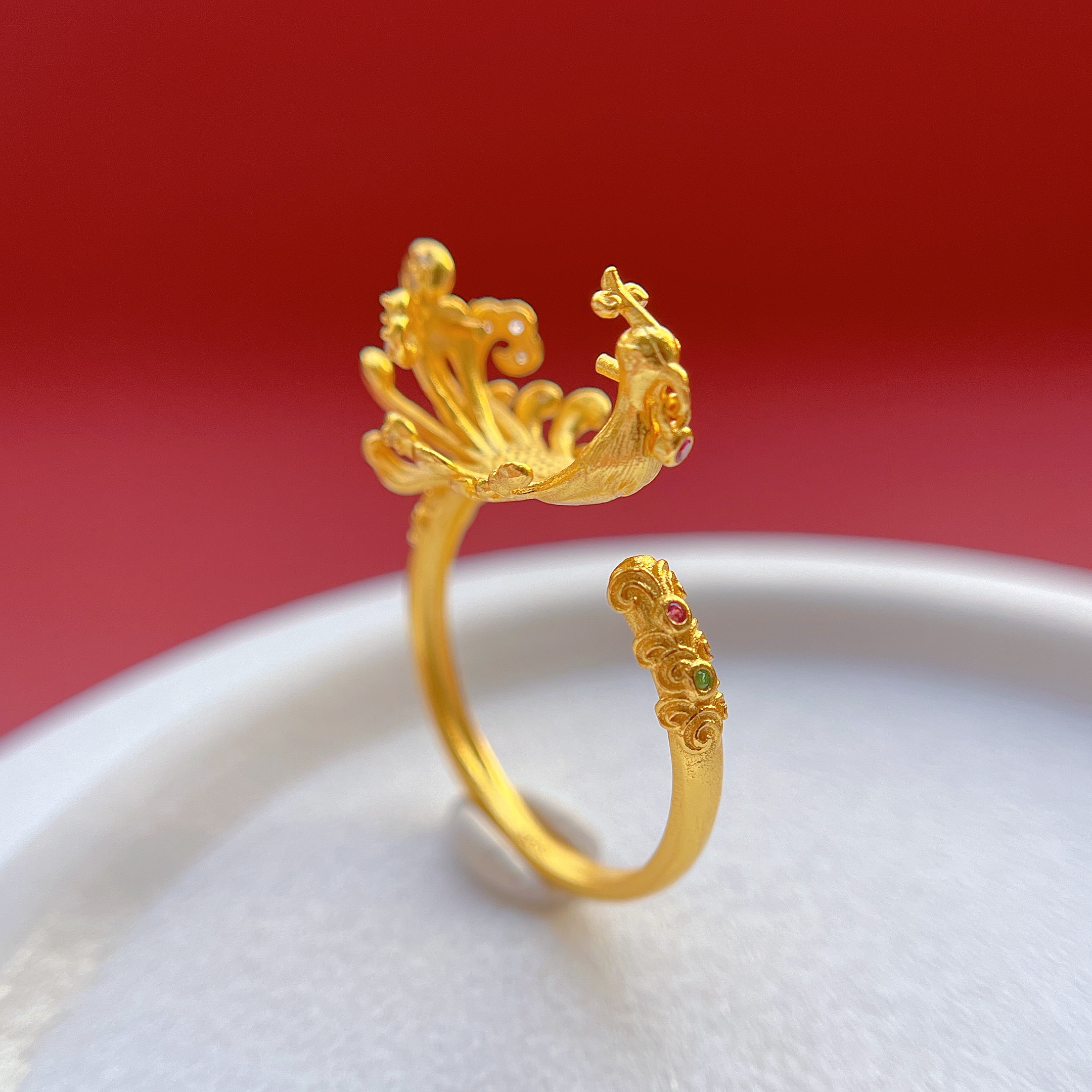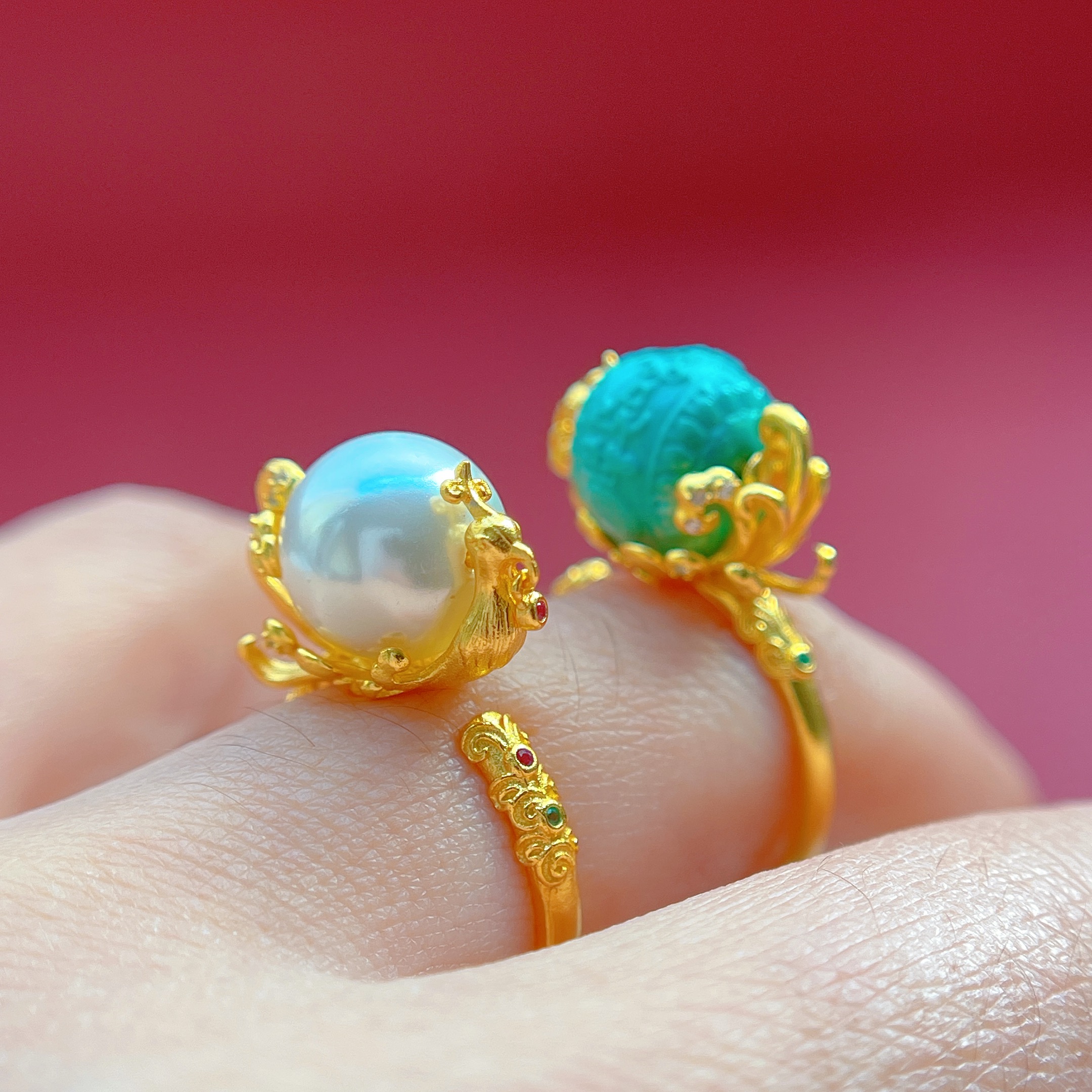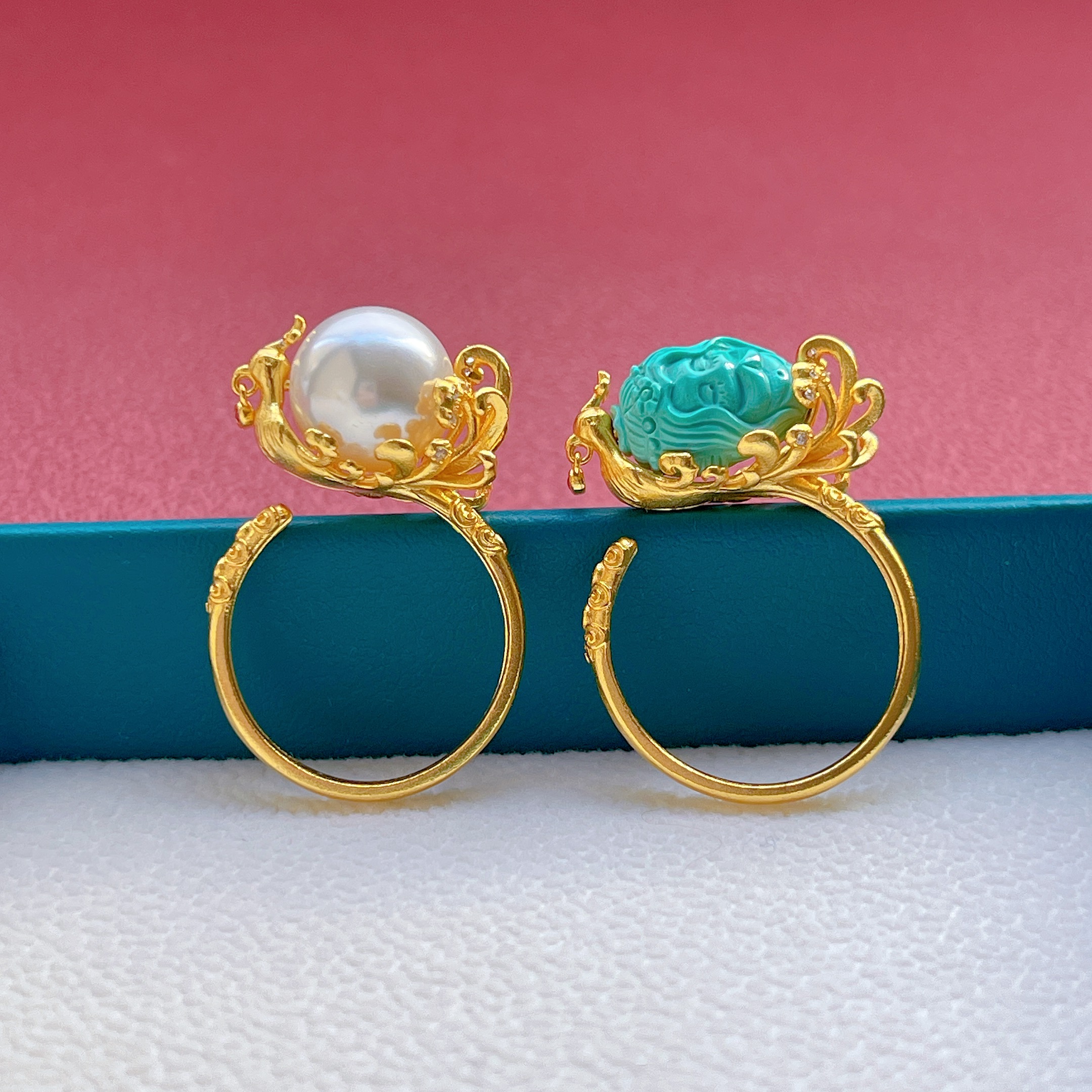 S925 Ancient Silver Gold-Plated Accessories with Engraved Phoenix Ring Setting for Women, Suitable for Pairing with Pearls, Turquoise, Southern Red Agate, and Various Other Beads