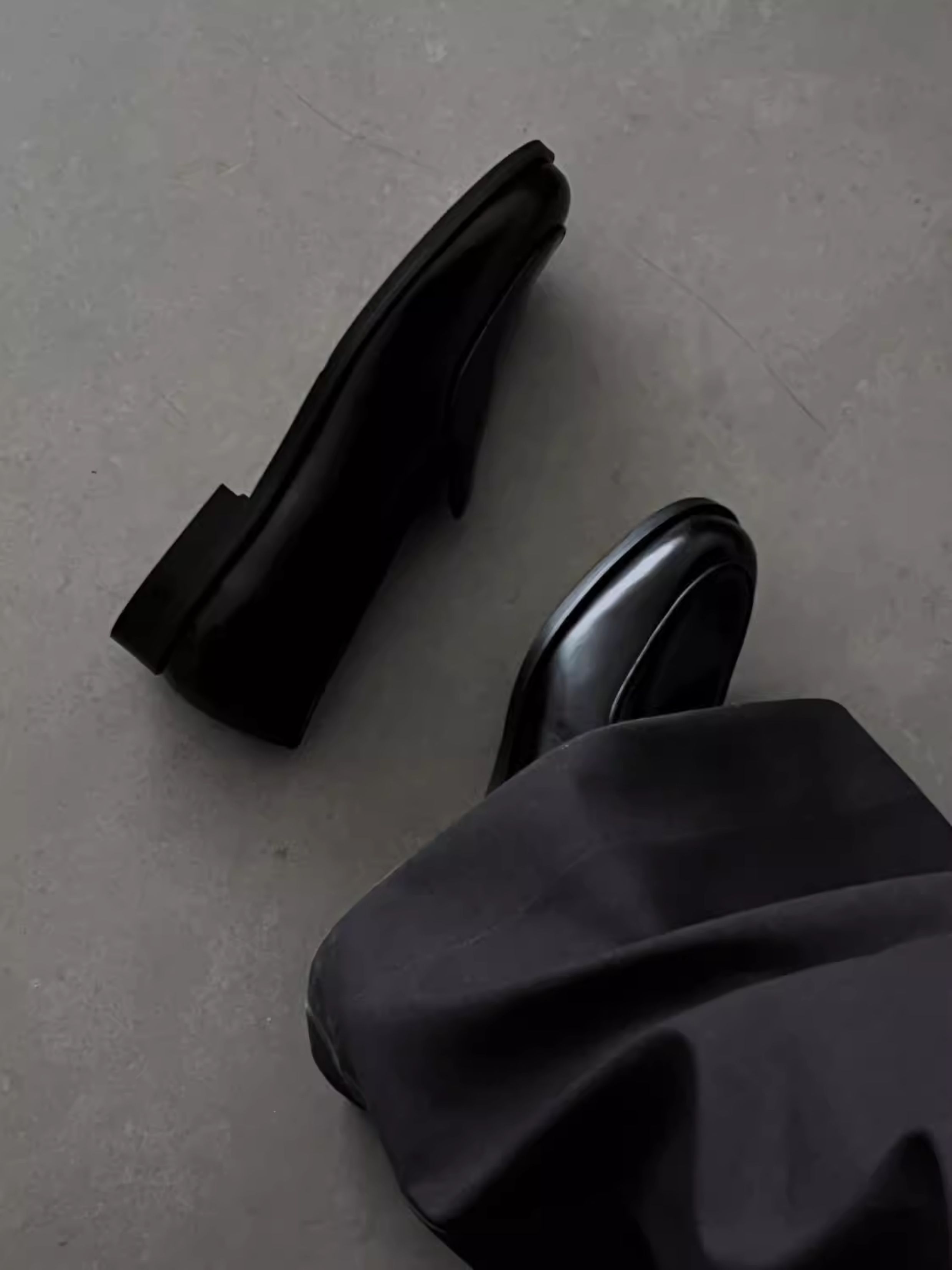 Slip-On Loafers for Men, Thick-Soled, Height-Increasing, Business Formal Wear, Black, Retro, Casual, Commuting, Niche Derby Leather Shoes