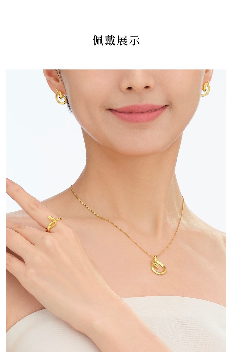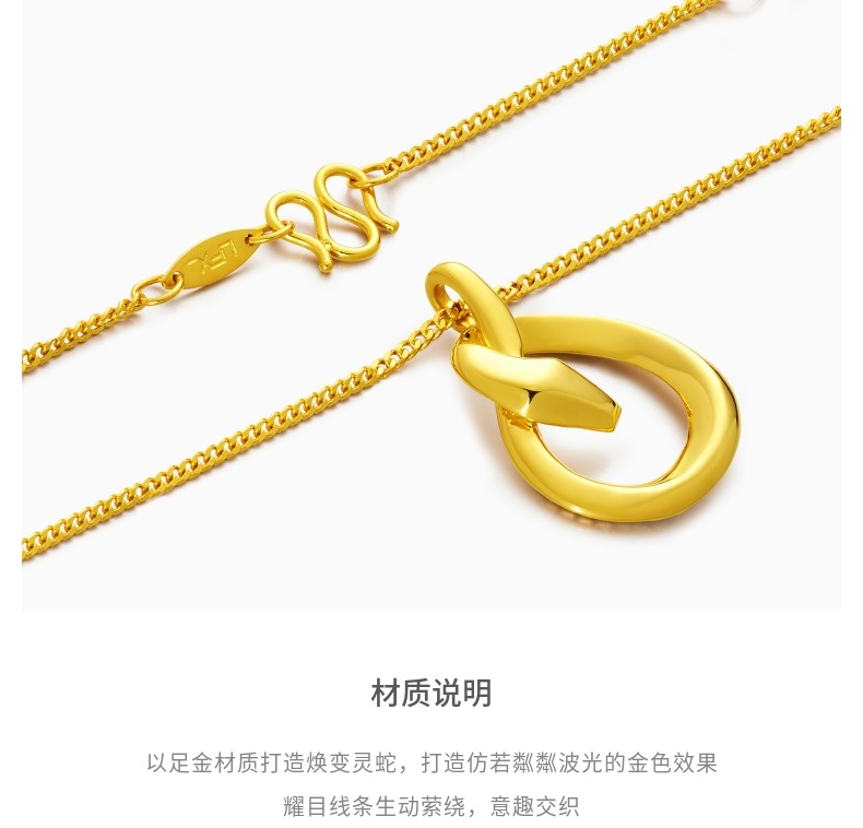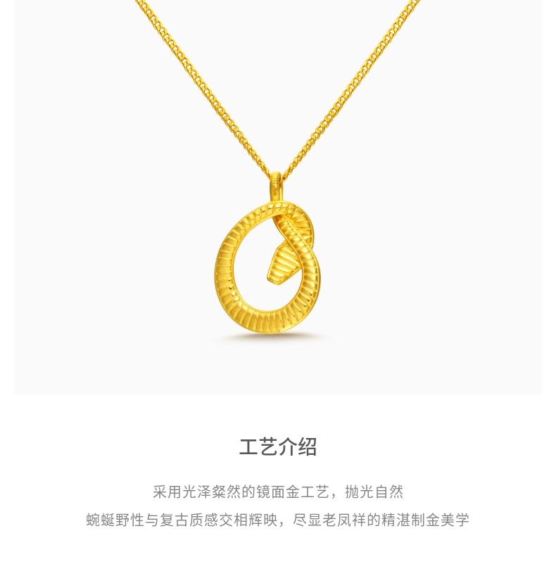 Laofengxiang She Snake Series Zodiac Year Snake Mirror Gold Necklace with Real Gold for Women New Year Gift
