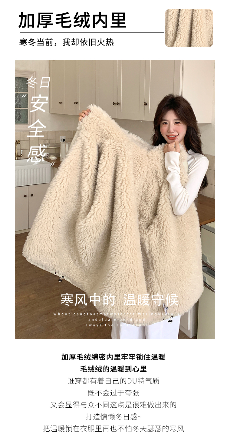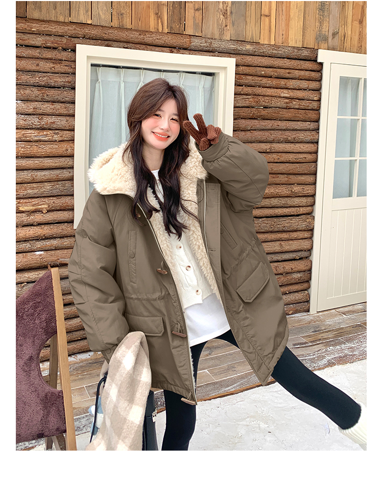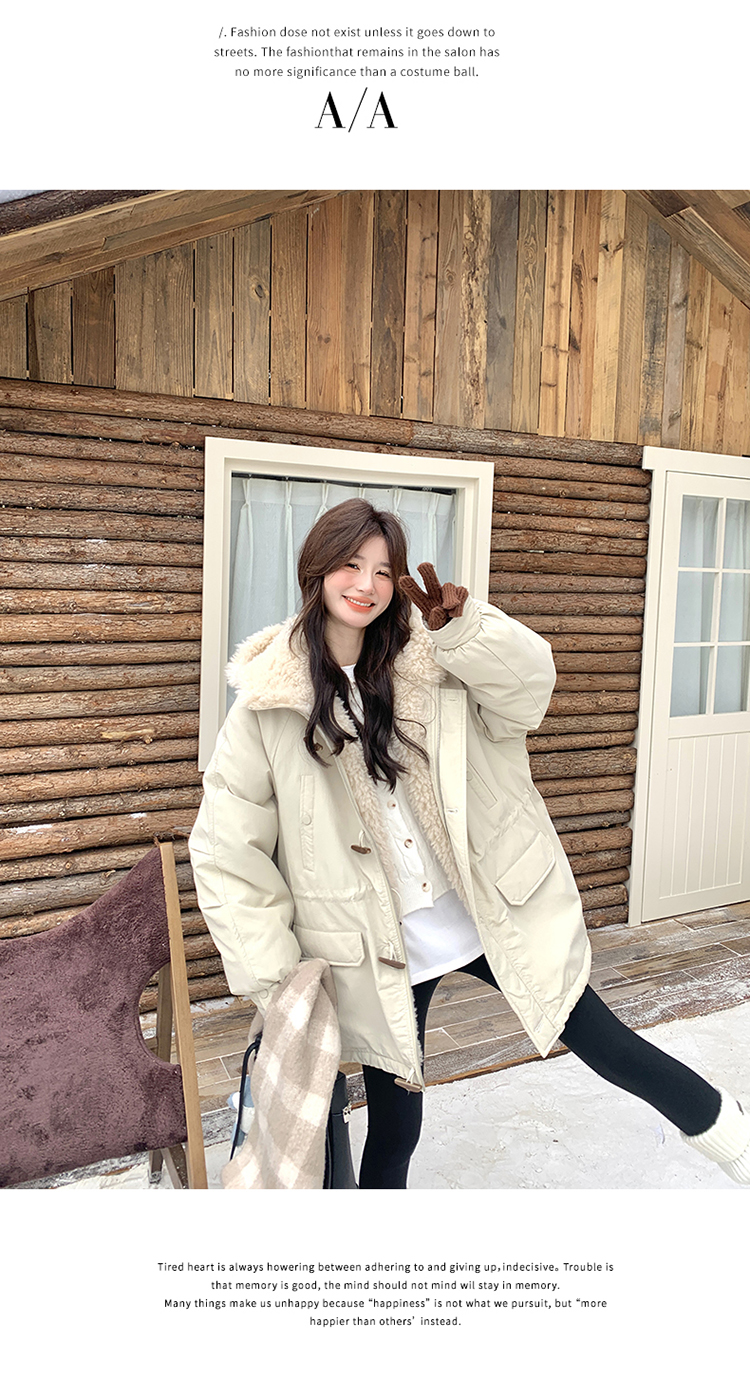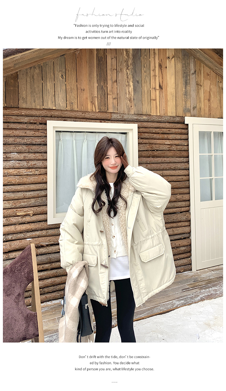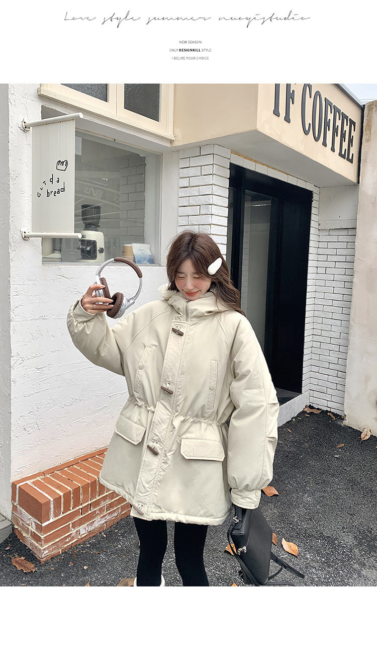 Off-White Parka for Women, 2025 Winter New Korean-Style College Wind Hooded Warm Fleece-Lined Lamb Wool Cotton Coat