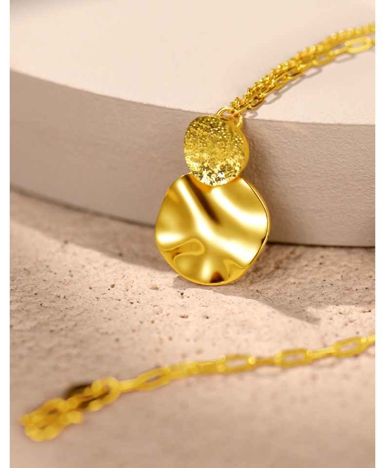 Lao Fengxiang Fan Series Textured Splicing High-Gloss Crushed Ice Gold Pure Gold Necklace Priced as a Women's Gift