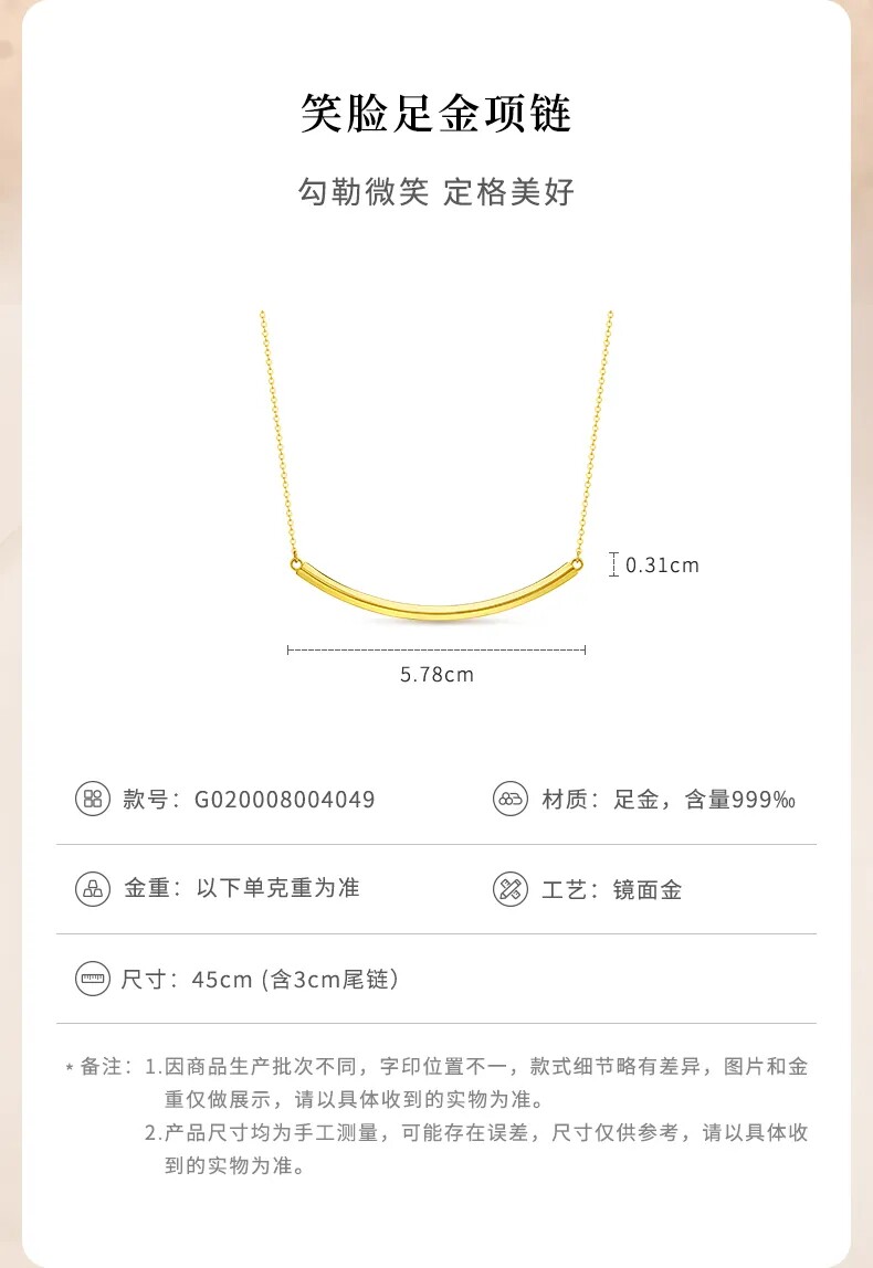 Lao Fengxiang Fan Series Classic Smile Gold Pure Gold Necklace Priced as a Women's Valentine's Day Gift