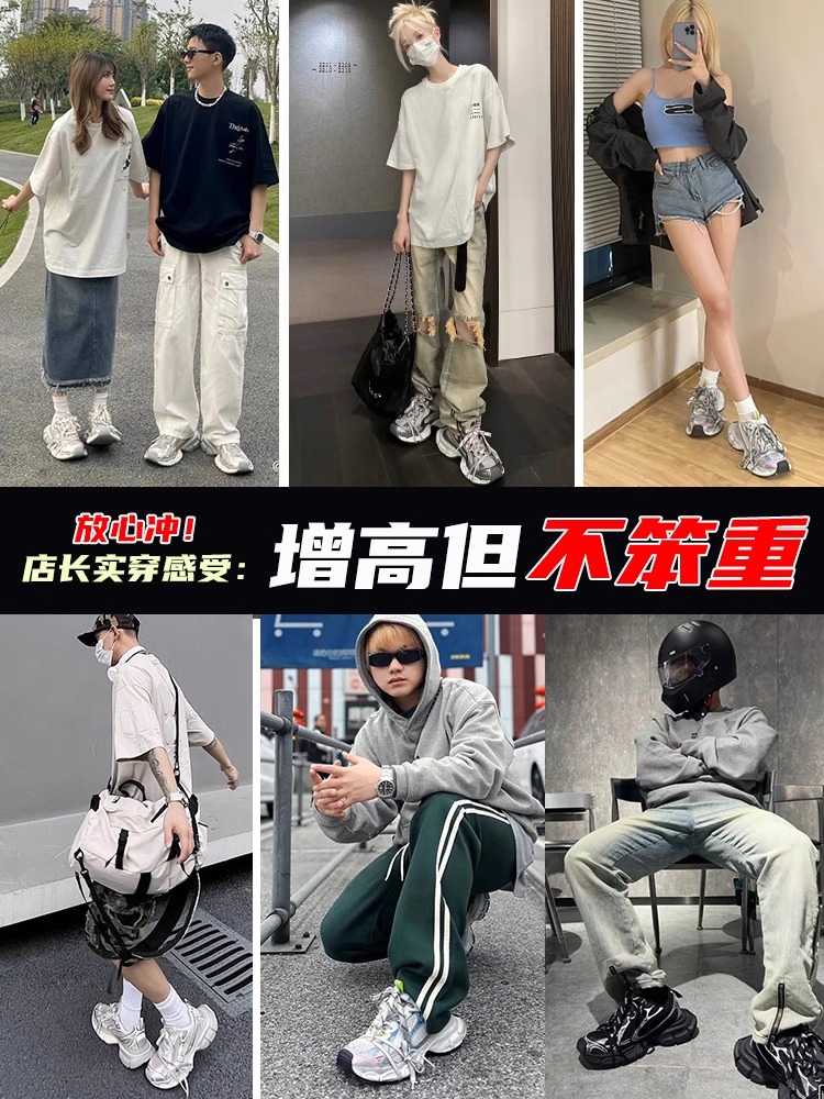 Putian Genuine Lace-Up Paris 3XL Distressed Dad Shoes for Men and Women, Retro Casual Height-Increasing Thick-Soled Sneakers Trendy
