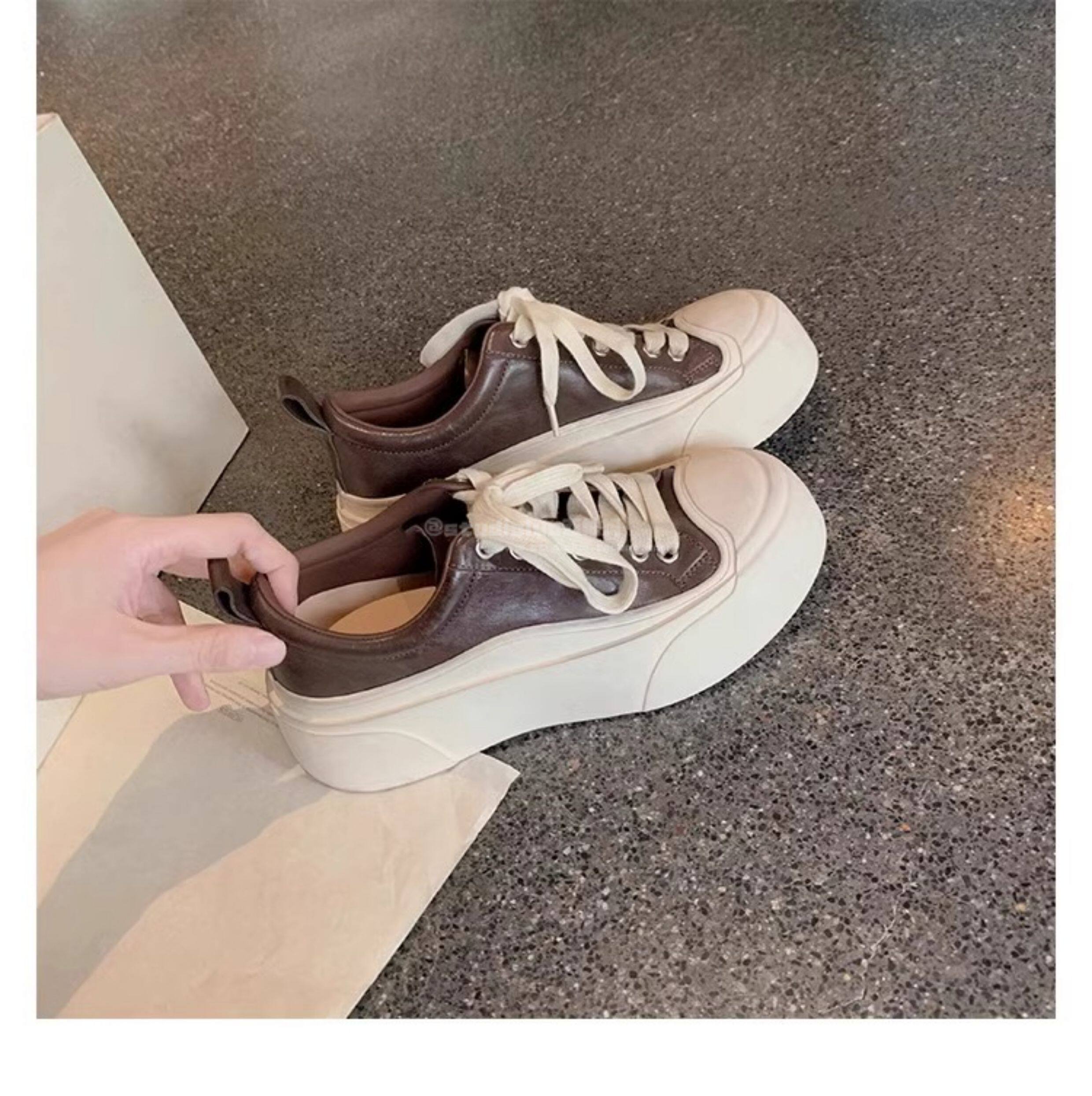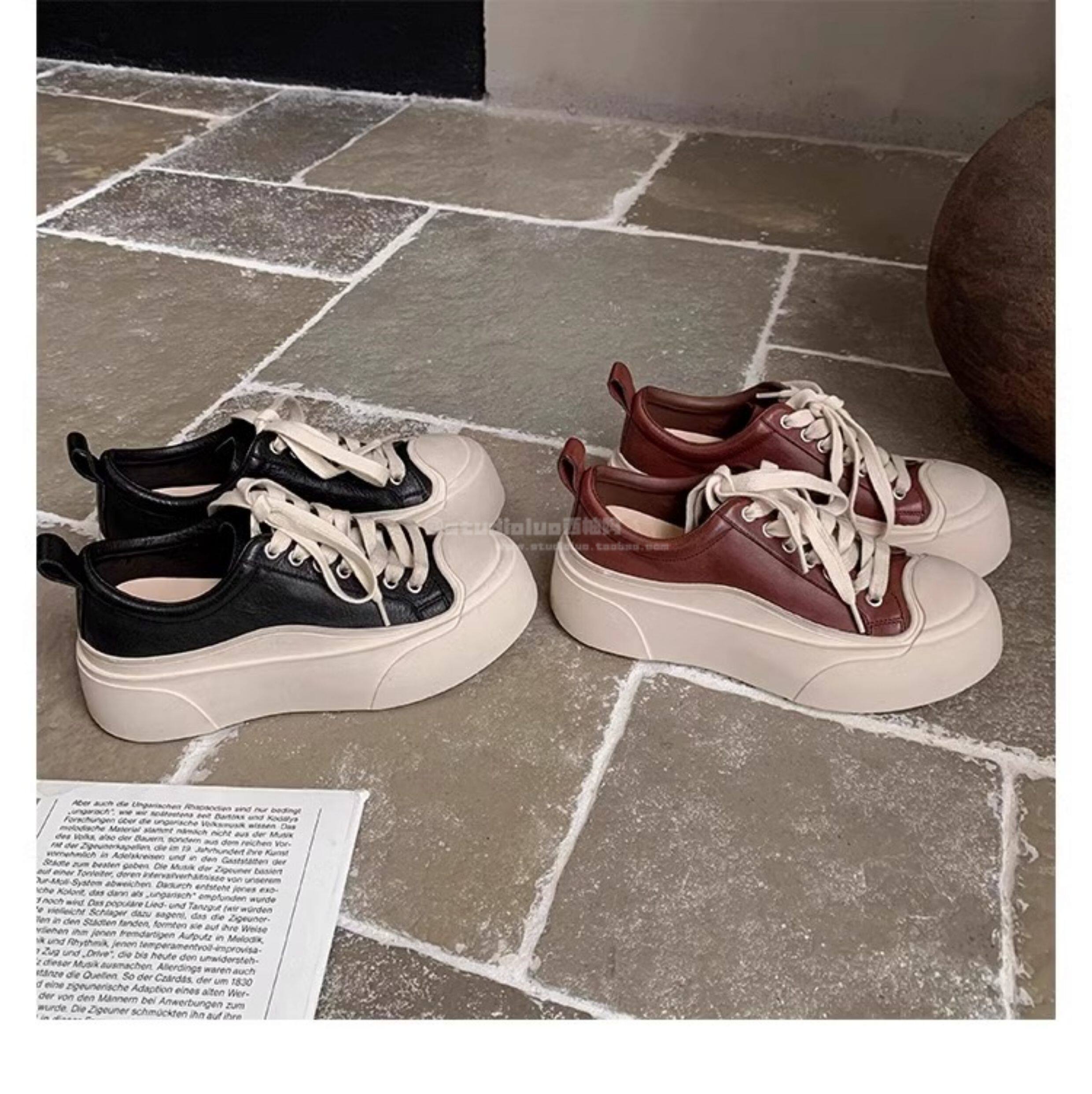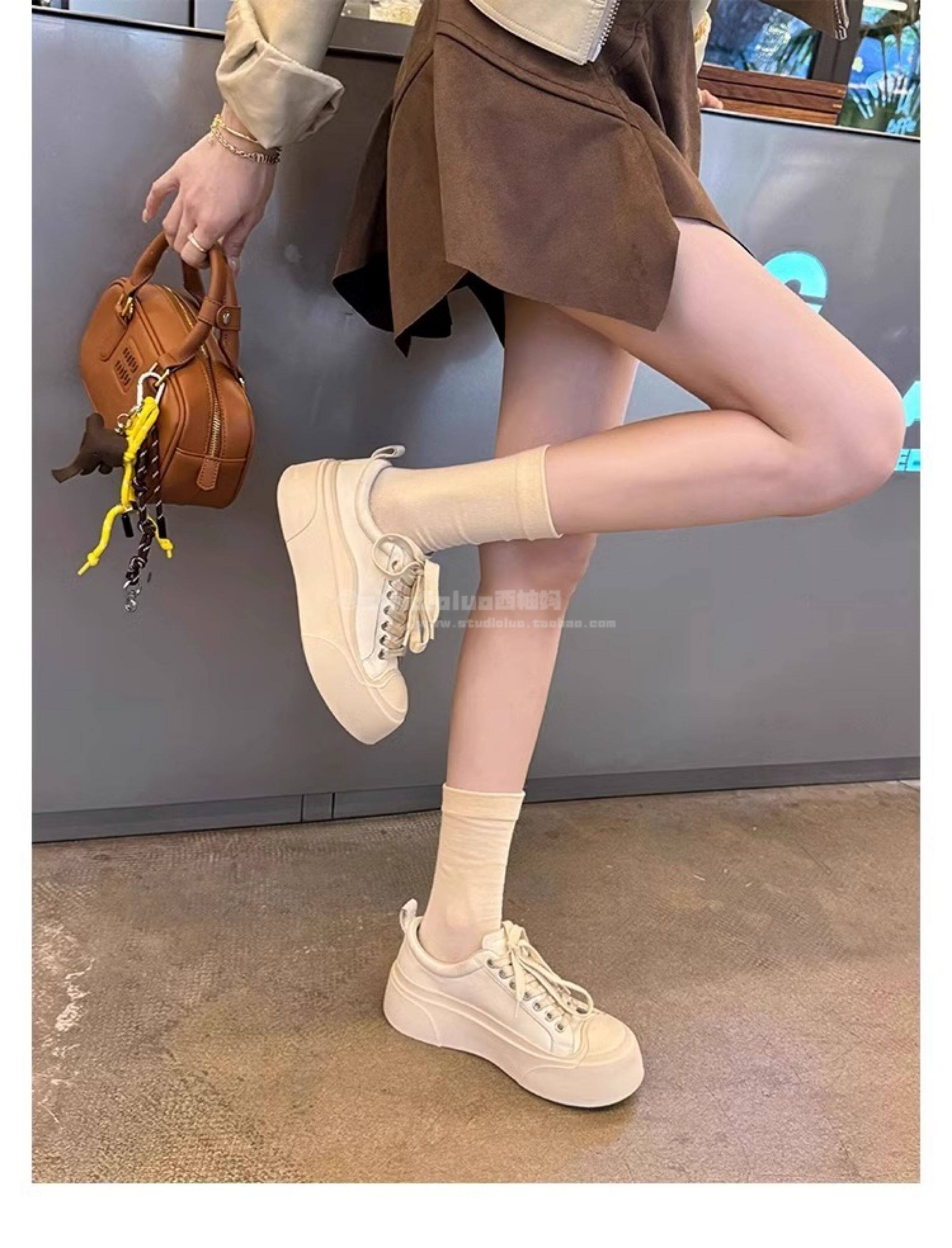 Hong Kong Genuine Leather Fashion Sneakers for Women 2026 Spring and Autumn Thick-Soled Height-Increasing Versatile Sports Casual White Shoes Korean Style