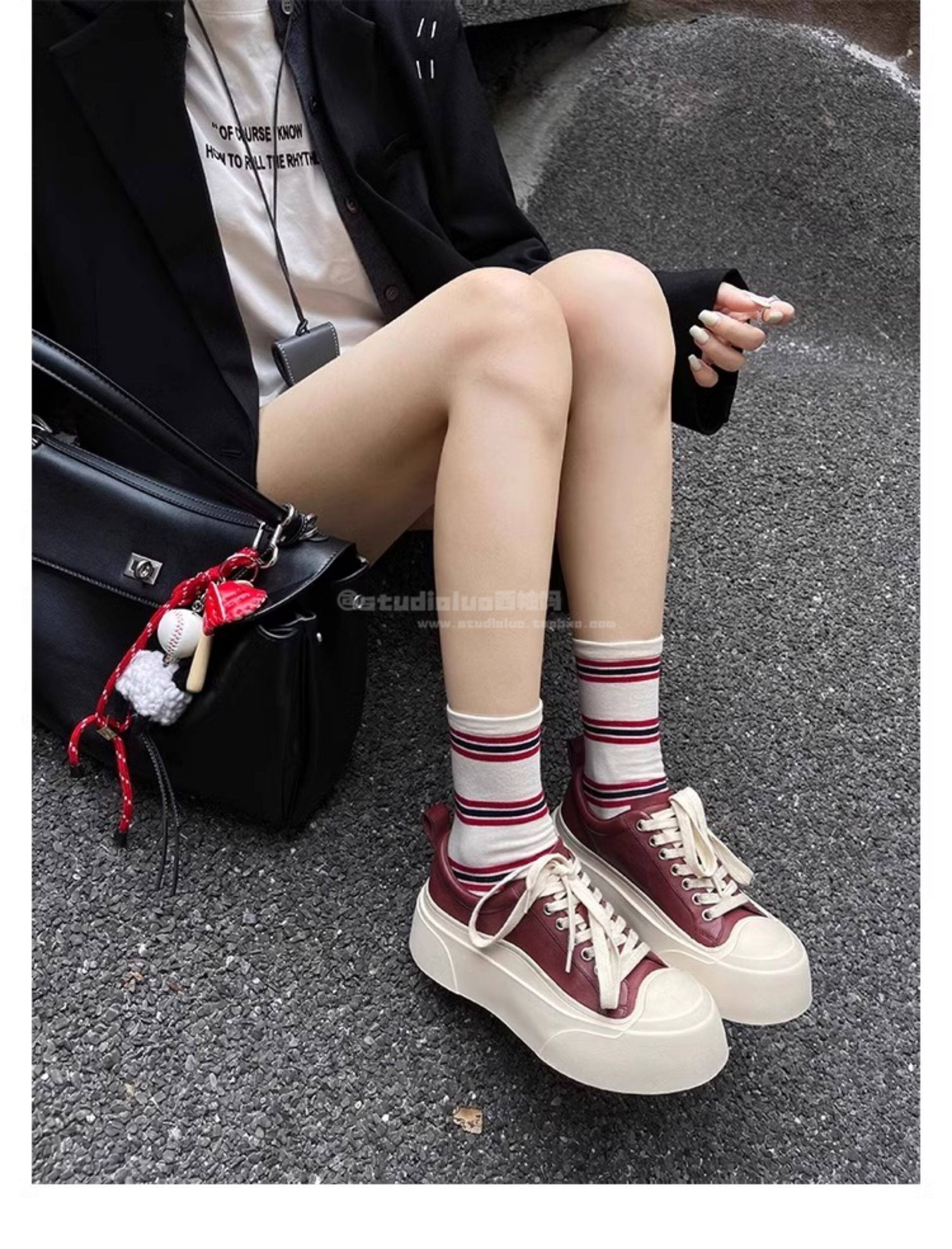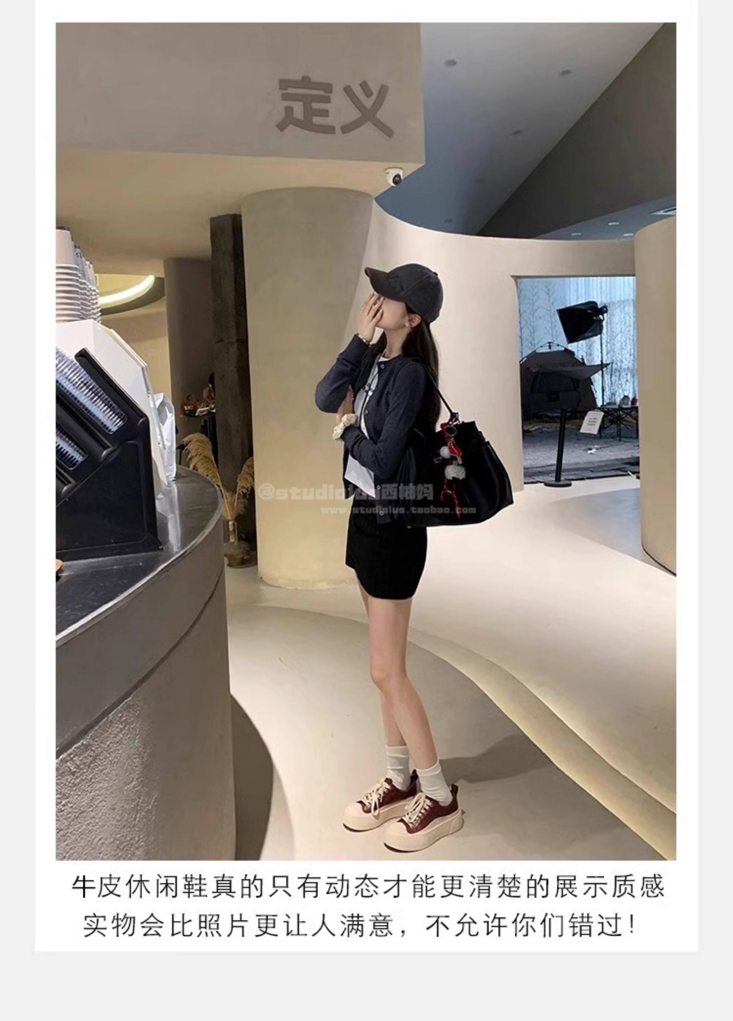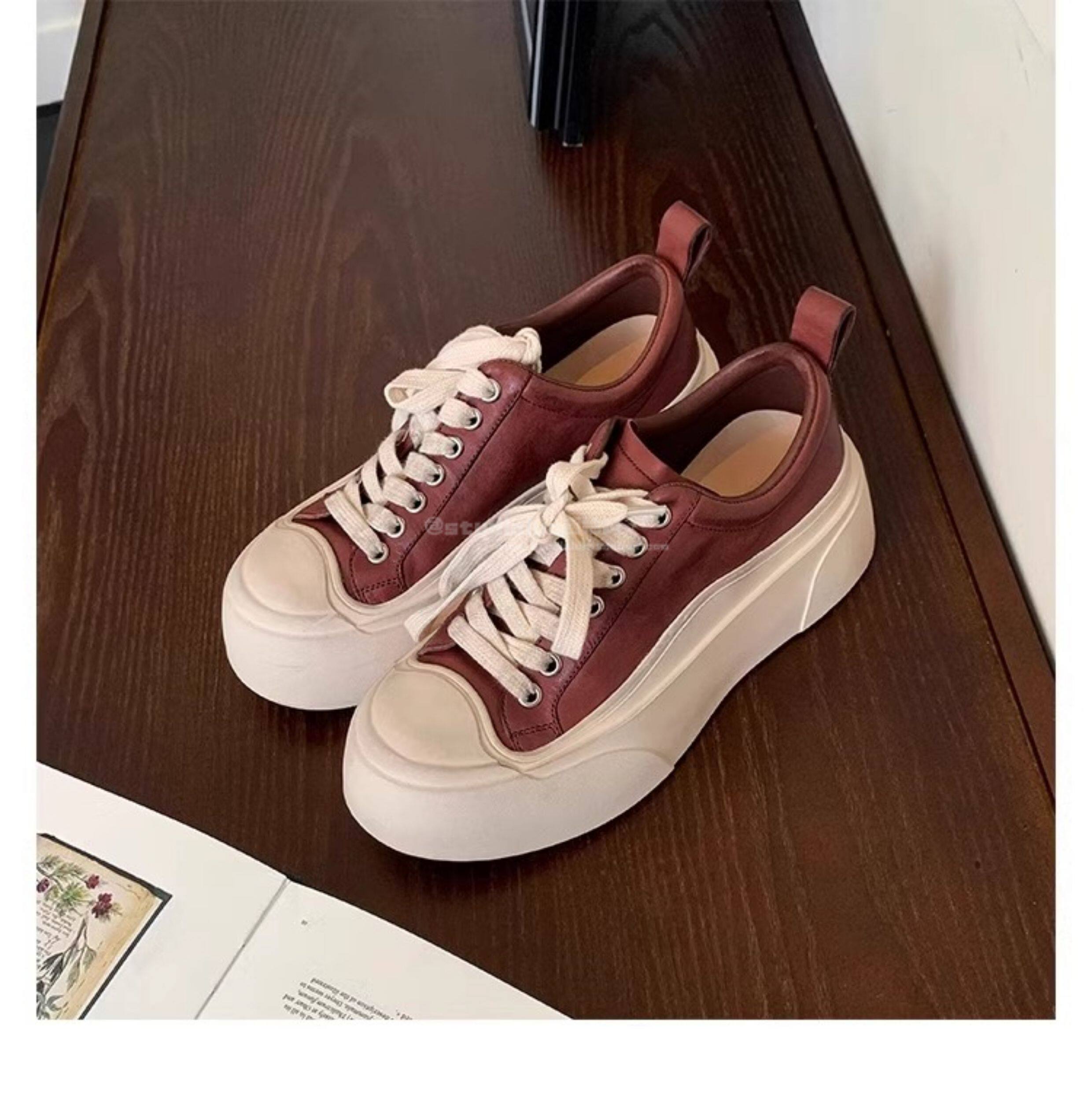 Hong Kong Genuine Leather Fashion Sneakers for Women 2026 Spring and Autumn Thick-Soled Height-Increasing Versatile Sports Casual White Shoes Korean Style