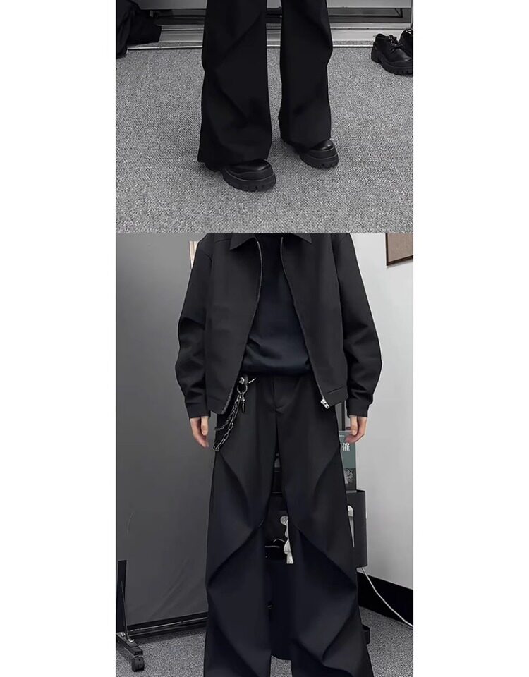Black Curved-Leg Dress Pants with a High-End Drape, Pleated and Fleece-Lined Work Pants for Men, Autumn and Winter Wide-Leg Casual Pants