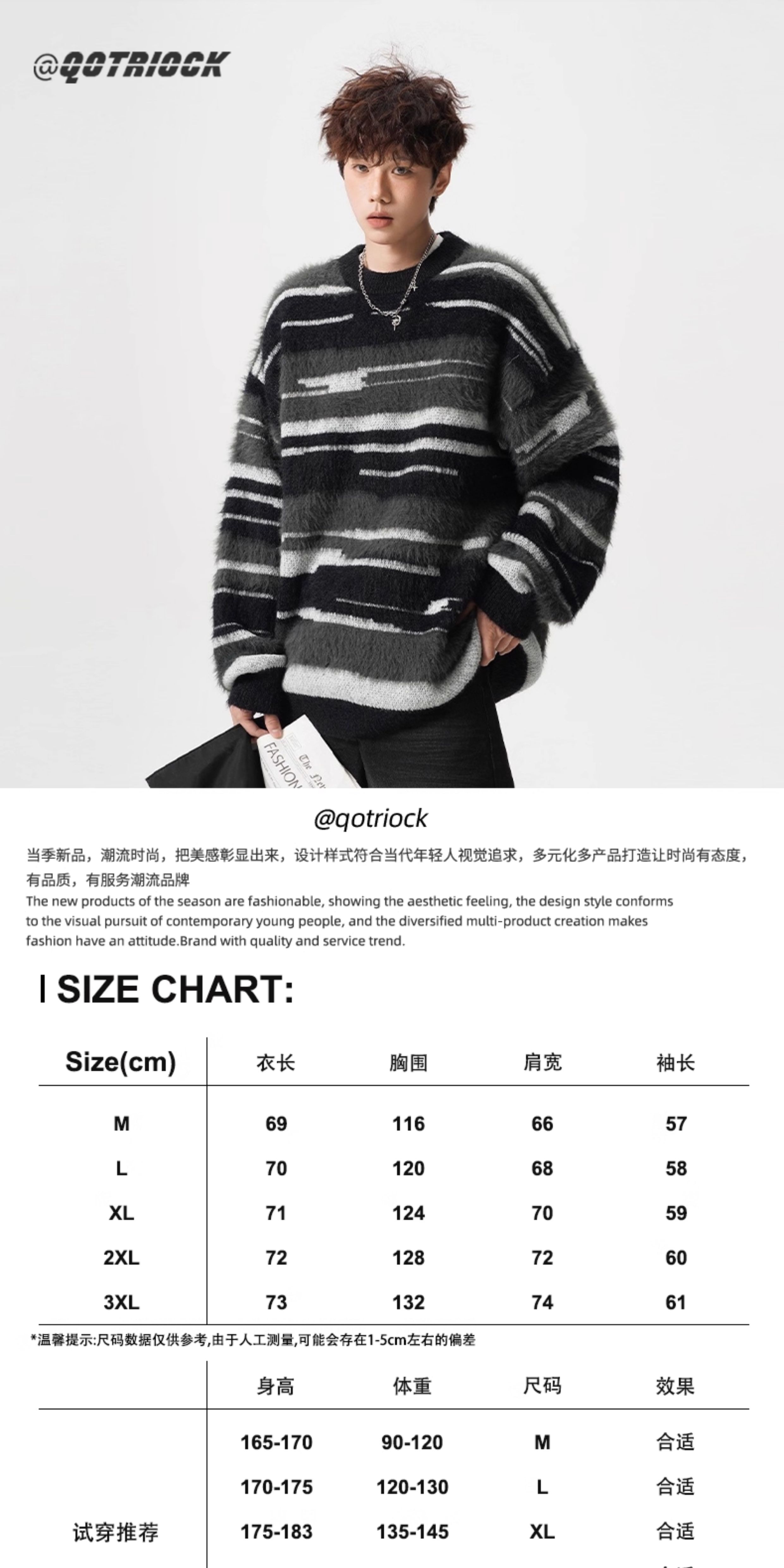 Mohair Round Neck Sweater for Men and Women, Autumn and Winter Casual Color-Block Striped Knitwear, Loose and Relaxed Couple's Base Shirt